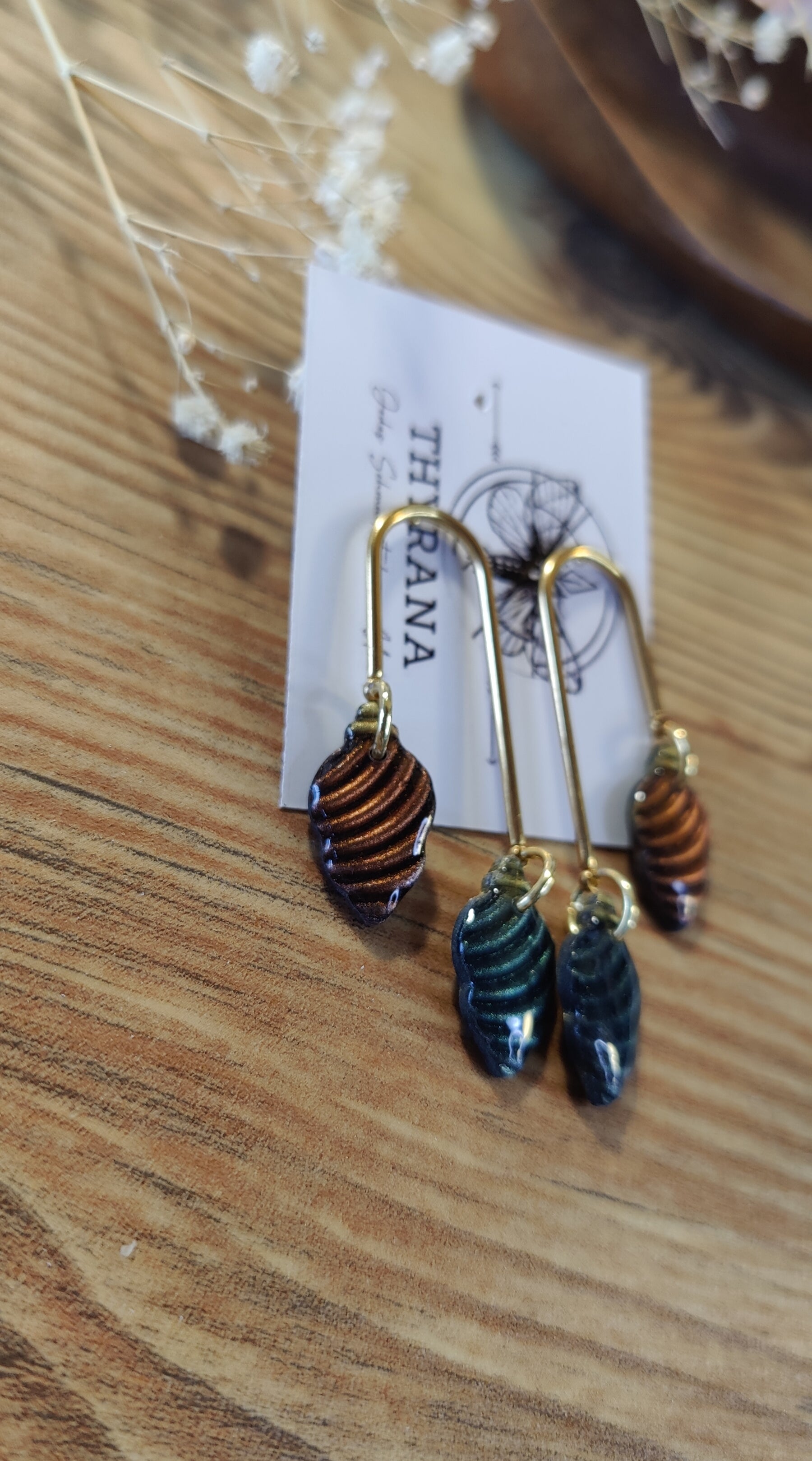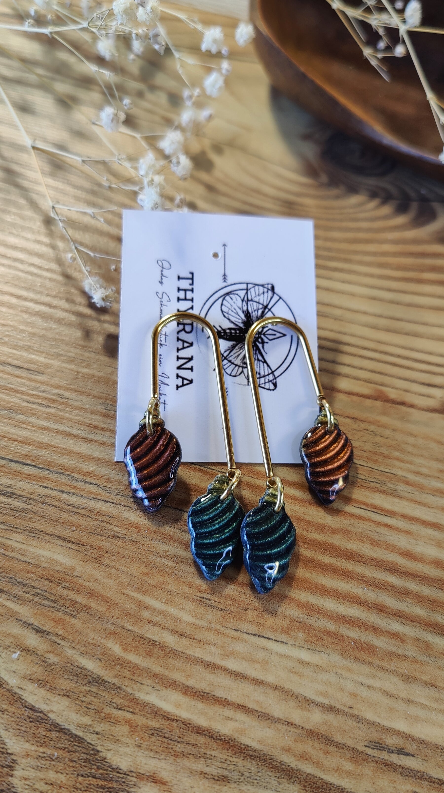 Diese liebevoll handgefertigten Weihnachts-Ohrstecker kombinieren edles Gold mit klassischen Weihnachtsfarben Rot und Grün.
