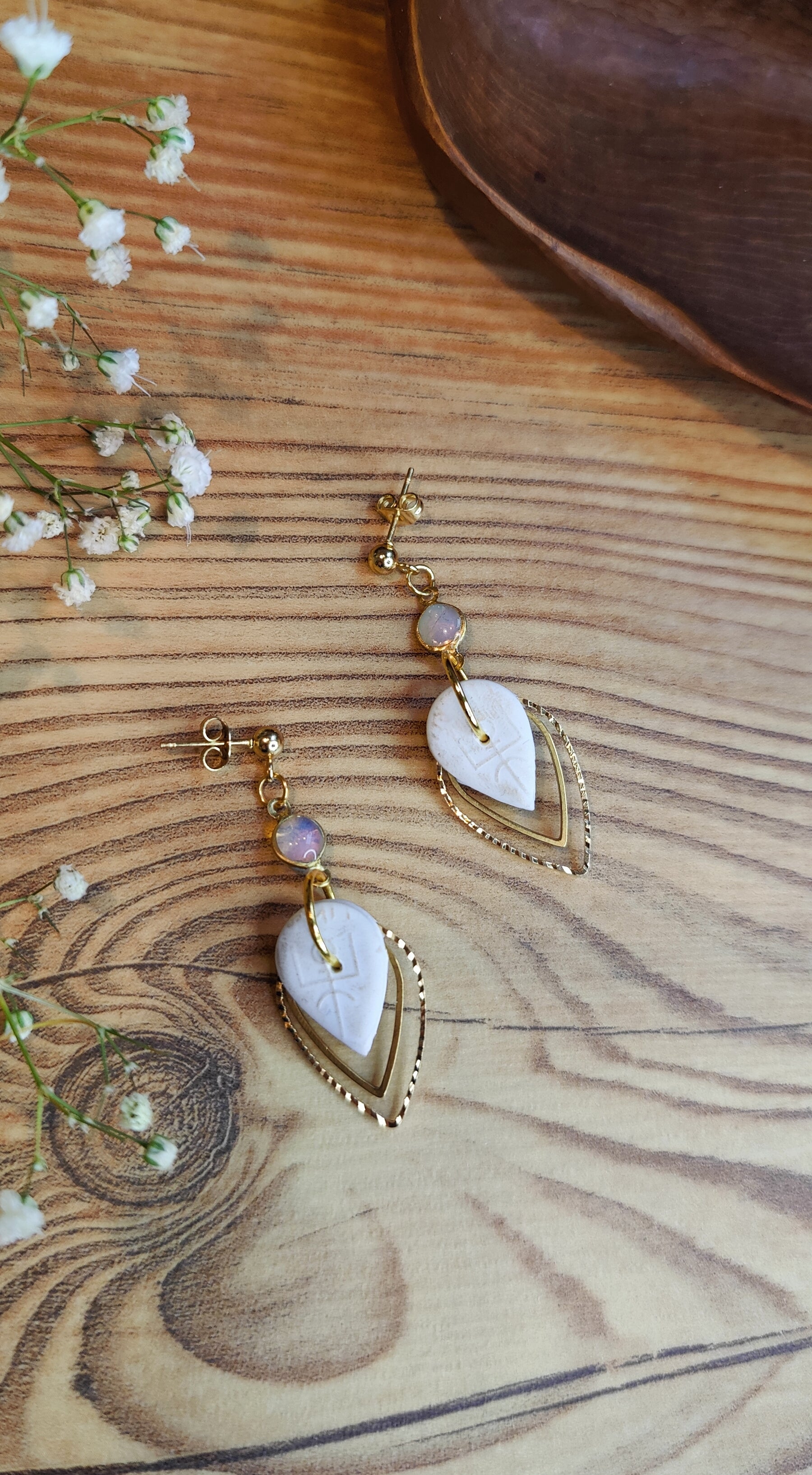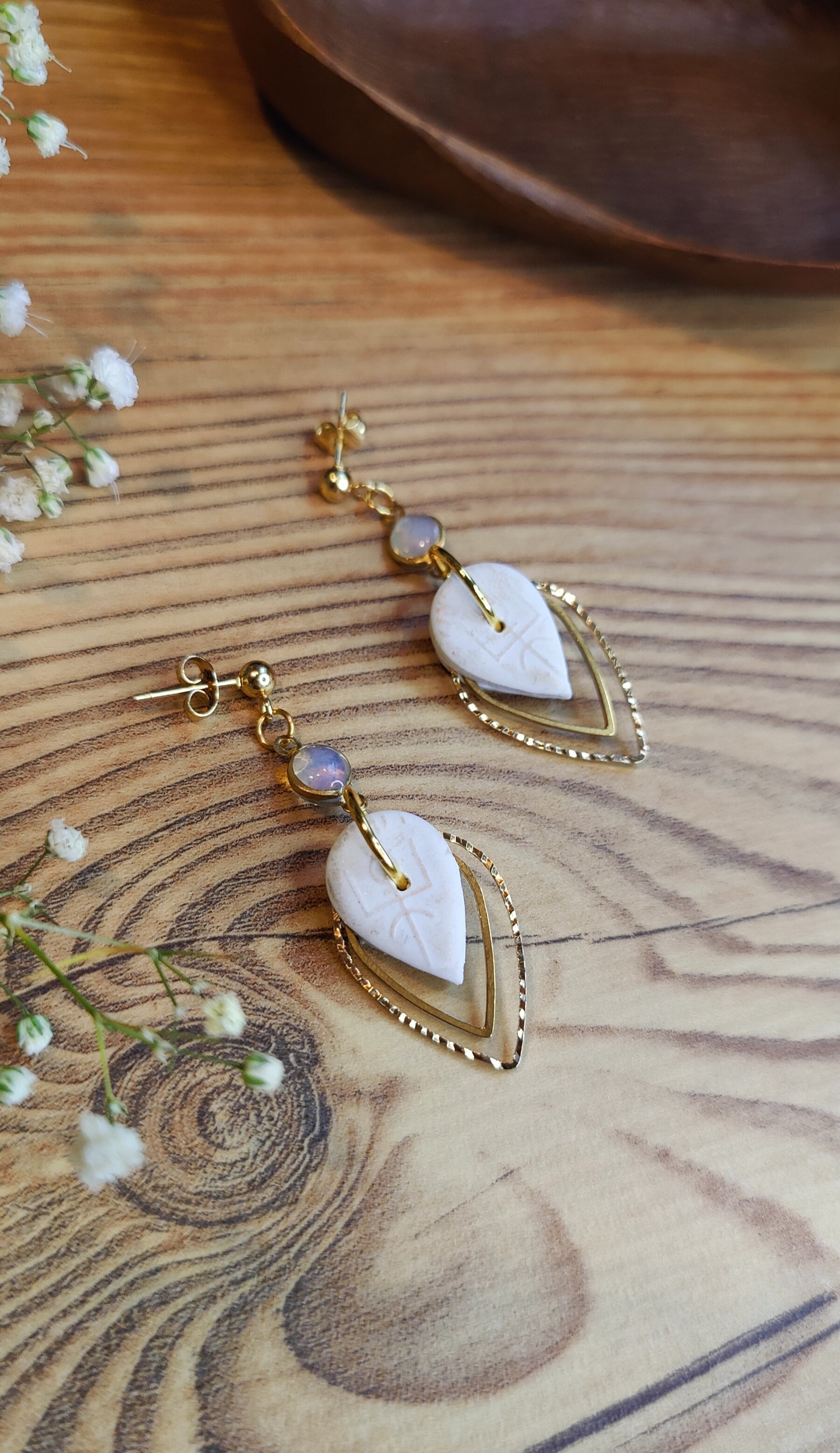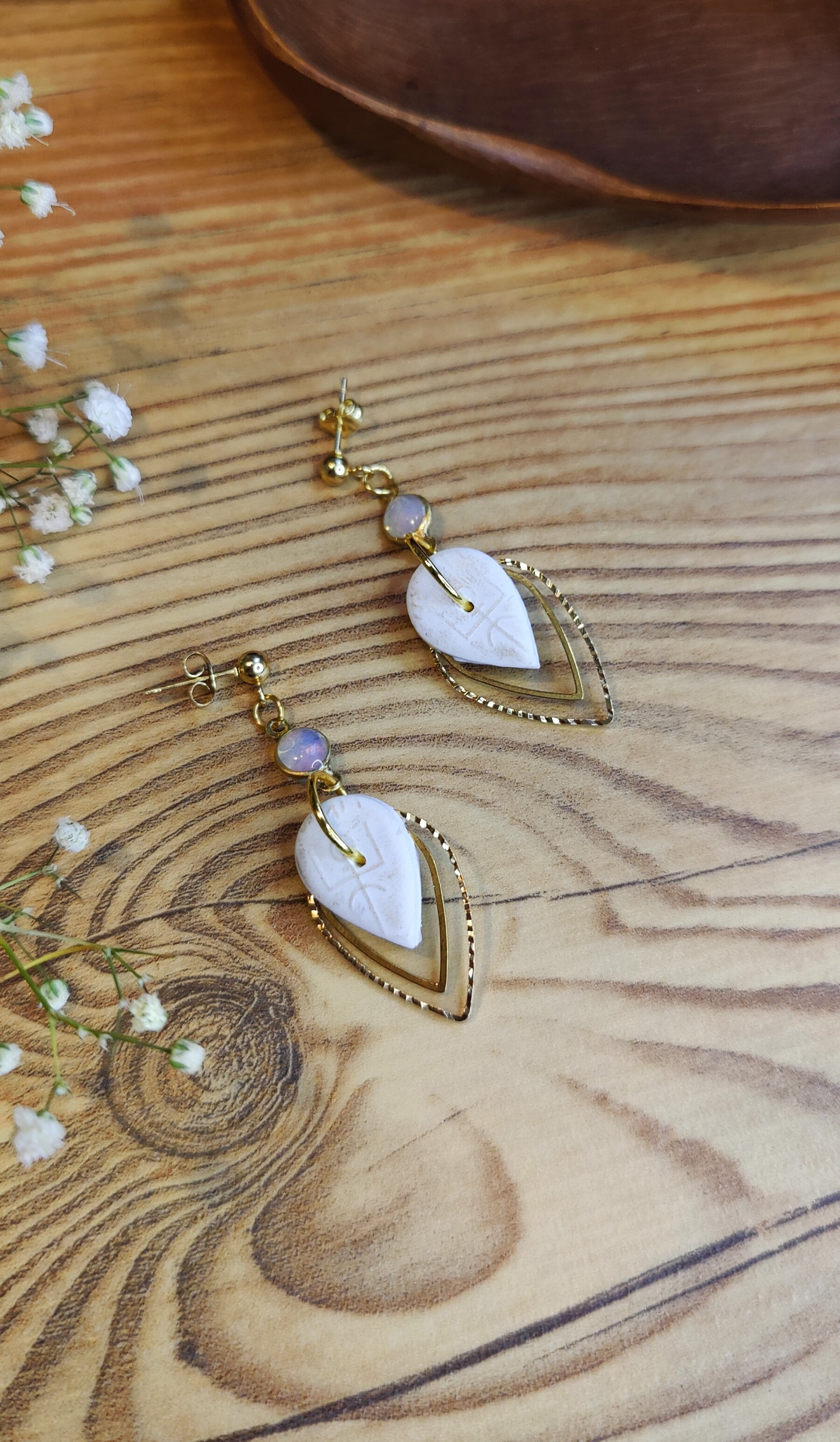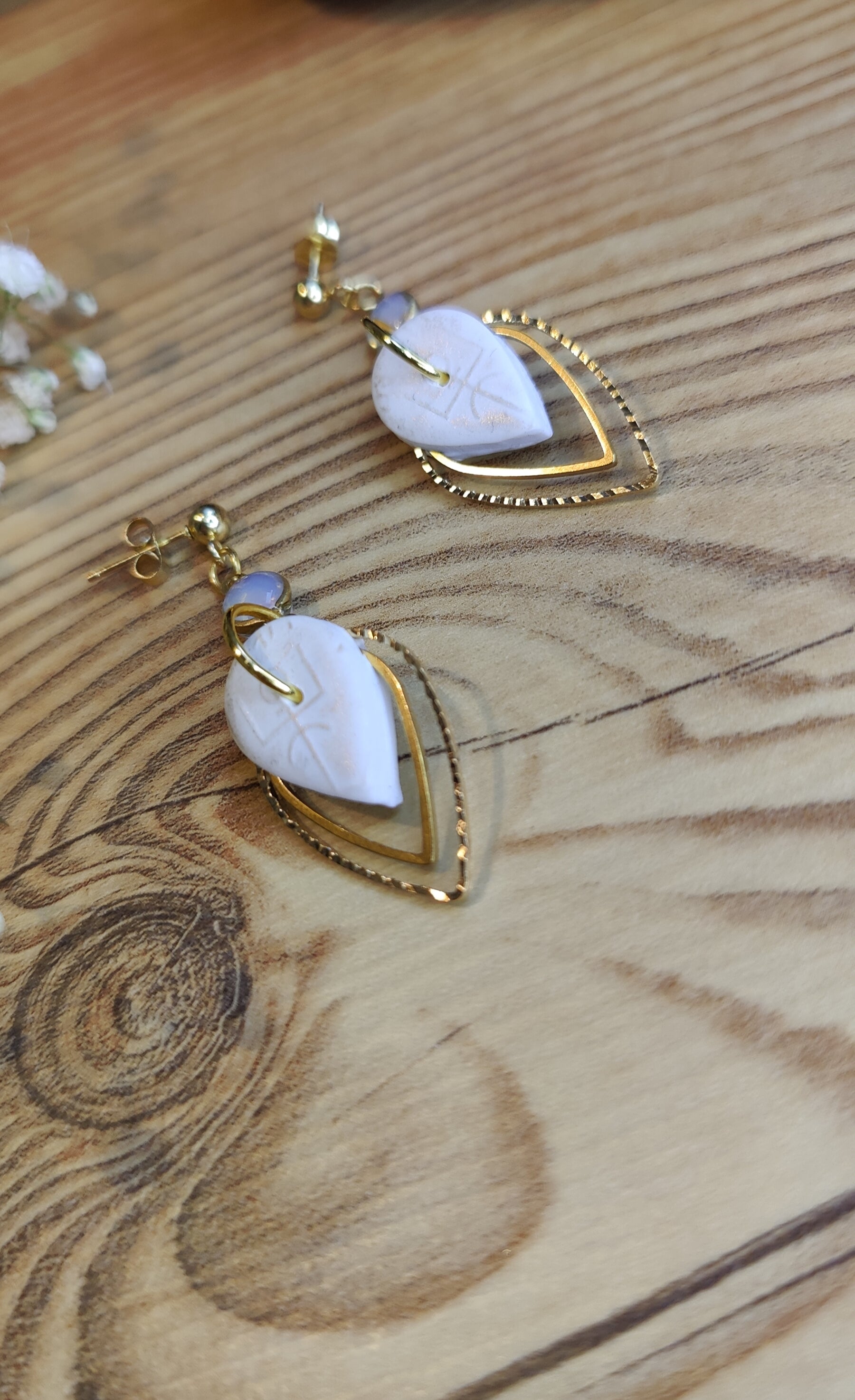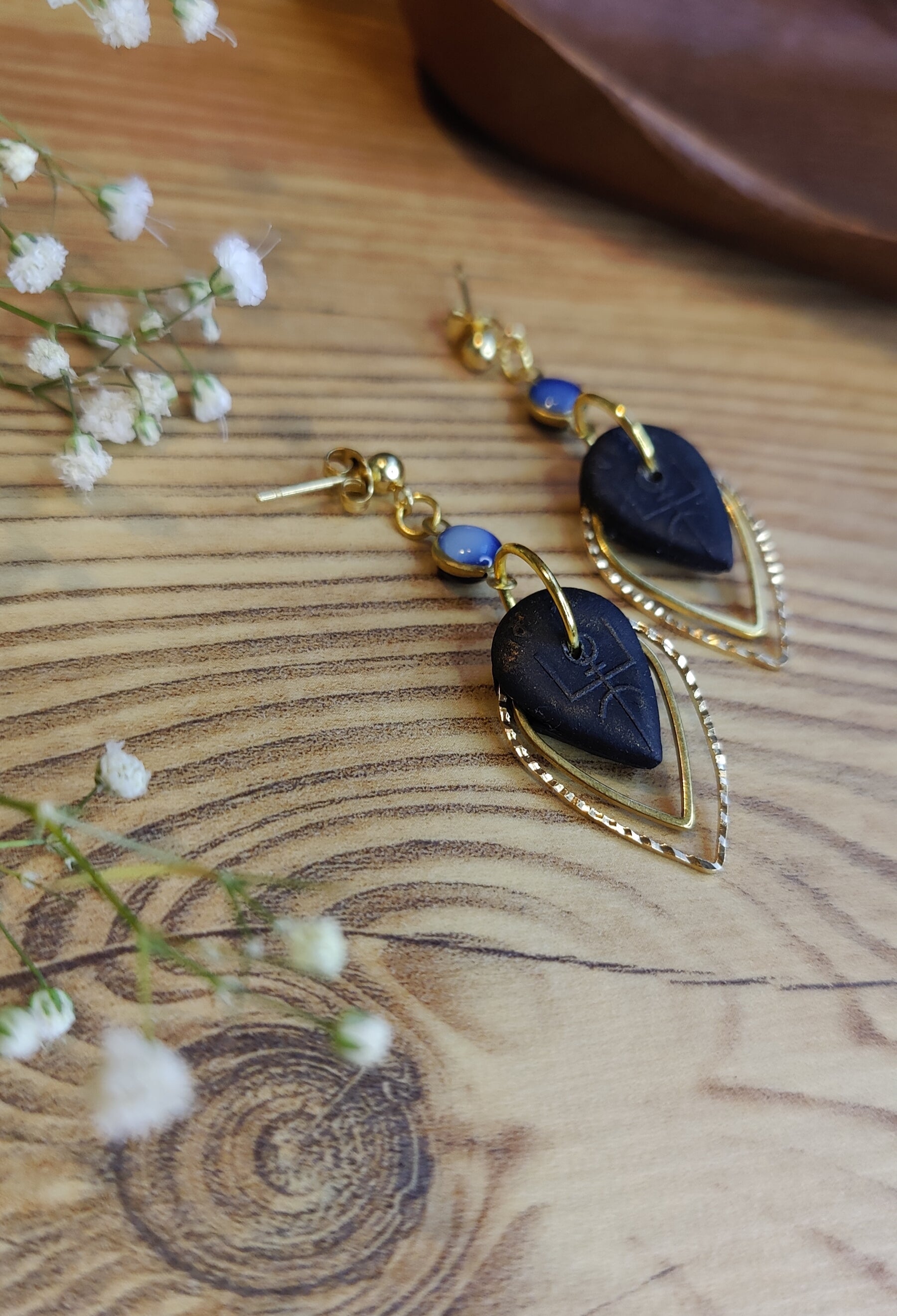 Der Polymer Ton ist in einer Metallfassung eingebettet. Die Perle ist aus Gießharz, in Handarbeit hergestellt. Die Stecker bestehen aus hautfreundlichem Edelstahl – ideal auch für empfindliche Ohren.