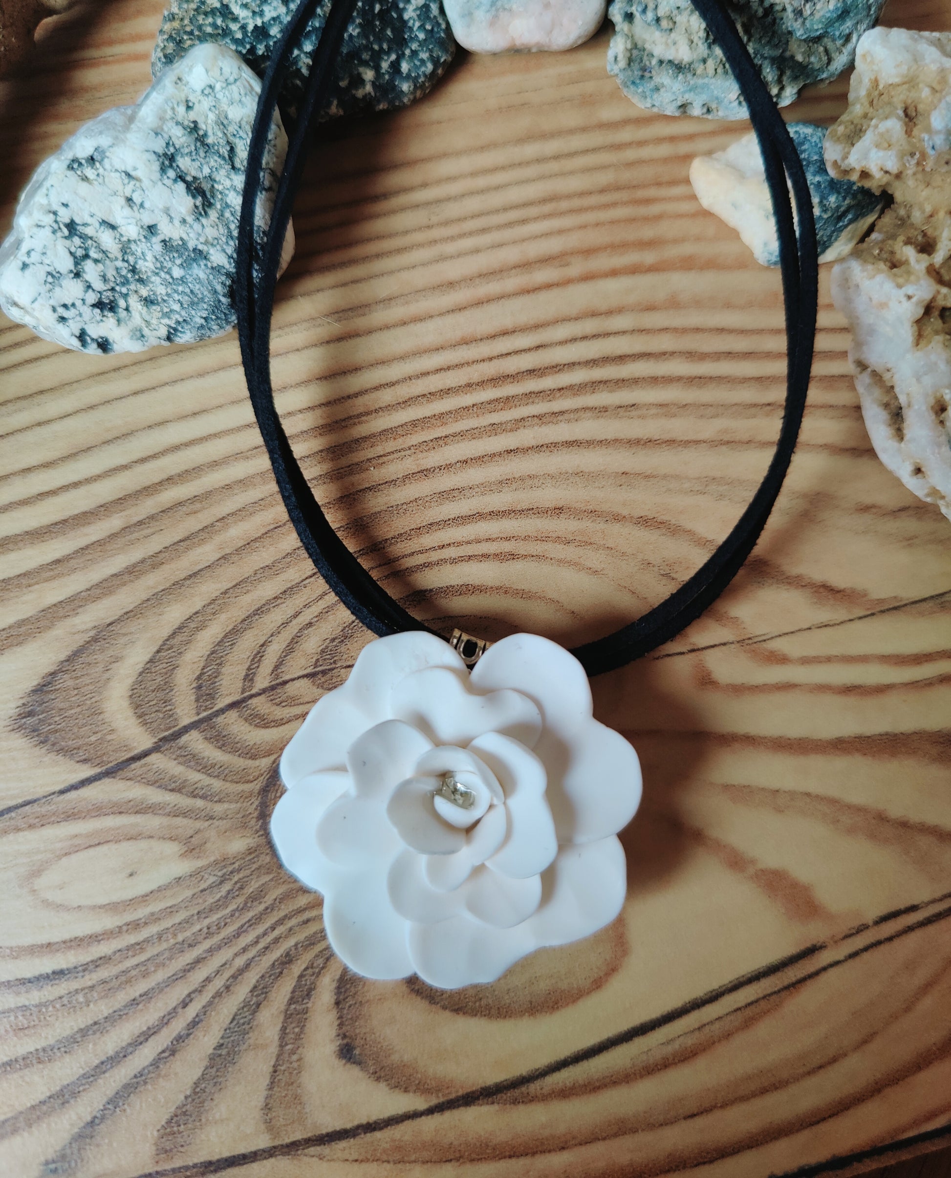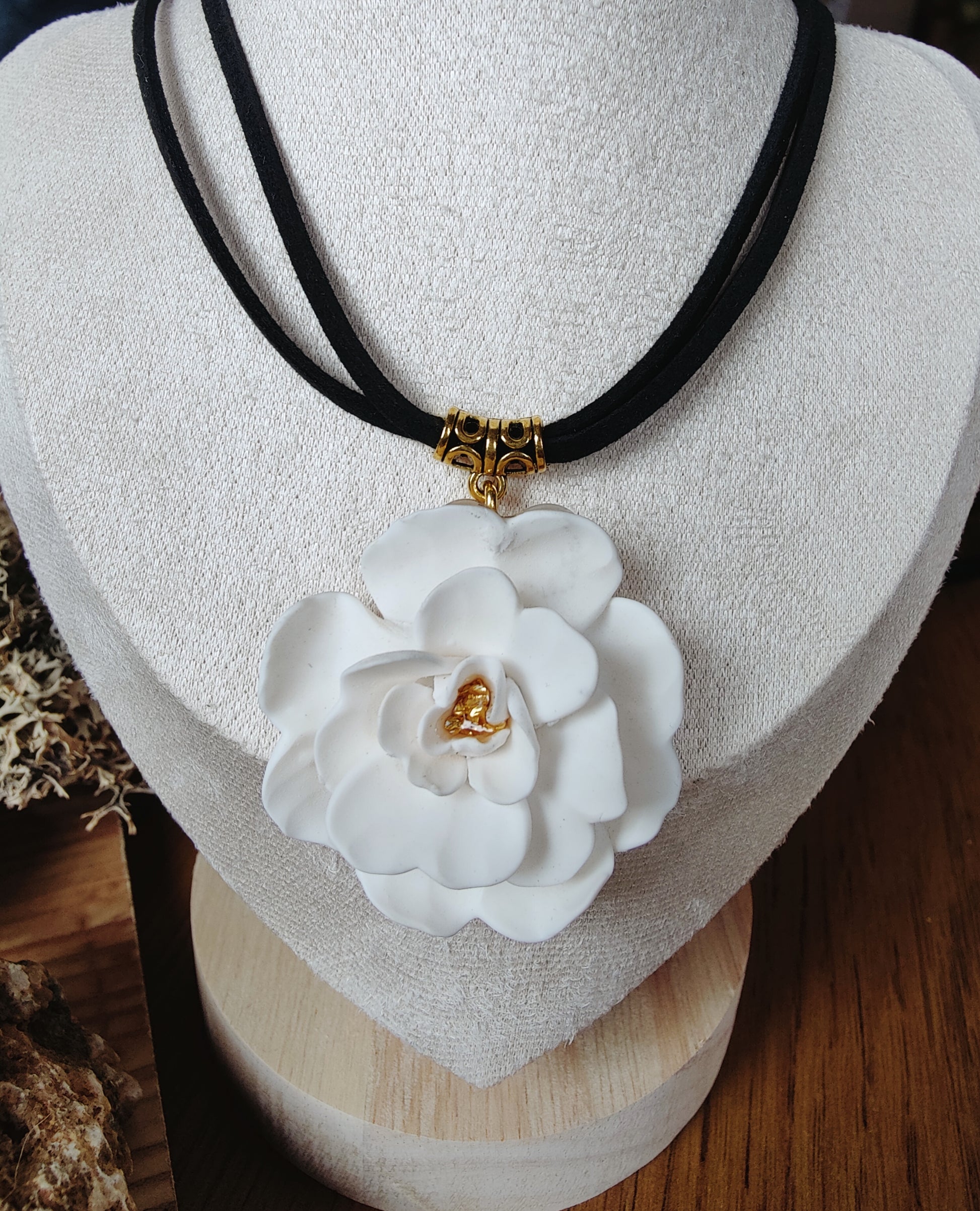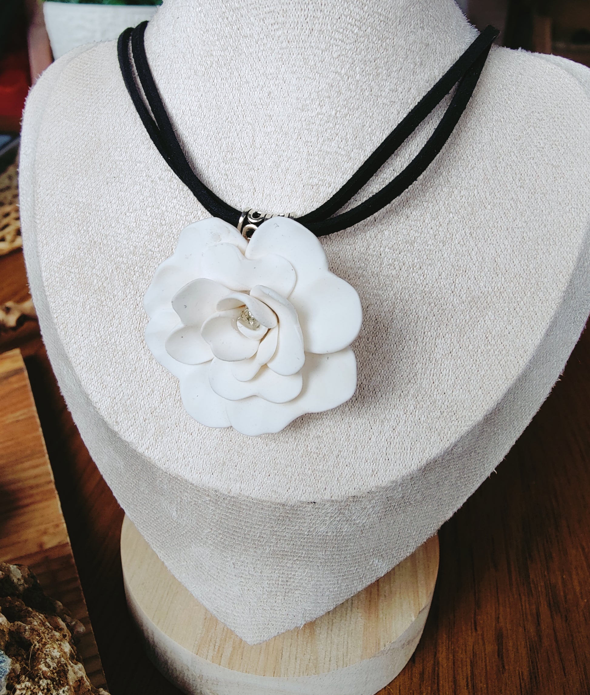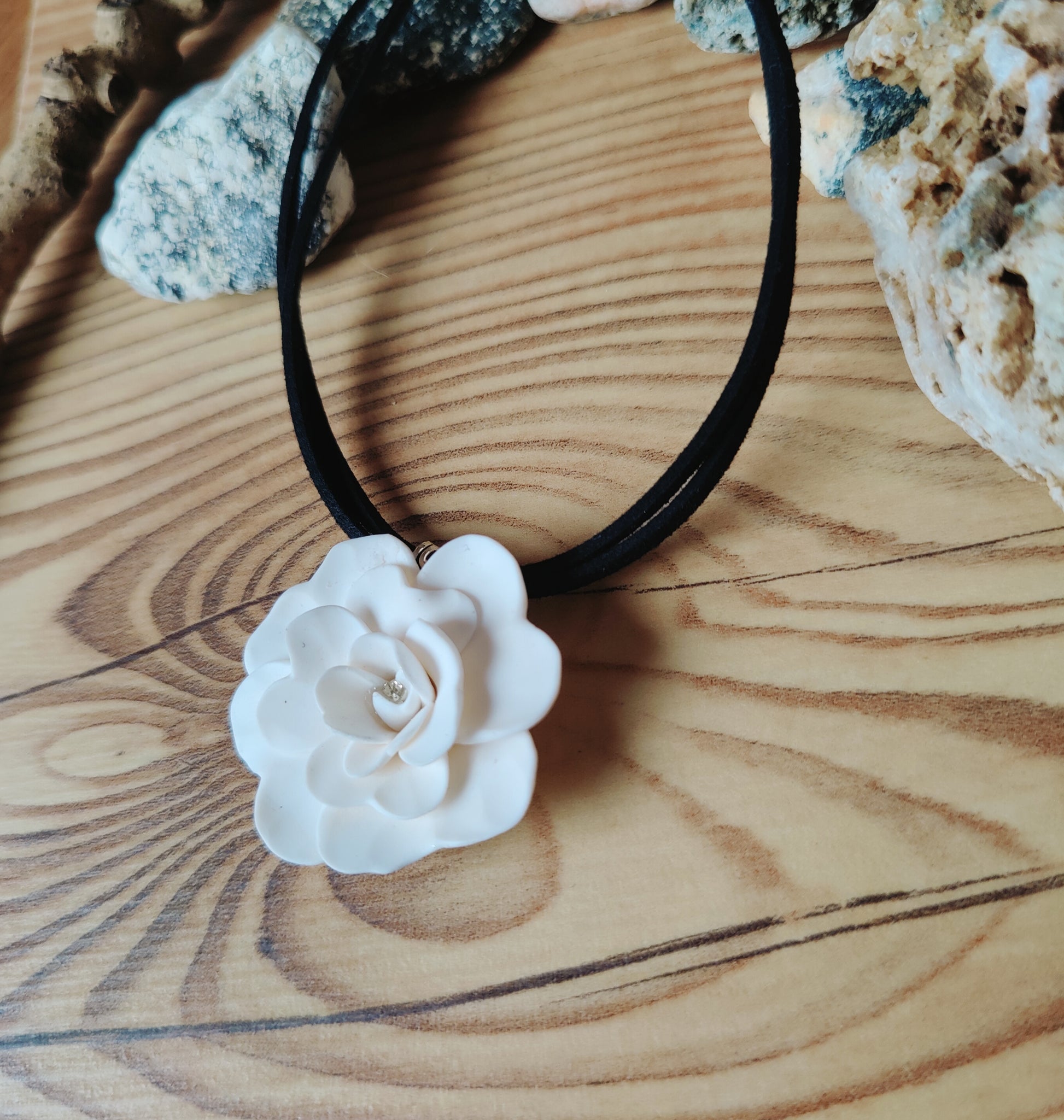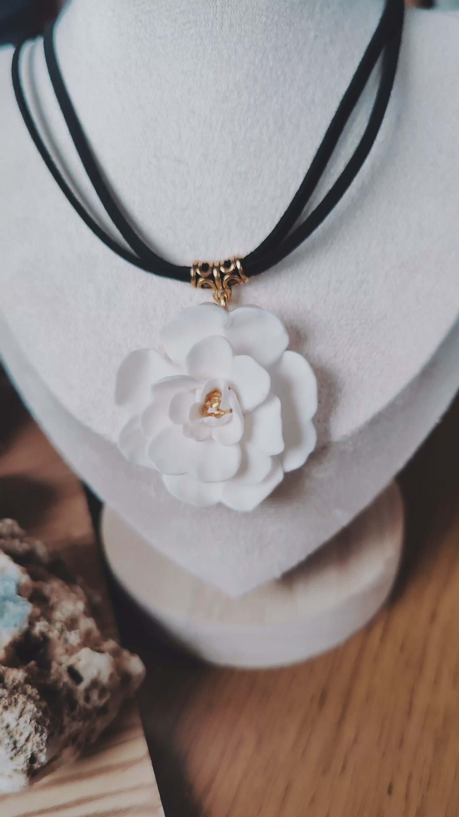 Mit diesem Blütenhalsband aus Samt und Polymer Clay rundest du jedes historische Gewand stilvoll ab und bringst einen Hauch von Naturverbundenheit und Handwerkskunst in deine Ausstrahlung.