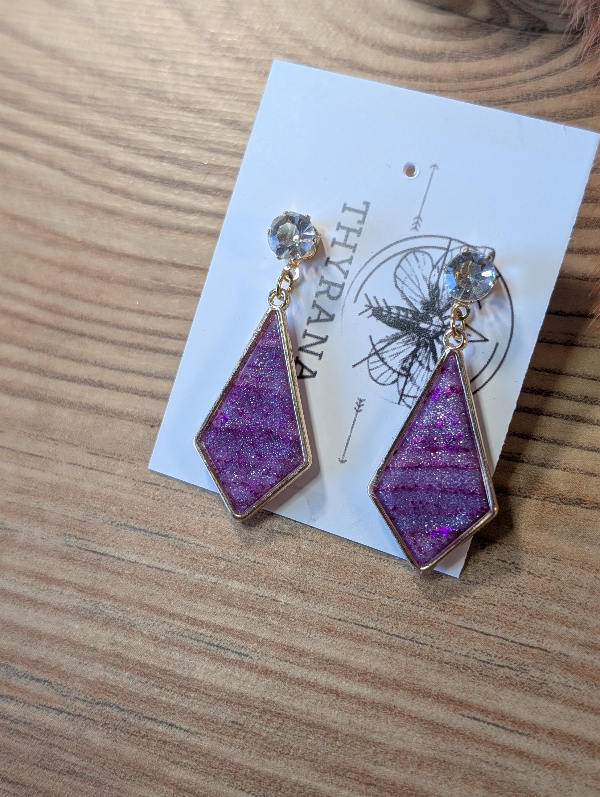 Diese kristallförmigen Ohrstecker in intensivem Lila vereinen nordische Mystik mit modernem Design. Inspiriert von rauen Edelsteinen und kraftvollen Symbolen wirken sie wie kleine magische Fragmente – stark, klar und ausdrucksvoll.