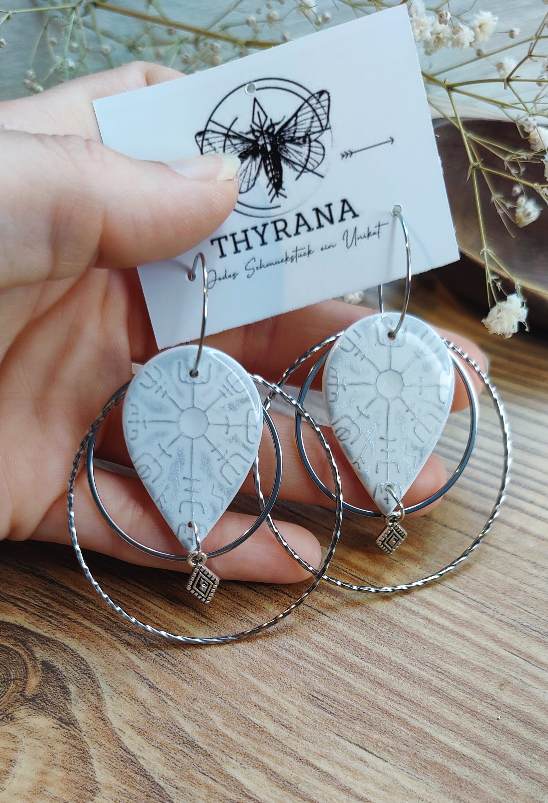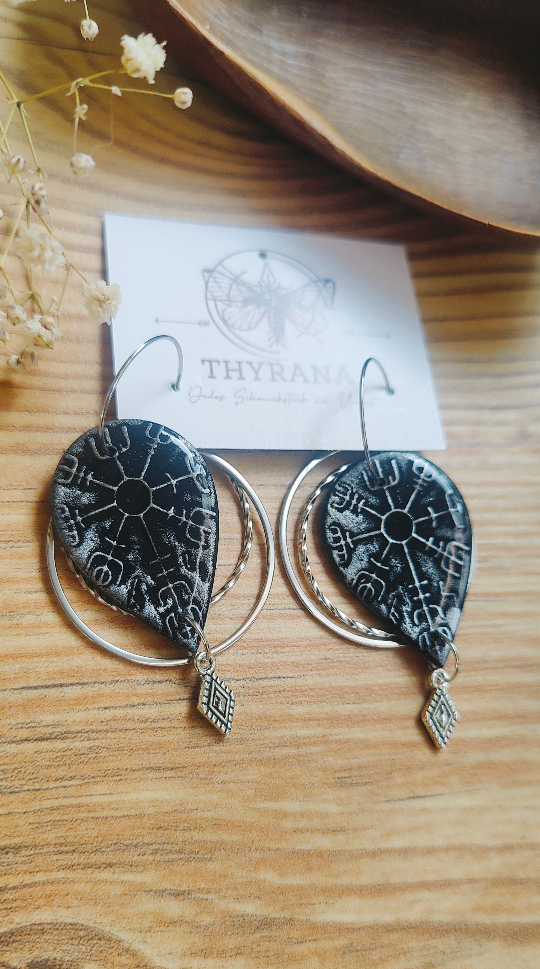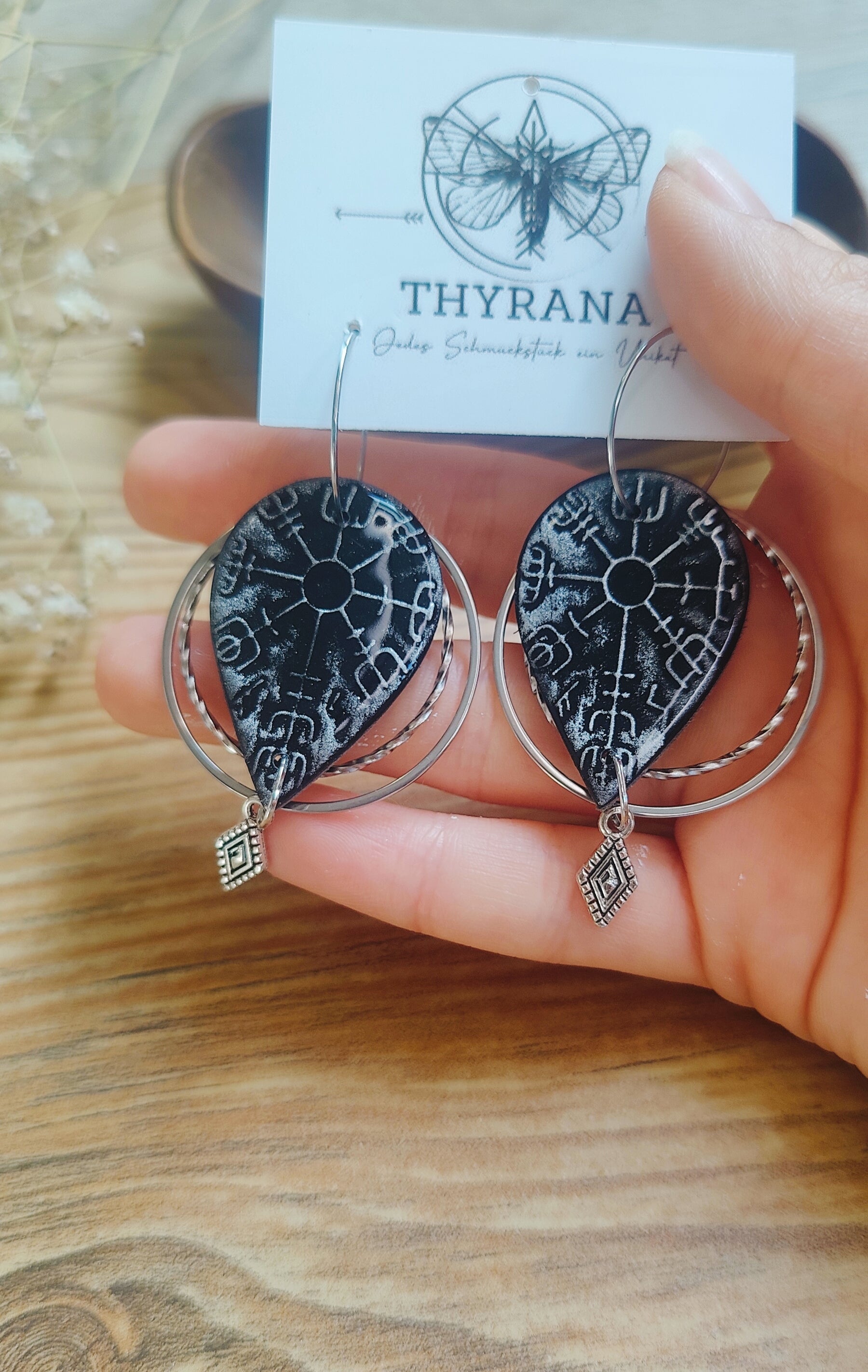 Diese einzigartigen Creolen verbinden nordische Symbolik mit modernem, minimalistischem Design. Im Mittelpunkt steht der Wikingerkompass (Vegvísir) – ein kraftvolles Symbol für Schutz, Orientierung und innere Stärke. Der filigran gearbeitete Anhänger wird von zwei schlichten Edelstahlringen eingerahmt, die dem Schmuckstück Tiefe und Bewegung verleihen.