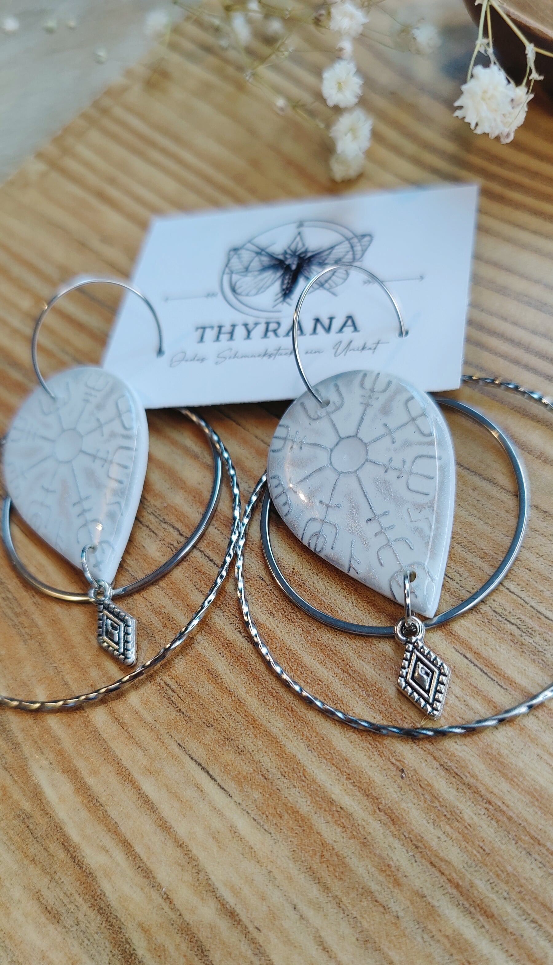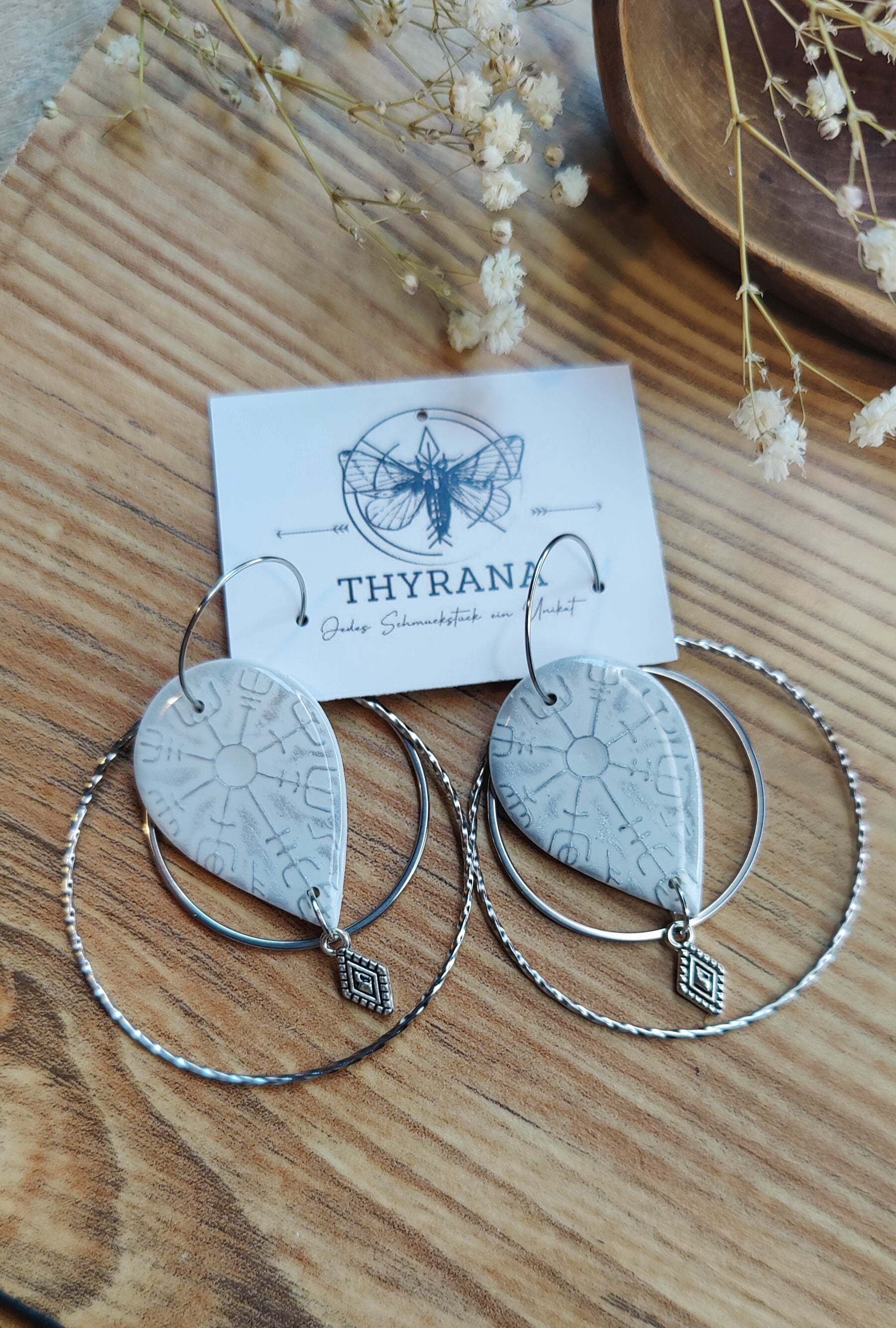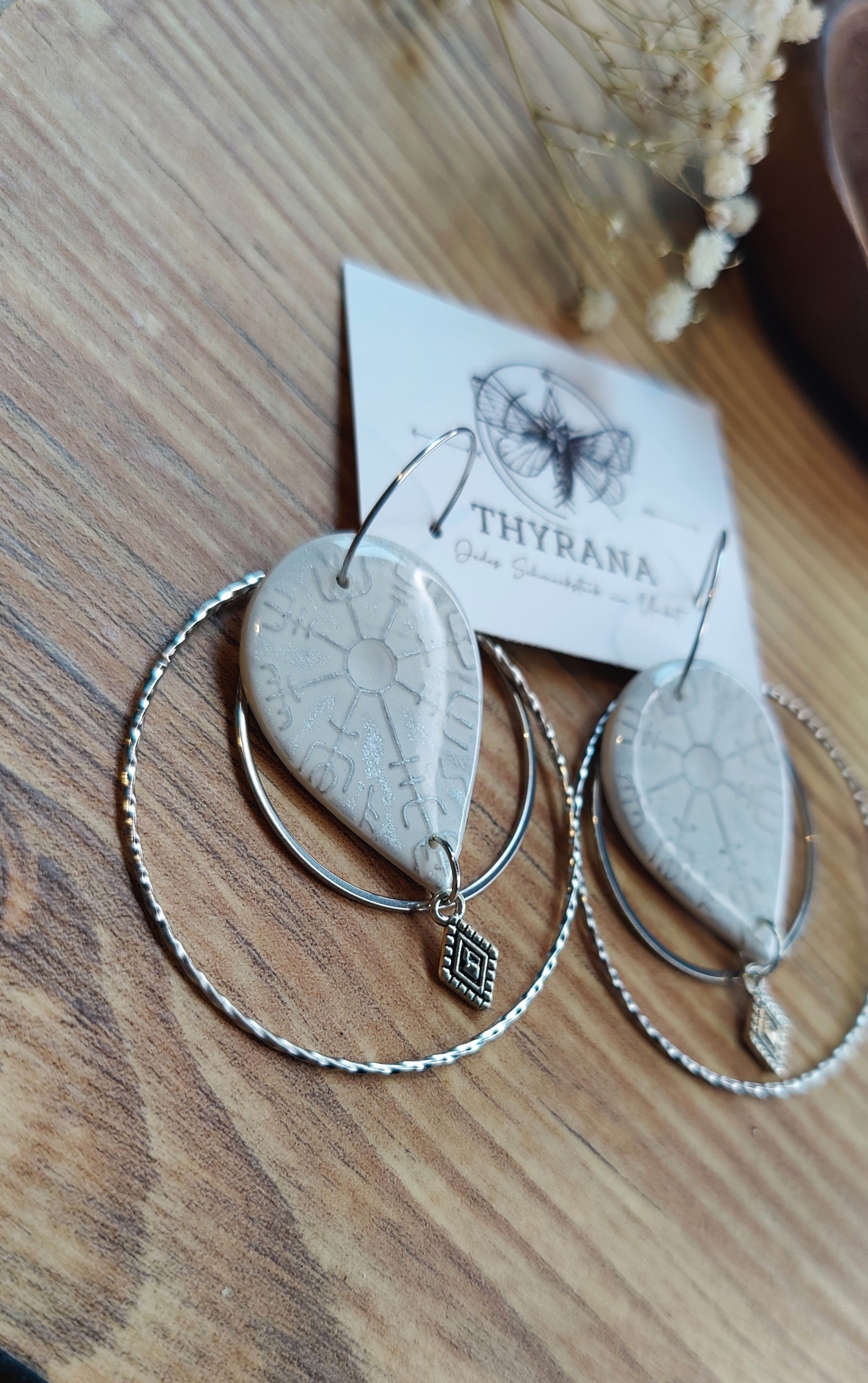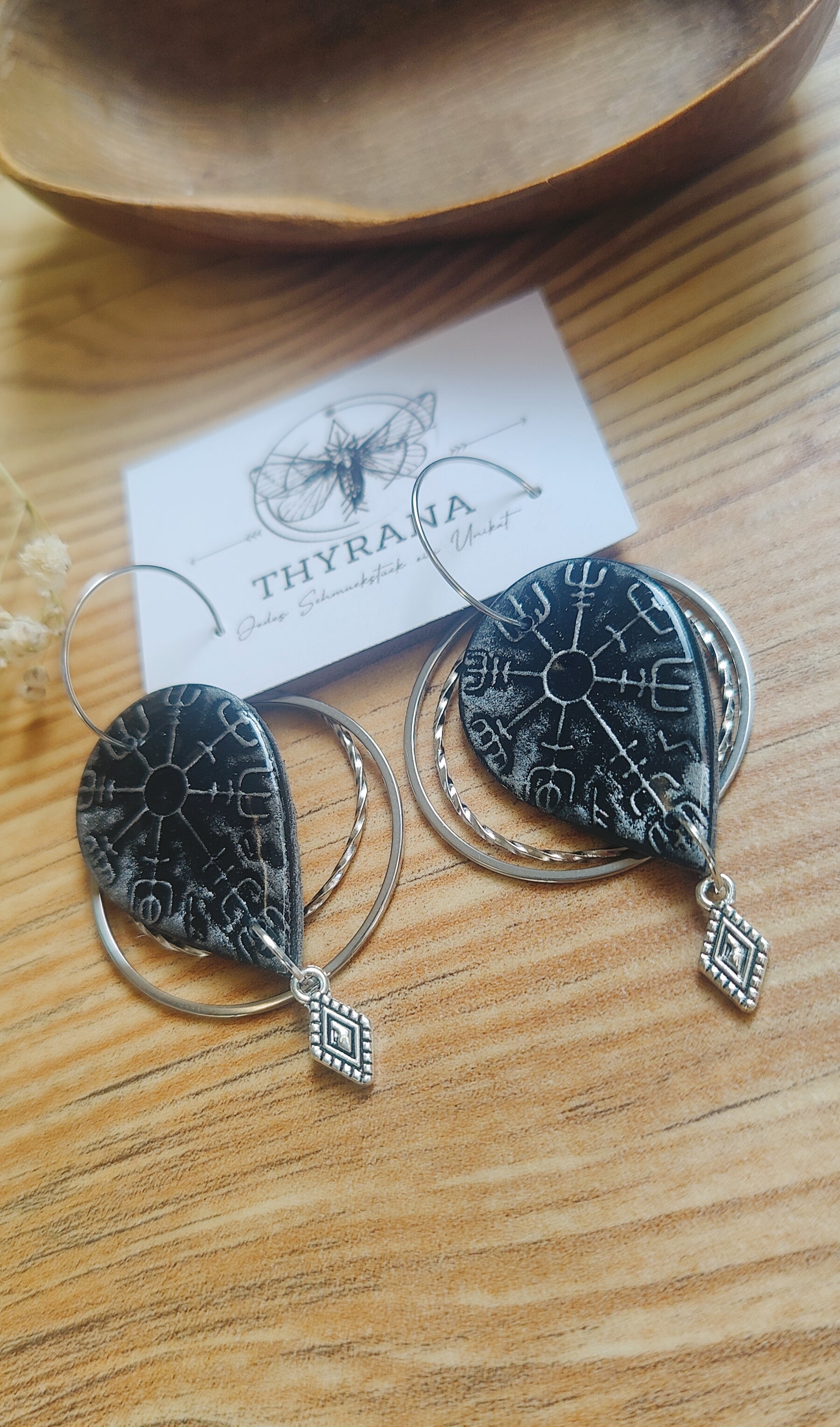 Diese einzigartigen Creolen verbinden nordische Symbolik mit modernem, minimalistischem Design. Im Mittelpunkt steht der Wikingerkompass (Vegvísir) – ein kraftvolles Symbol für Schutz, Orientierung und innere Stärke. Der filigran gearbeitete Anhänger wird von zwei schlichten Edelstahlringen eingerahmt, die dem Schmuckstück Tiefe und Bewegung verleihen.