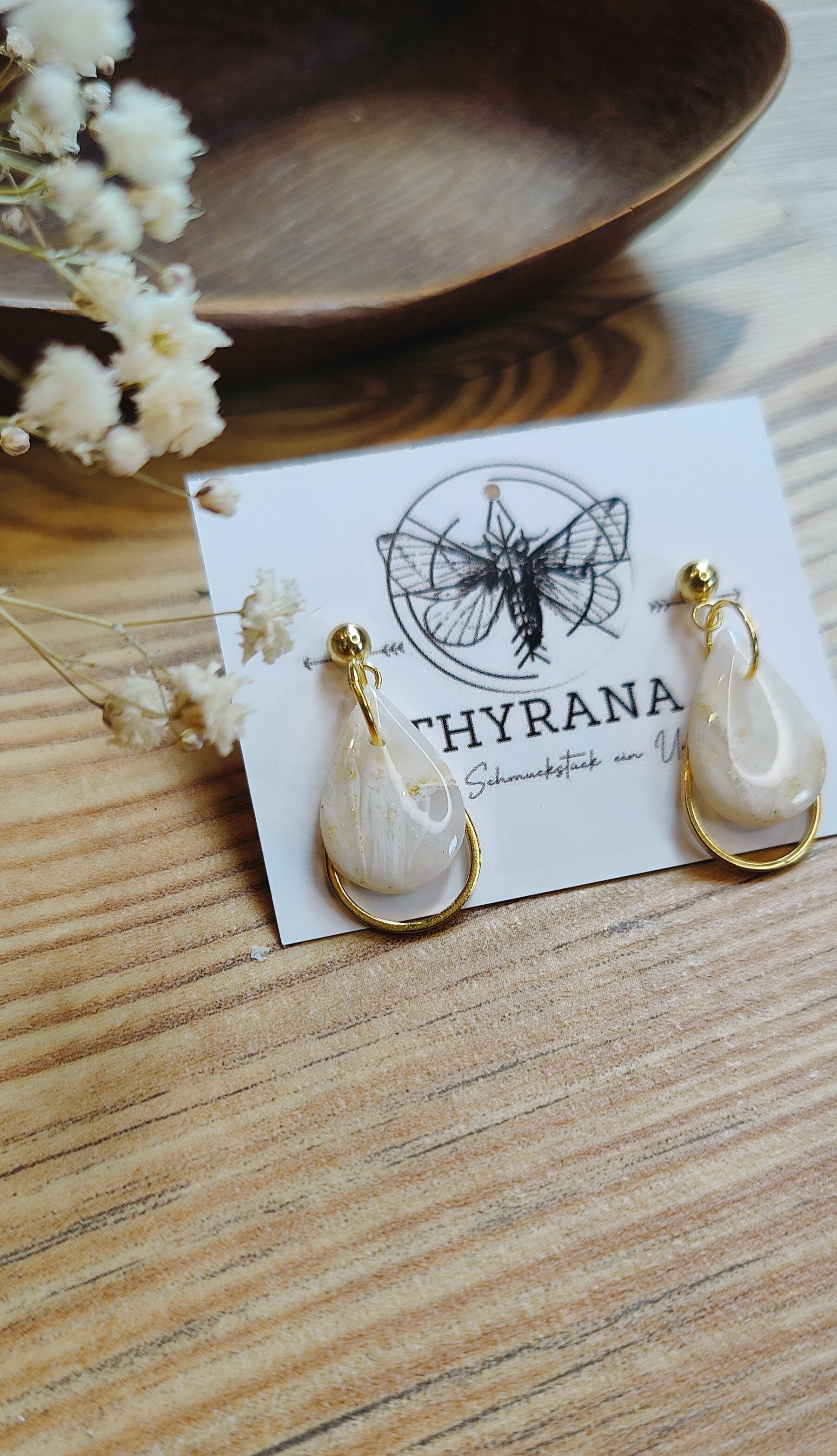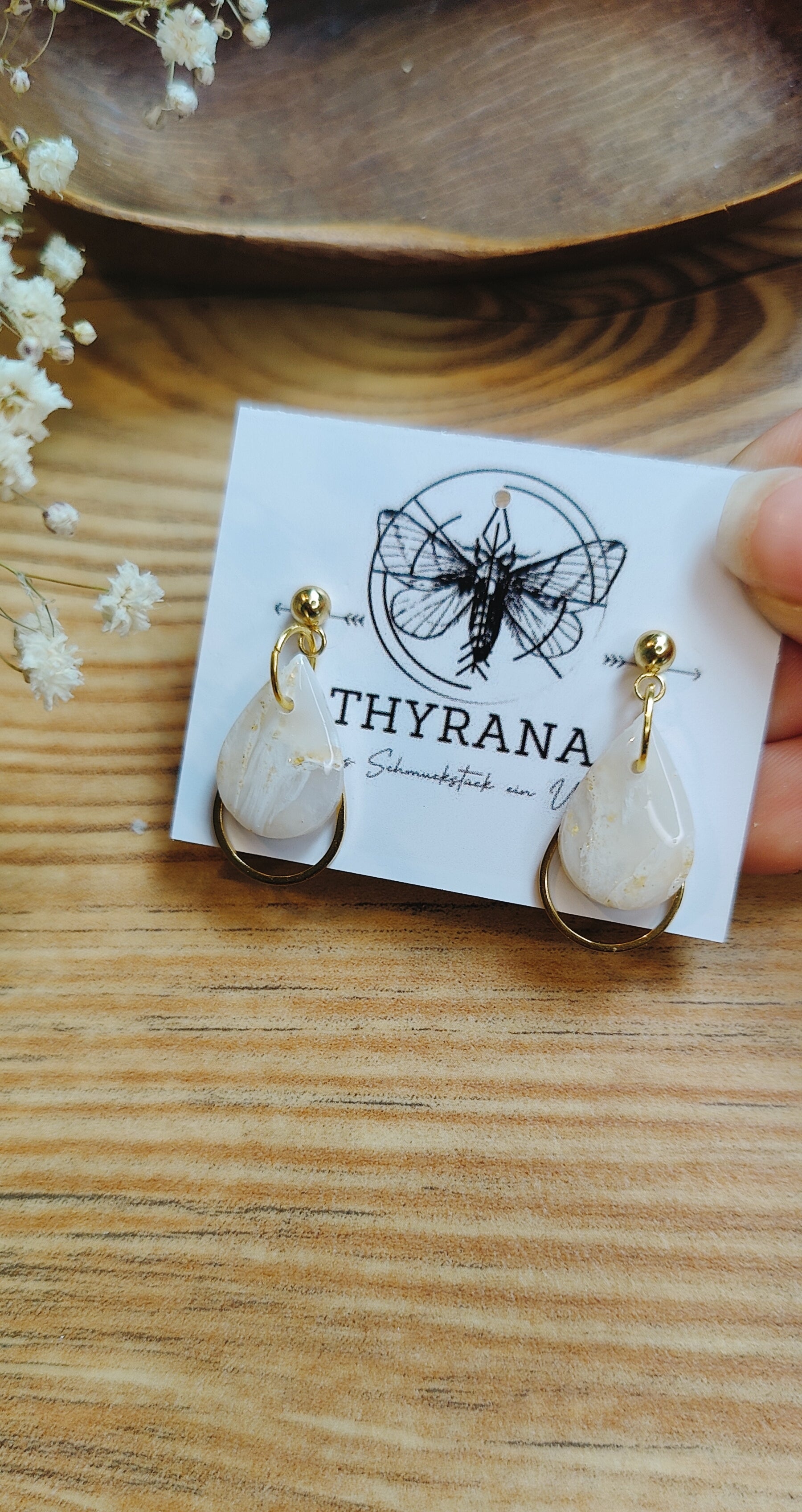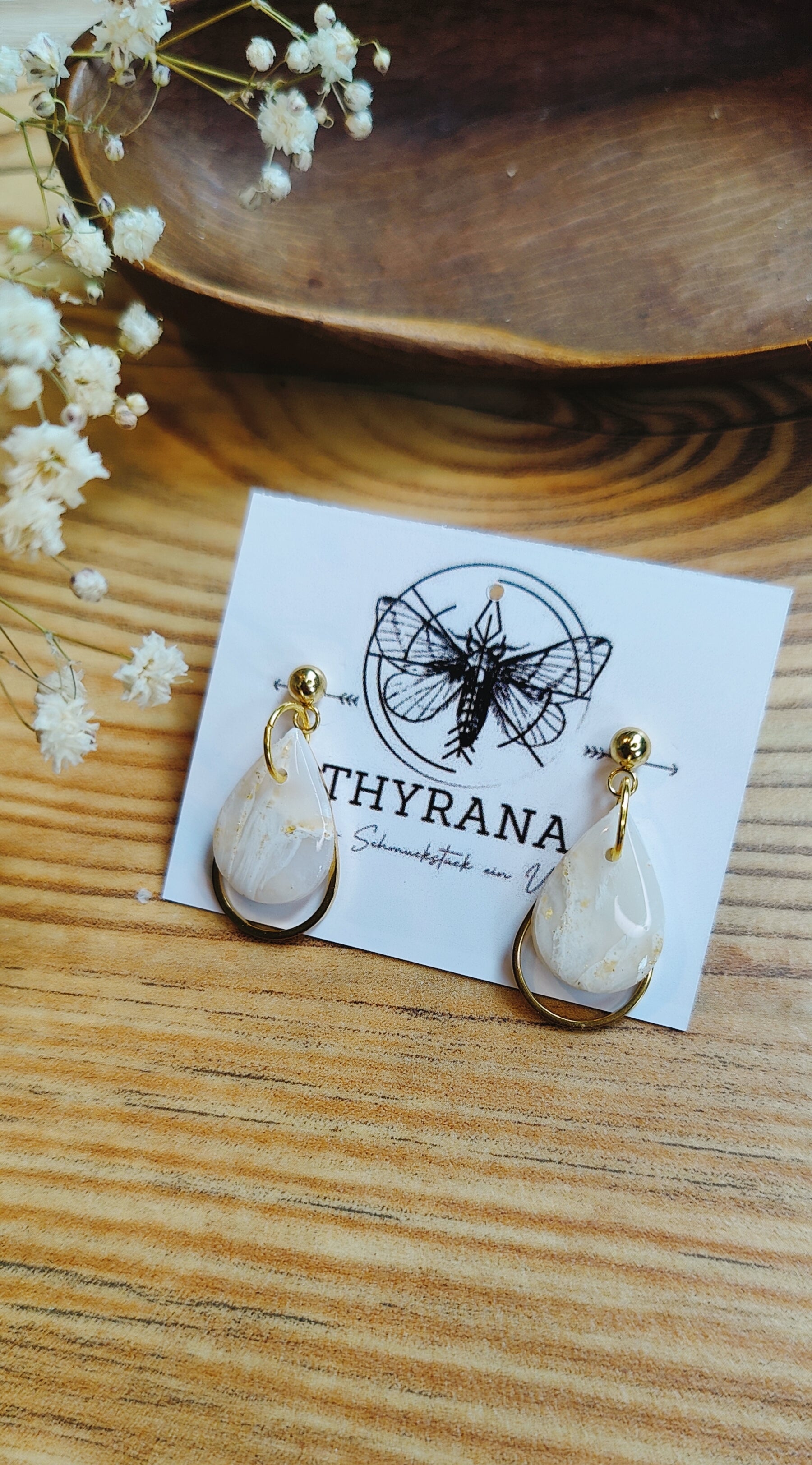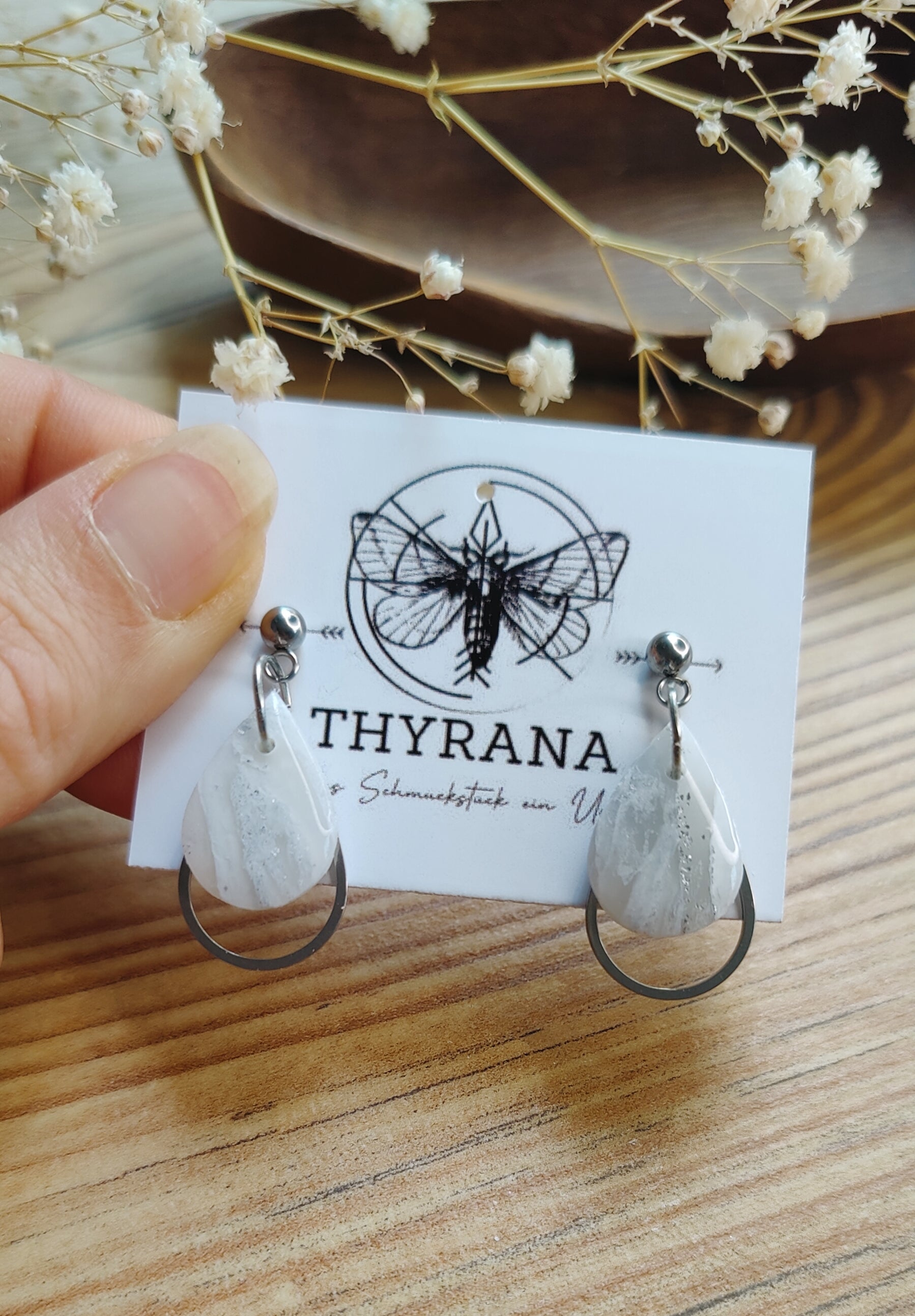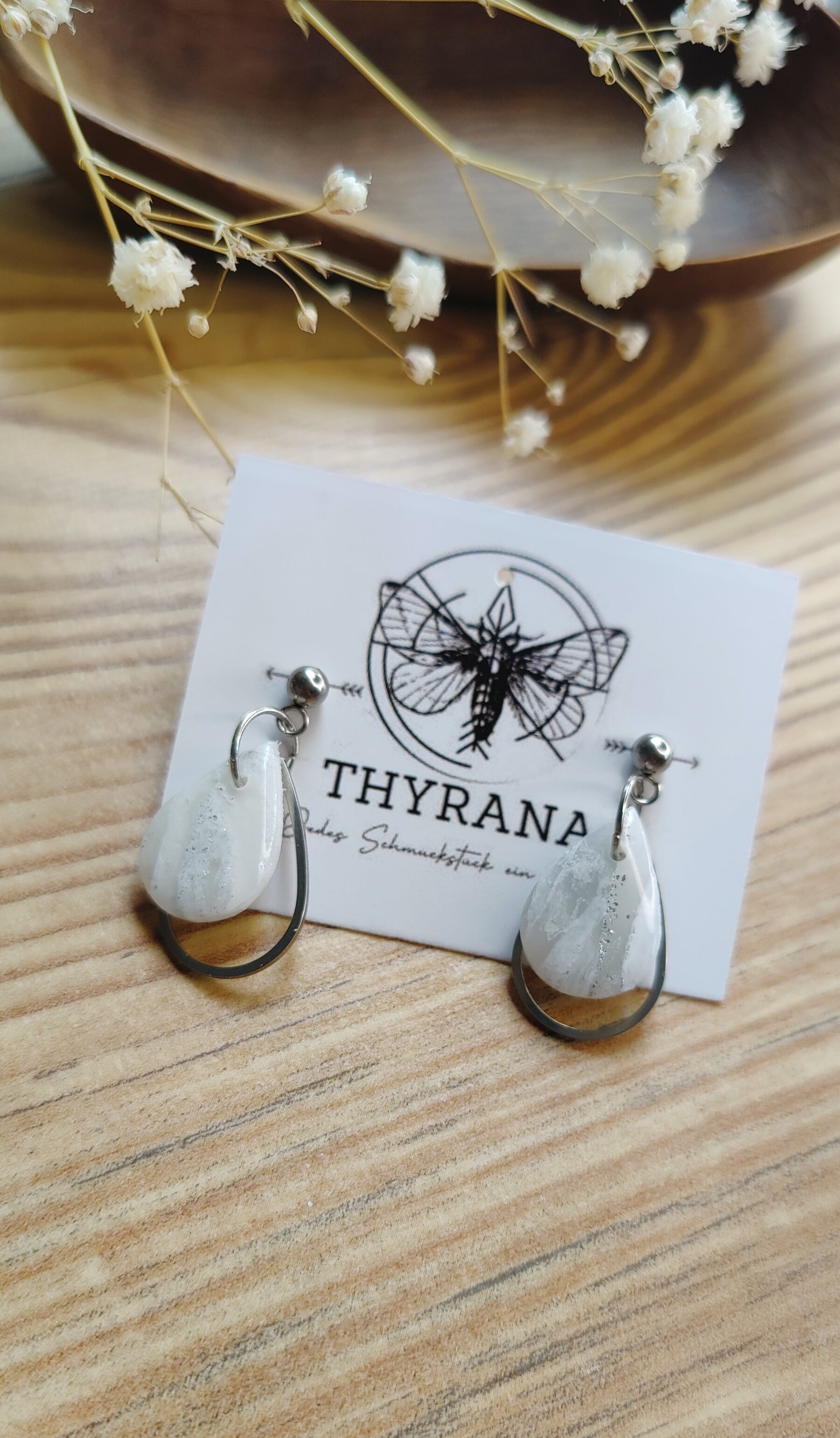 Diese stilvollen, handgefertigten Ohrstecker kombinieren modernes Design mit zeitloser Eleganz. Der zarte Tropfen aus hochwertigem, weißem Polymer-Ton wird von einer minimalistischen Kugel aus Edelstahl gehalten – für einen klaren, puristischen Look mit besonderem Charme.
