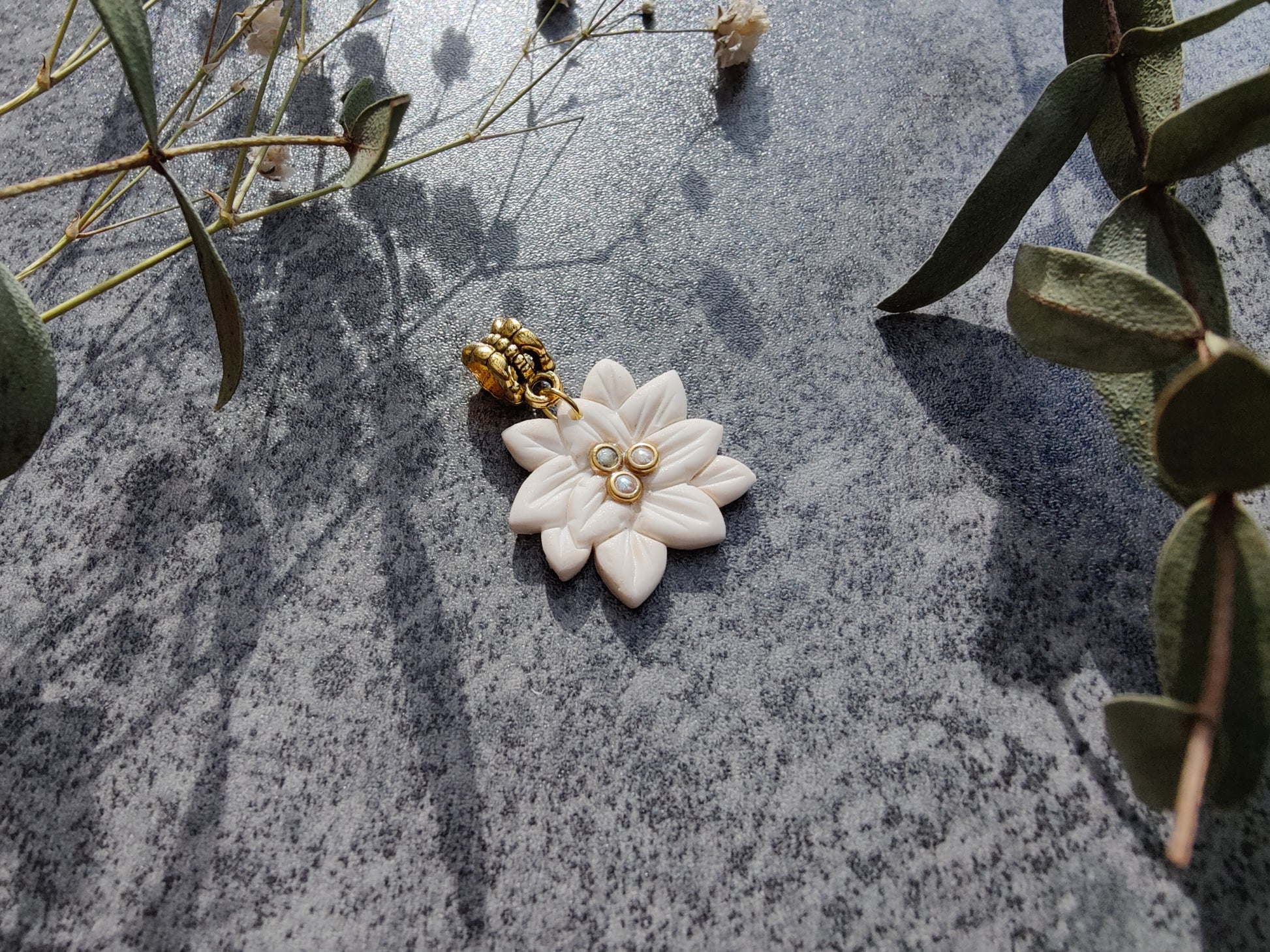 Diese bezaubernde Blume in Form eines Enzians wurde mit viel Liebe und Präzision aus hochwertigem Polymer-Ton handgefertigt. Das zarte Design der Enzianblume, bekannt für ihre Schönheit und Symbolik der Reinheit, wird in einem klassischen Weiß gehalten, das sowohl elegant als auch vielseitig ist.