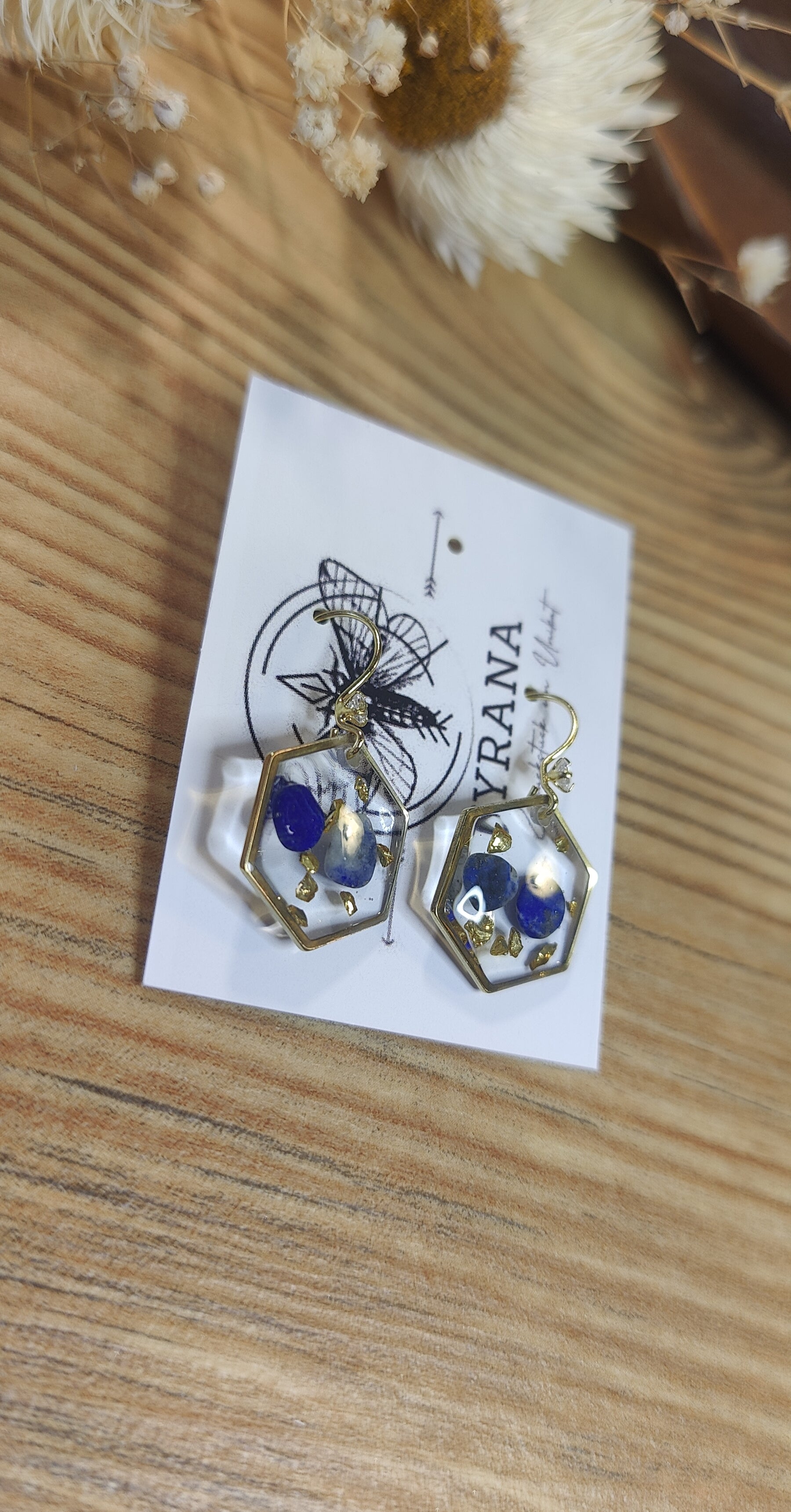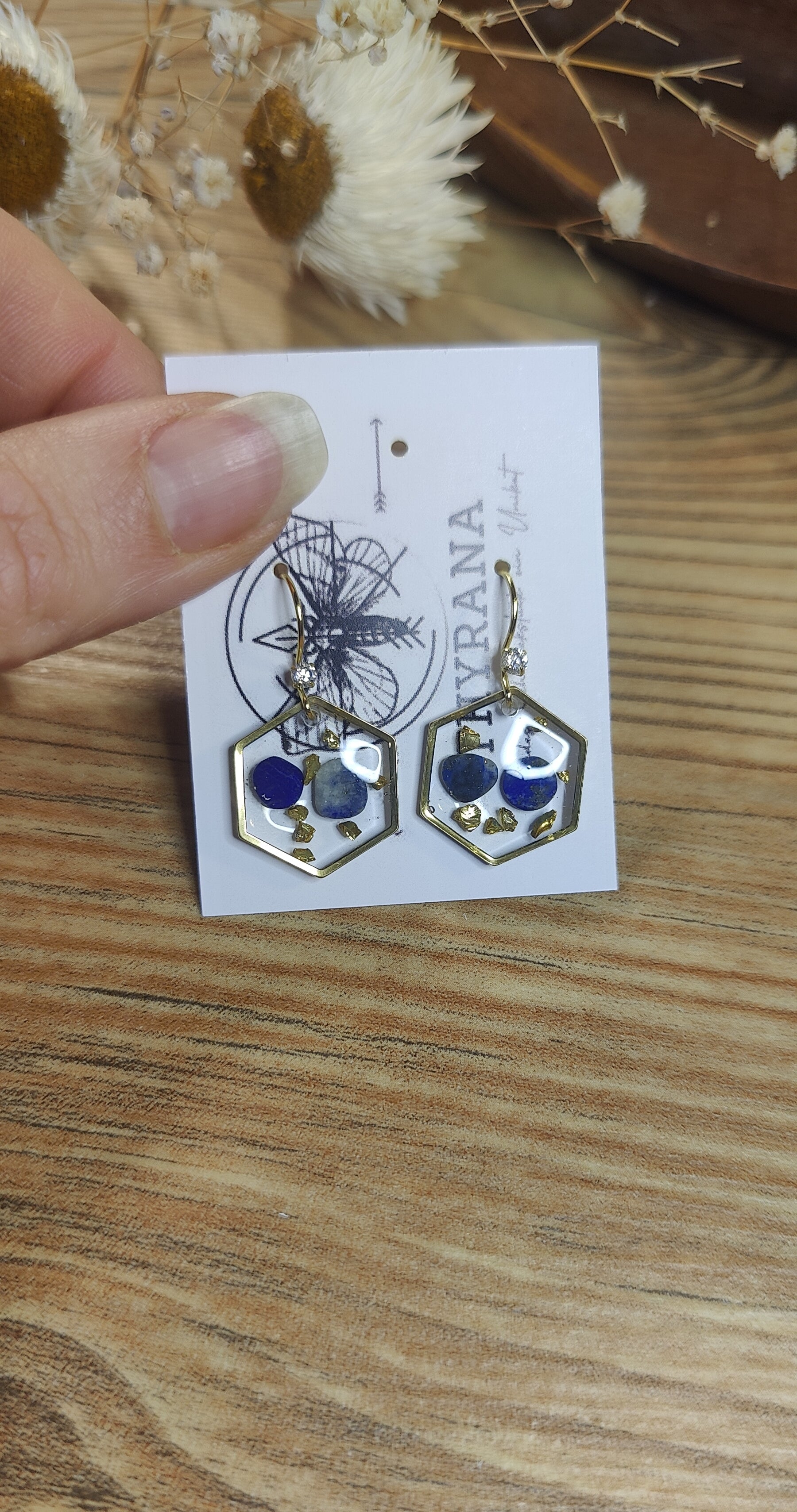 Diese einzigartigen, handgefertigten Ohrringe vereinen modernes geometrisches Design mit der natürlichen Energie echter Edelsteine.