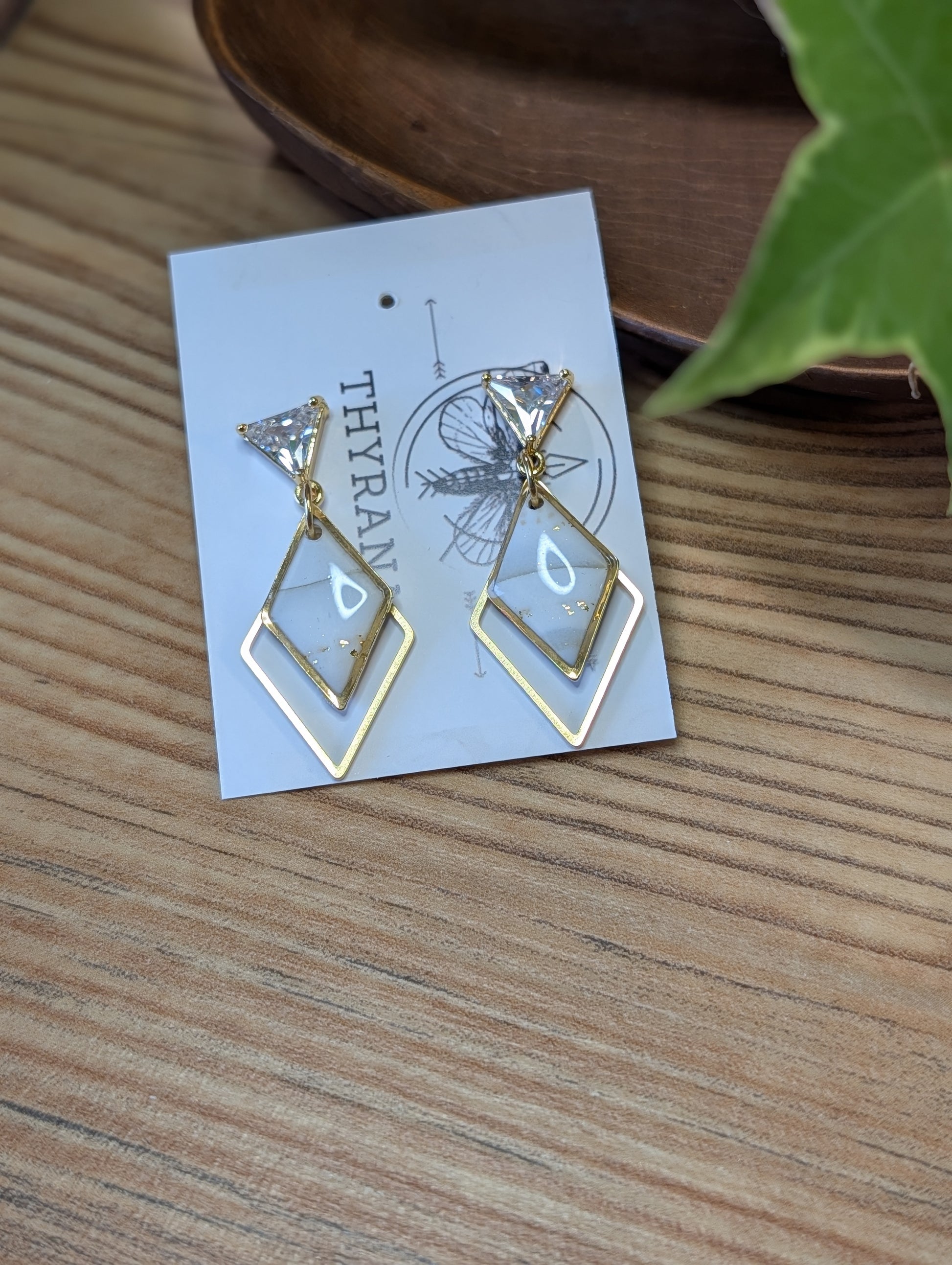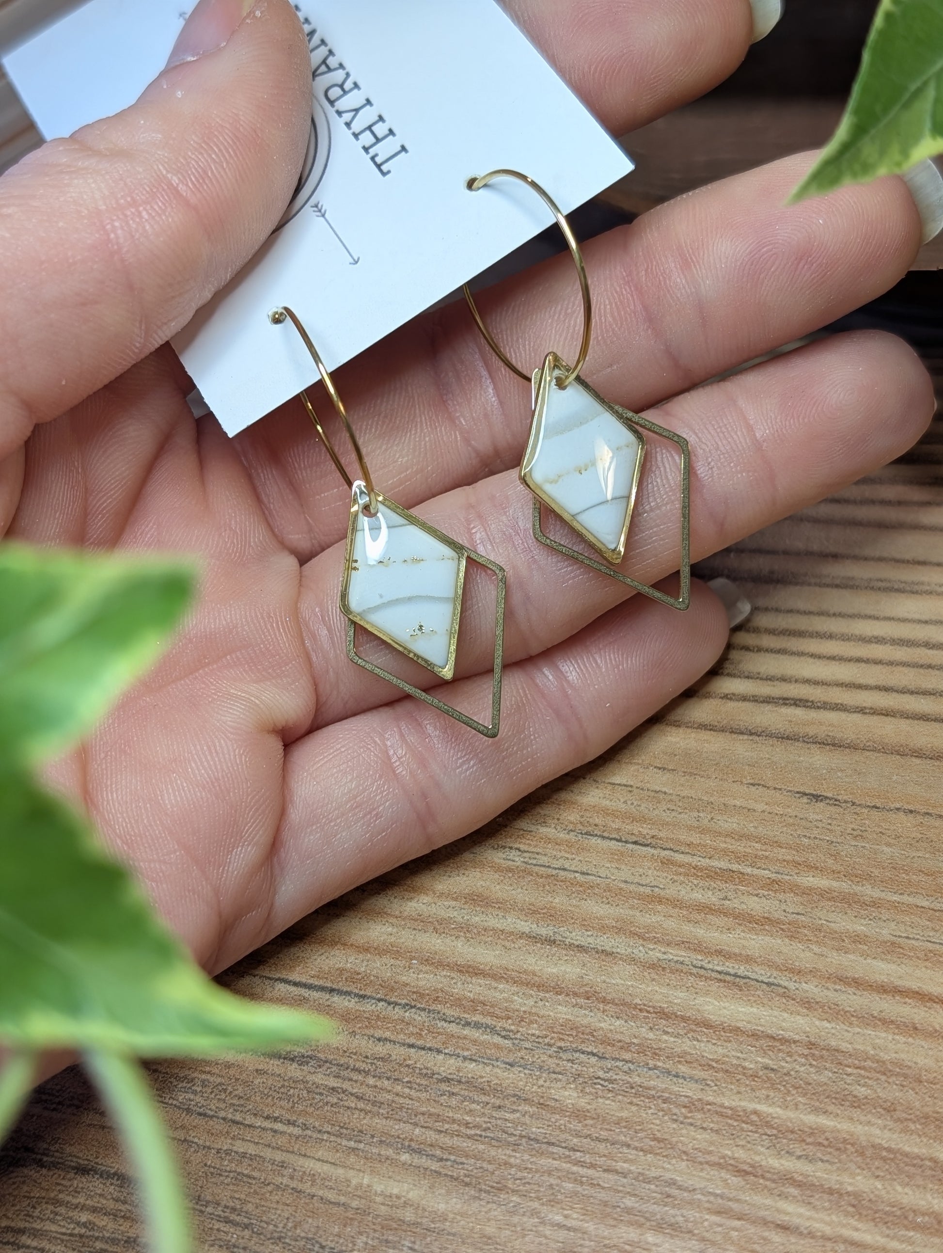 Diese handgefertigten Ohrringe vereinen moderne Formen mit hochwertigen Materialien. Jede Raute besteht aus farbigem Polymer-Ton, liebevoll gearbeitet und in einen Edelstahl-Rahmen eingefasst, der für Stabilität und zeitlose Eleganz sorgt.