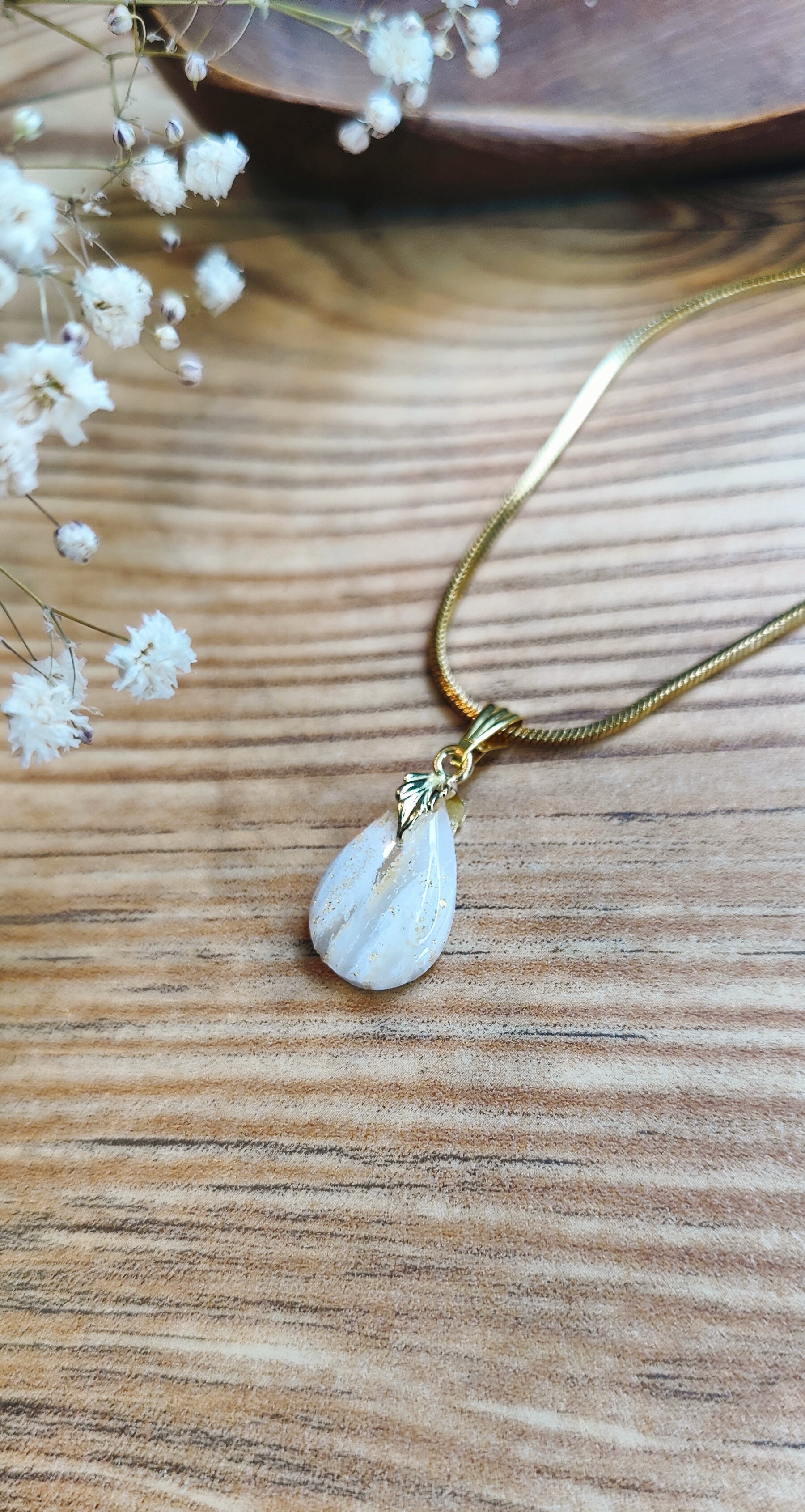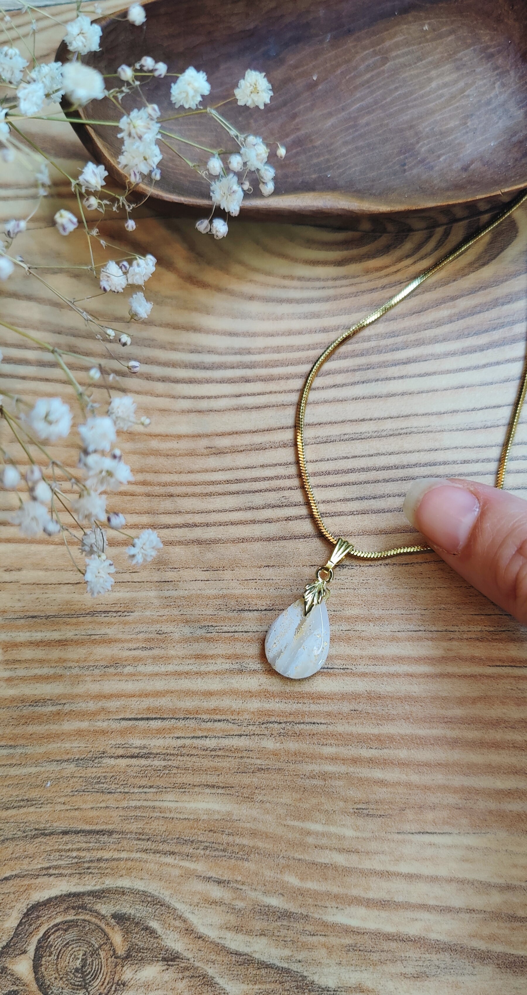 Schlicht, elegant und mit Liebe handgefertigt – diese zarte Edelstahlkette wird durch ihren Tropfenanhänger aus Polymer-Ton zu einem besonderen Schmuckstück. Der Tropfen wird von Hand modelliert und verleiht der Kette eine moderne, stilvolle Note. Ideal für den Alltag oder besondere Anlässe.