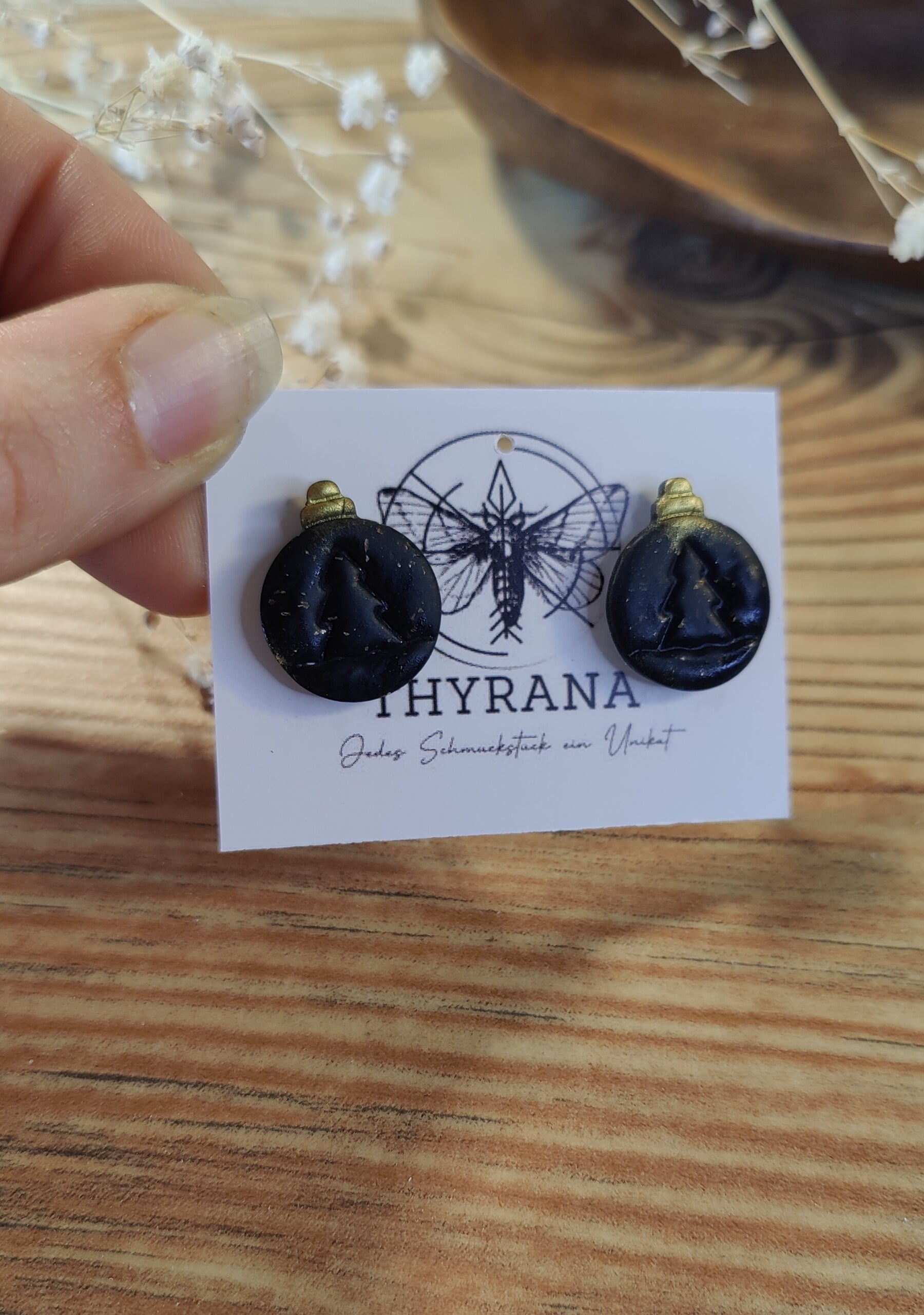 Diese handgefertigten Weihnachts-Ohrstecker in edlem Schwarz-Gold vereinen festlichen Glanz mit modernem Design.