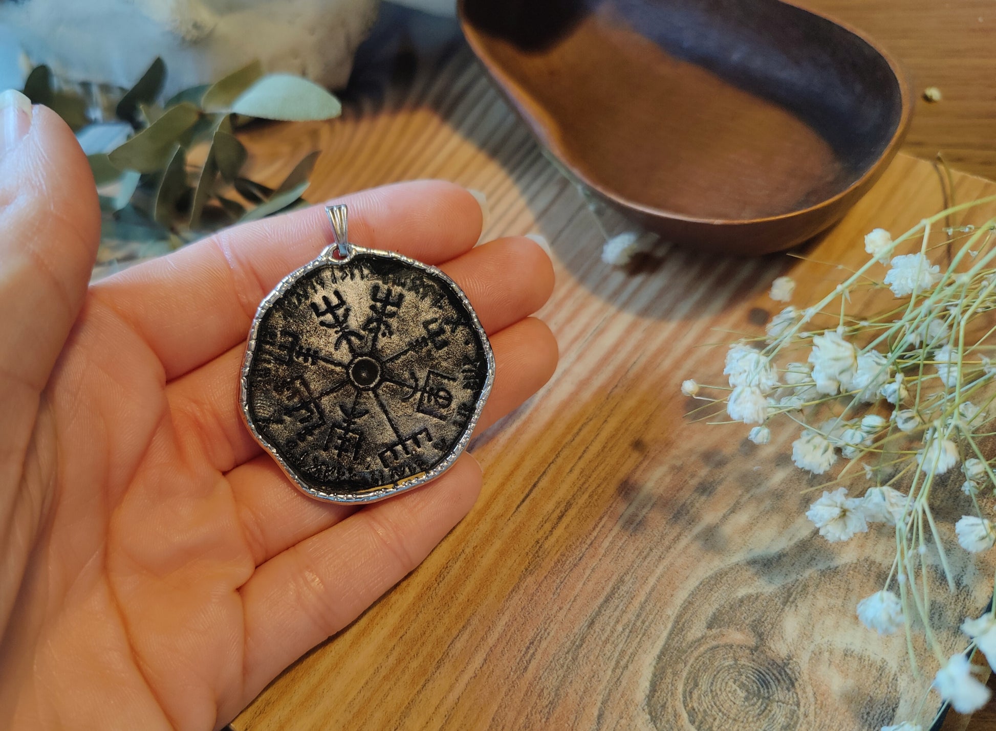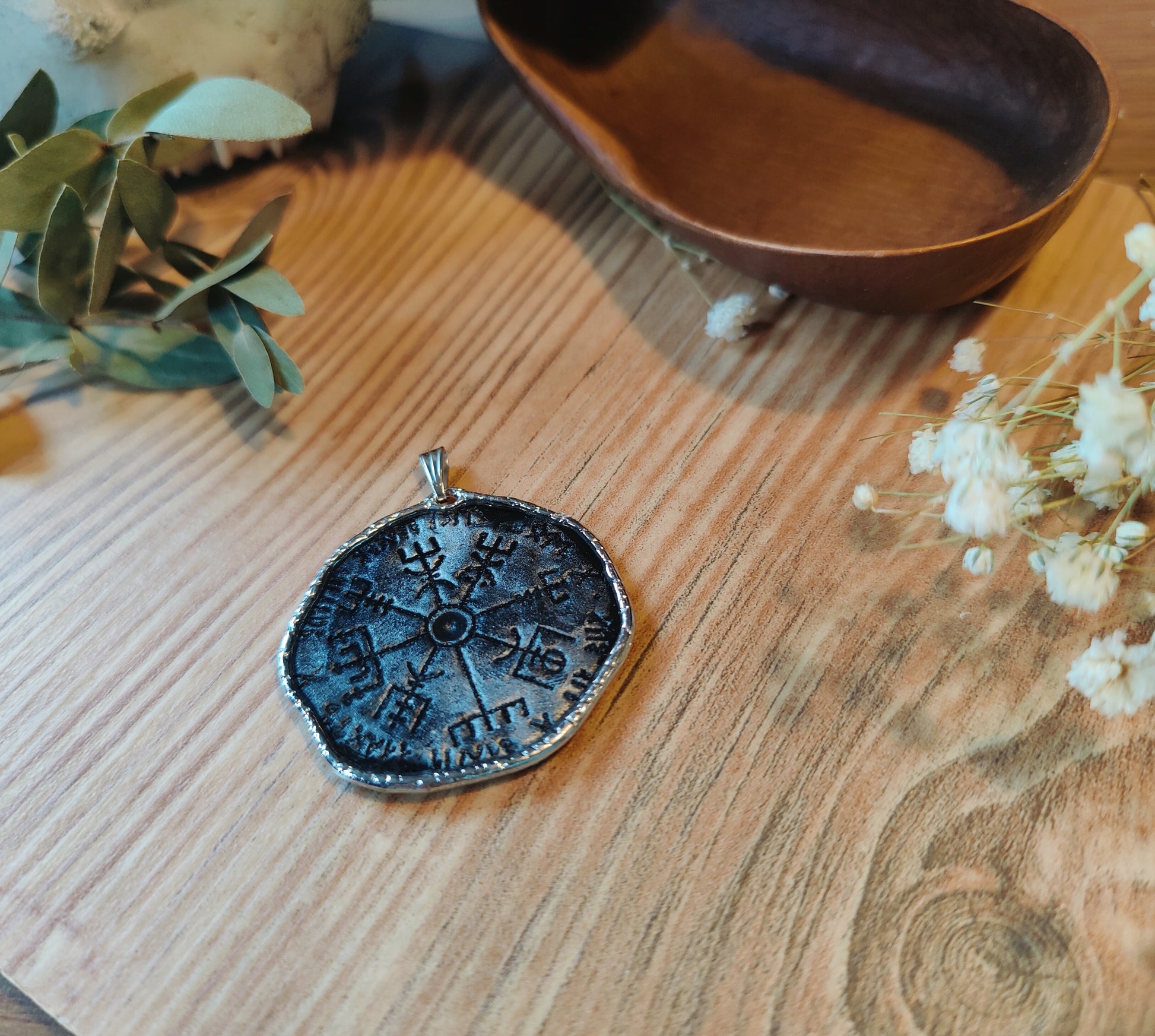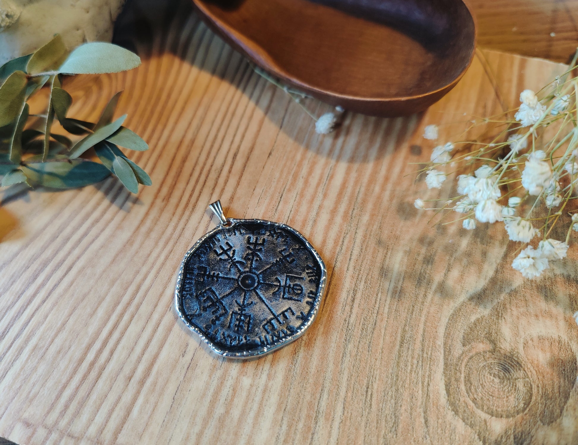 Dieser handgefertigte Kettenanhänger ist das perfekte Geschenk für Liebhaber nordischer Kultur oder für alle, die ein Symbol der Orientierung und Stärke bei sich tragen möchten.