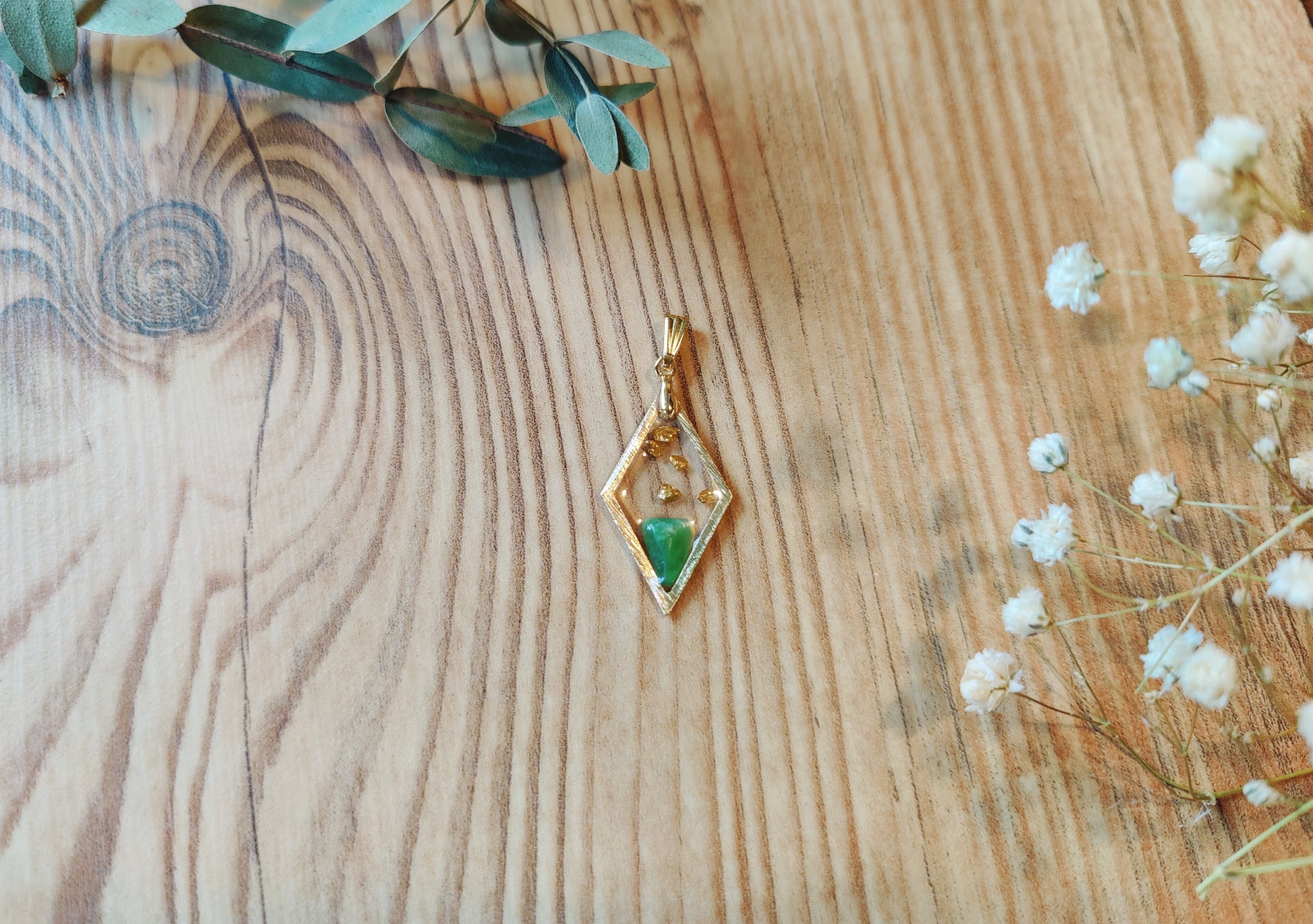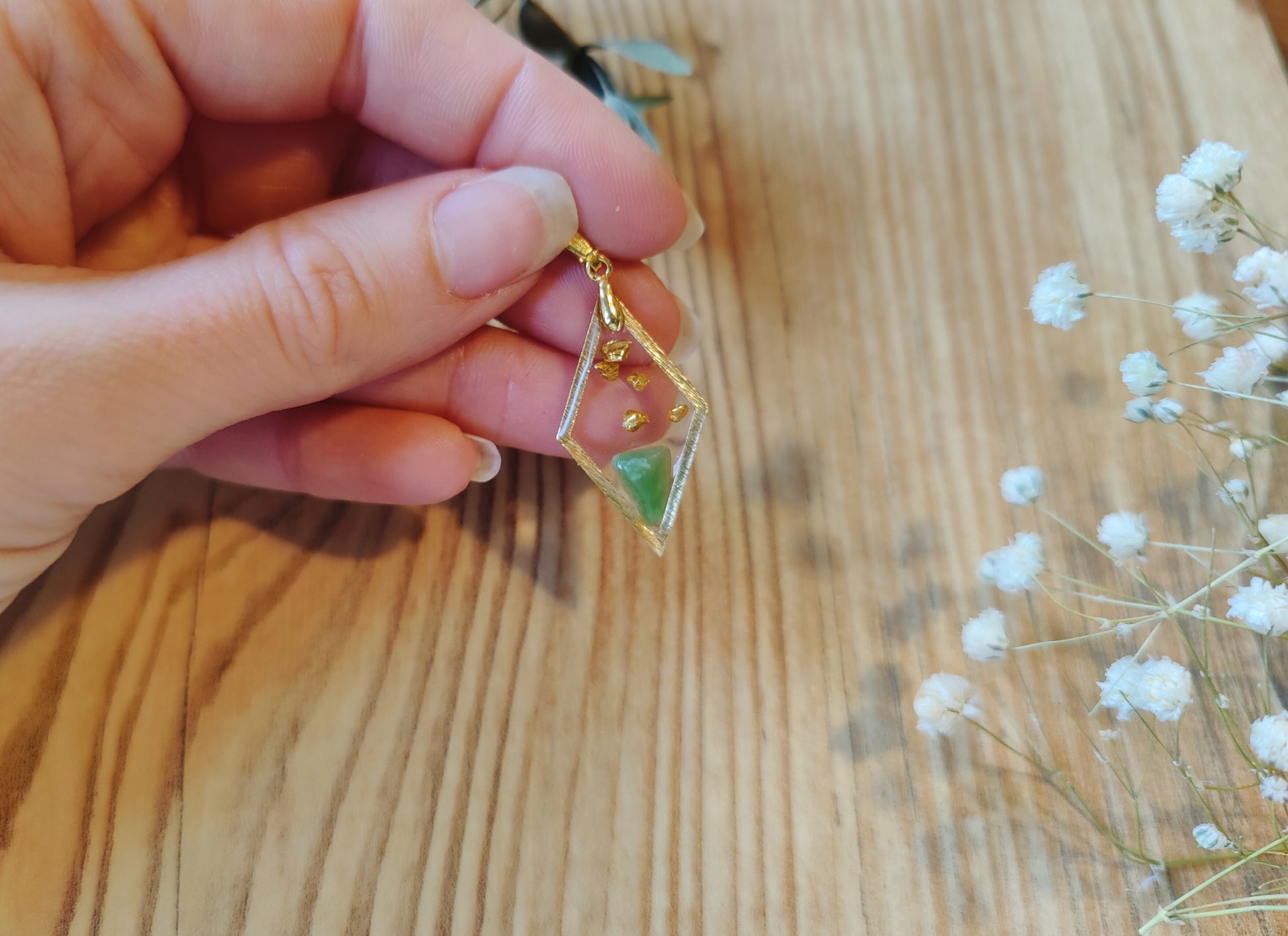 Dieser edle Kettenanhänger vereint die harmonische Ausstrahlung von echtem Jade mit der modernen Klarheit von Gießharz. In sorgfältiger Handarbeit gefertigt, entsteht ein einzigartiges Schmuckstück, das die natürliche Schönheit des grünen Edelsteins hervorhebt. Die transparente Harzfassung schützt den Stein und verleiht dem Anhänger eine besondere Tiefe, während die Edelstahlöse für eine stilvolle und langlebige Ergänzung sorgt.