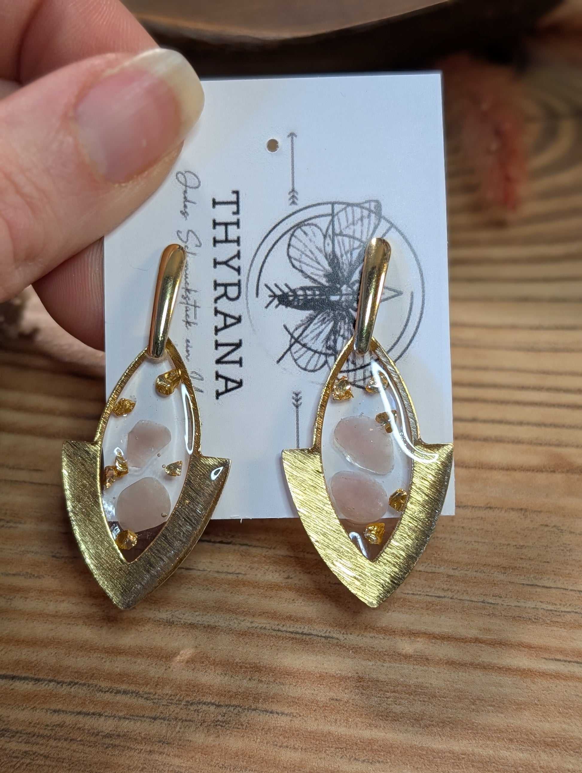 Diese einzigartigen Ohrstecker vereinen zartes Gießharz mit zwei kraftvollen Edelsteinen: Rosenquarz und Regenbogen-Mondstein – Steine, die für Liebe, Harmonie und positive Energie stehen. Jeder Stein wurde sorgfältig ausgewählt und liebevoll in das handgegossene Harz eingebettet, sodass jedes Paar ein kleines, persönliches Kunstwerk ist.