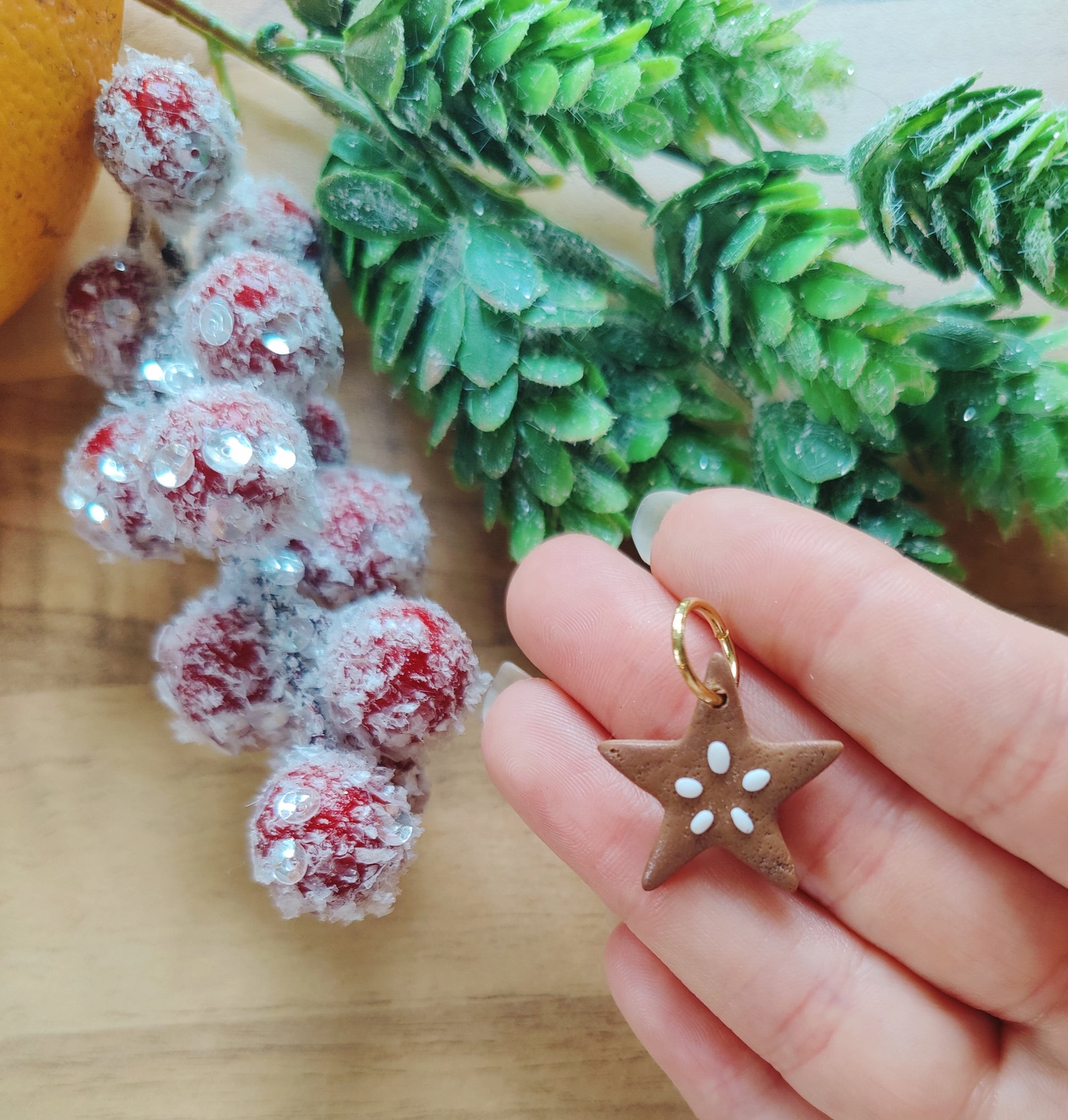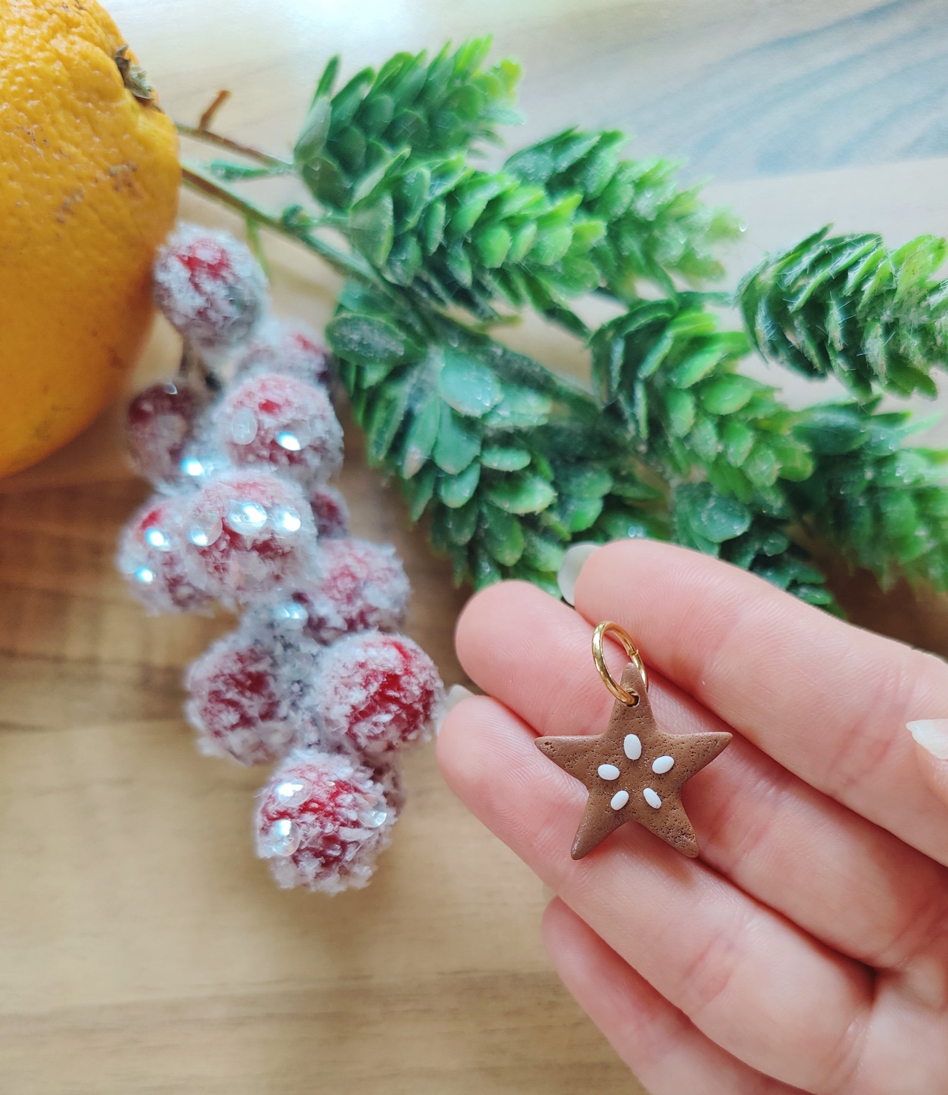 Dieser bezaubernde Kettenanhänger in Form eines Lebkuchensterns aus Polymer Clay vereint festlichen Charme mit zeitloser Eleganz. In aufwendiger Handarbeit gefertigt, besticht der Anhänger durch seine realistische Lebkuchenoptik und filigrane Zuckerglasur, die wie handverziert wirkt. Jedes Stück ist ein kleines Kunstwerk, perfekt für die Weihnachtszeit oder als originelles Geschenk.