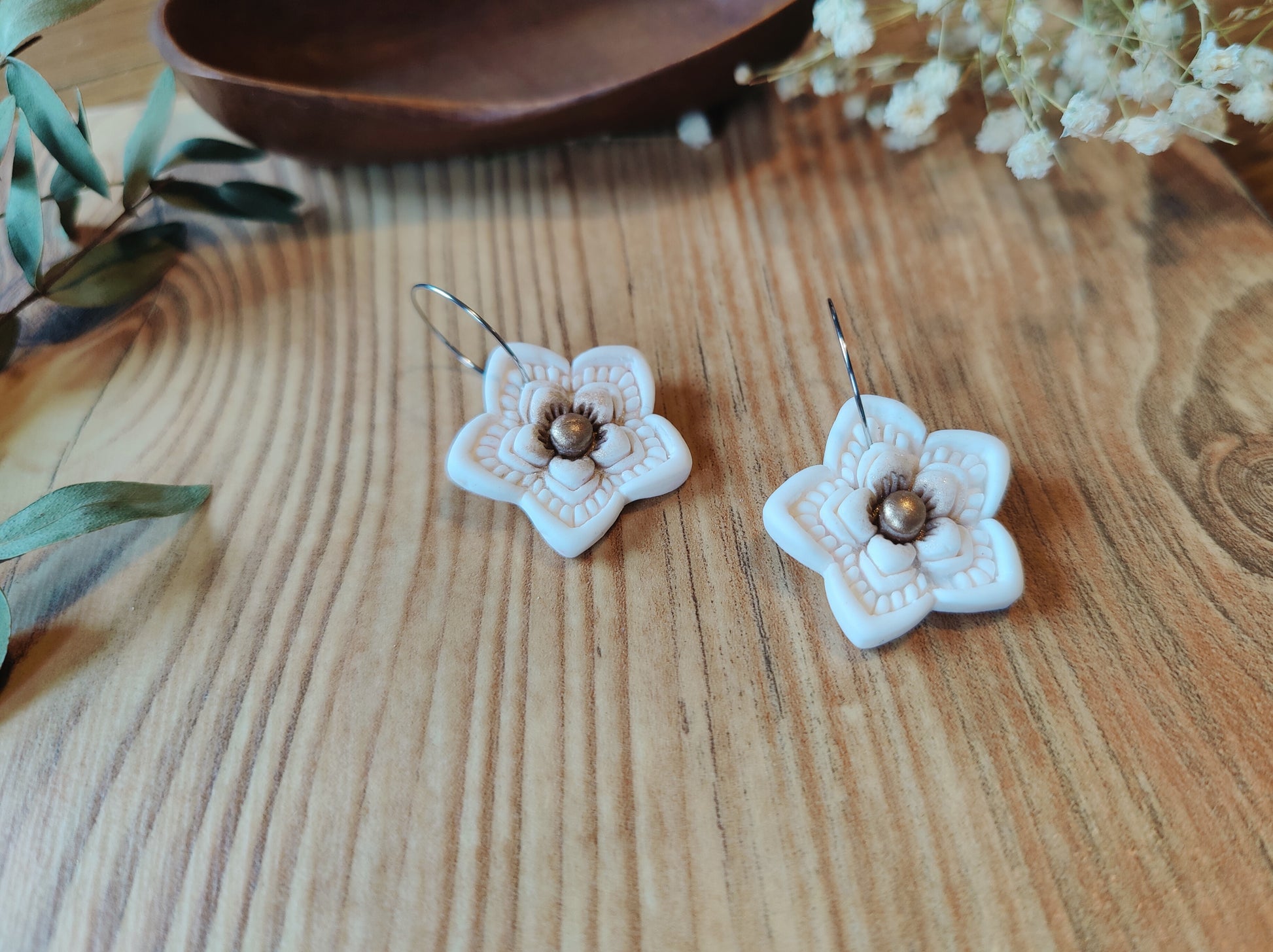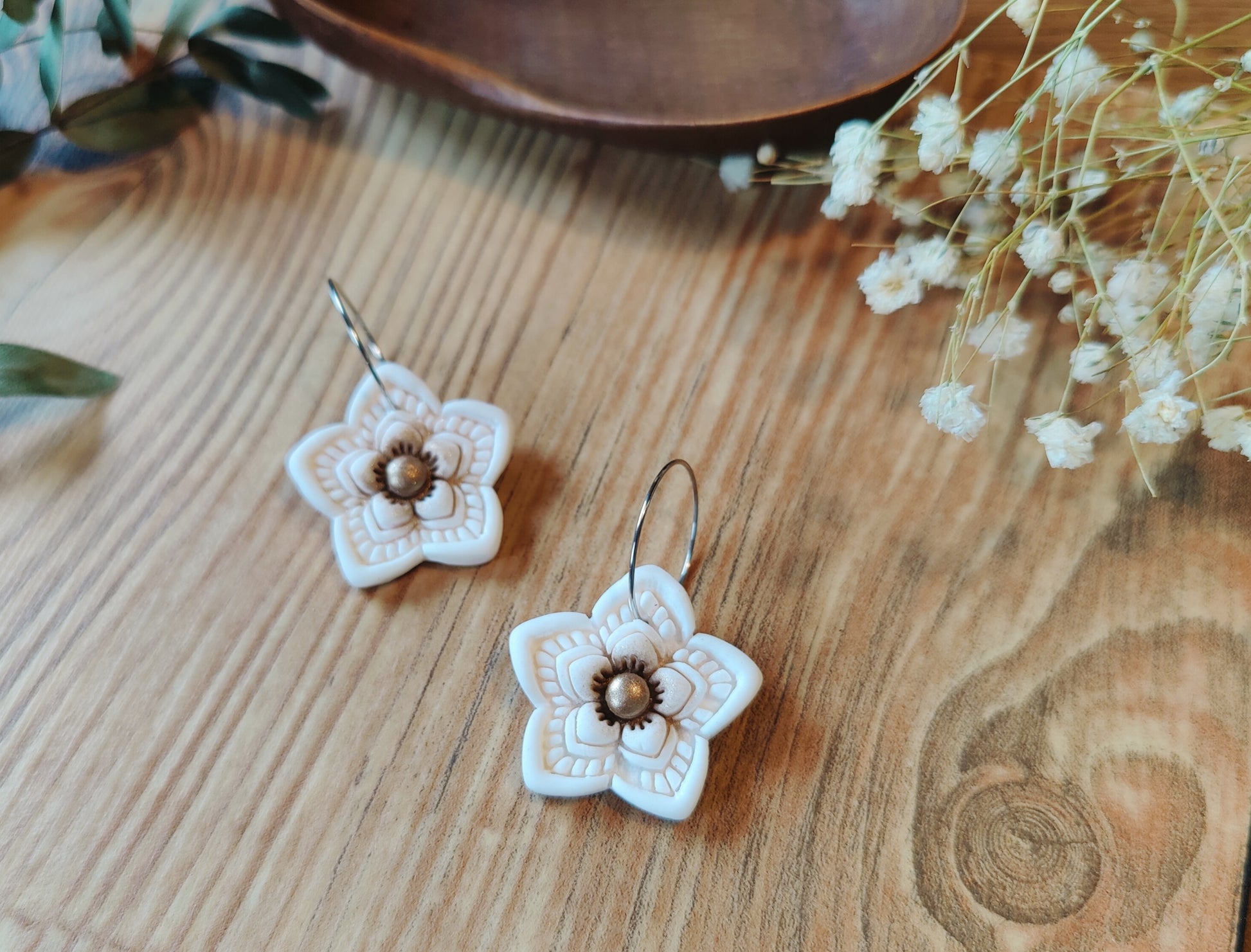 Diese handgefertigten Blumen-Ohrringe sind das perfekte Accessoire für alle, die eine romantische und natürliche Note in ihrem Schmuckstil suchen. Ein tolles Geschenk oder eine schöne Ergänzung für Ihre eigene Sammlung.