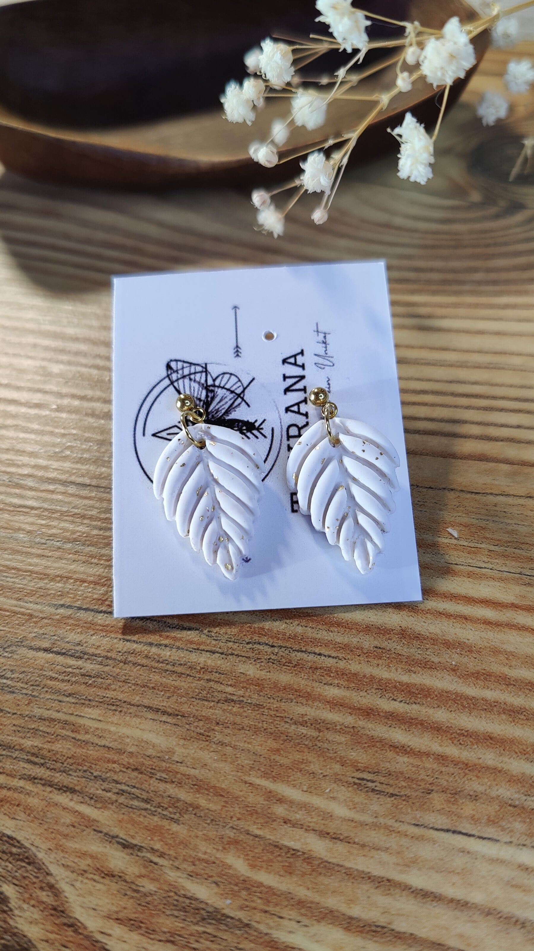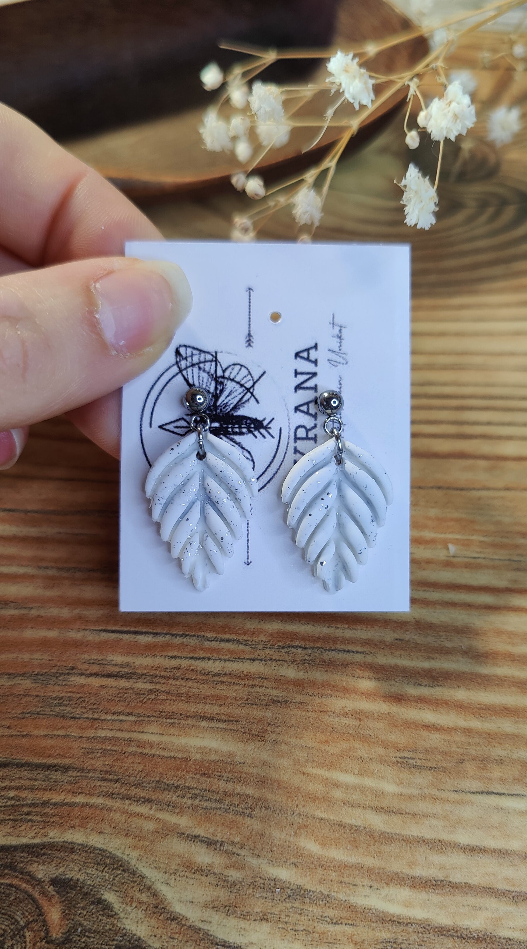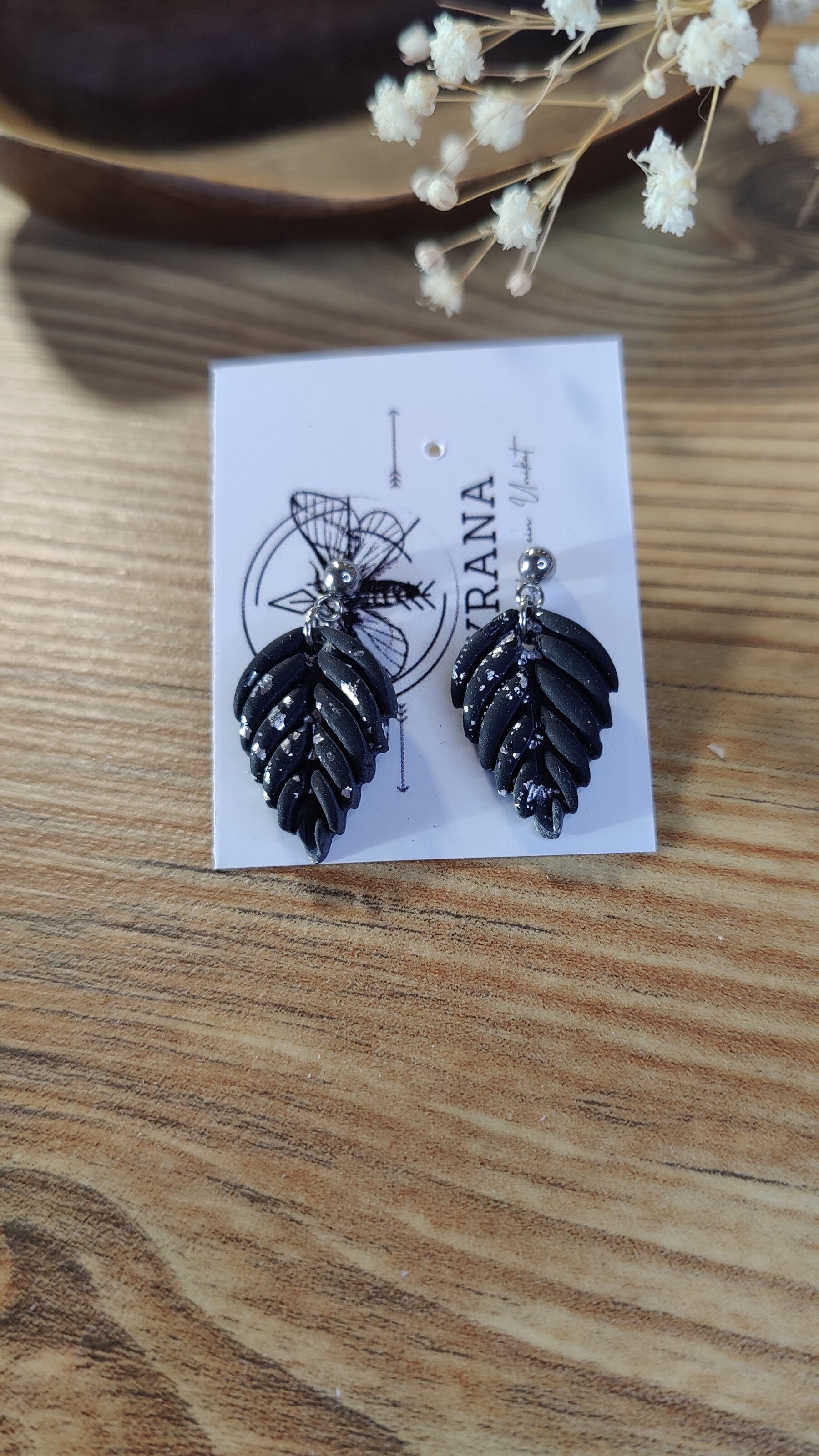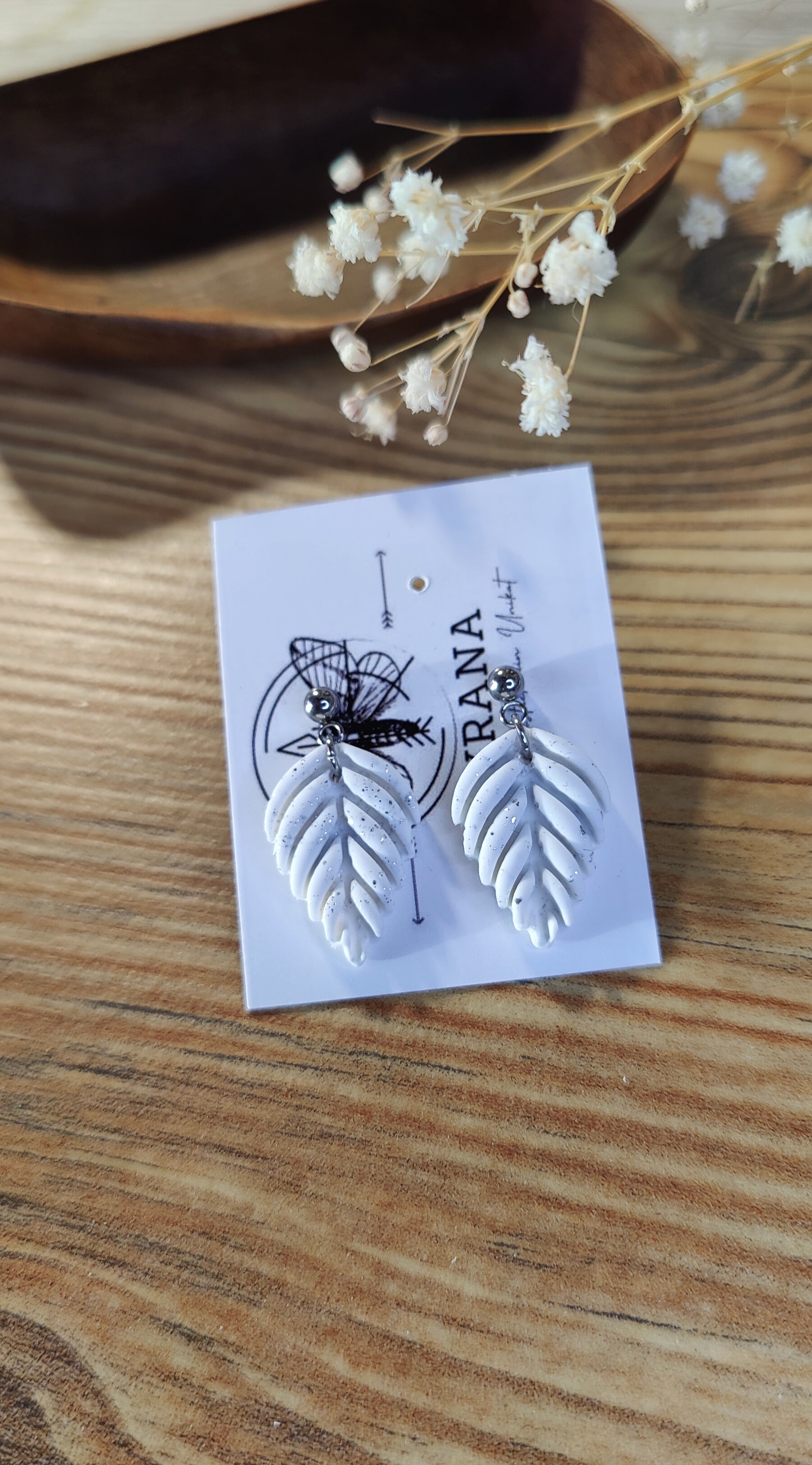 Aus hochwertigem Polymer-Ton in klassischem Schwarz oder Weiß gefertigt, sind sie in feiner Blatt-Optik modelliert – ein minimalistisches, zugleich ausdrucksstarkes Schmuckstück.