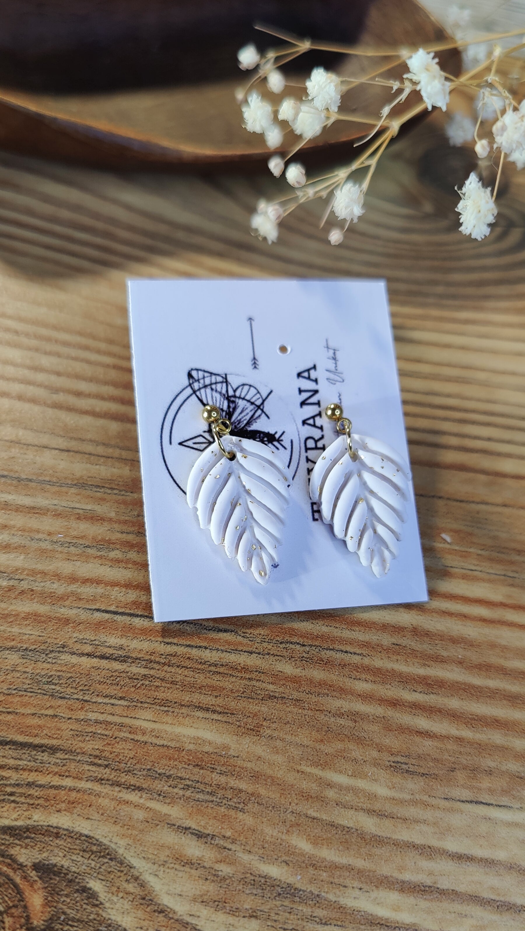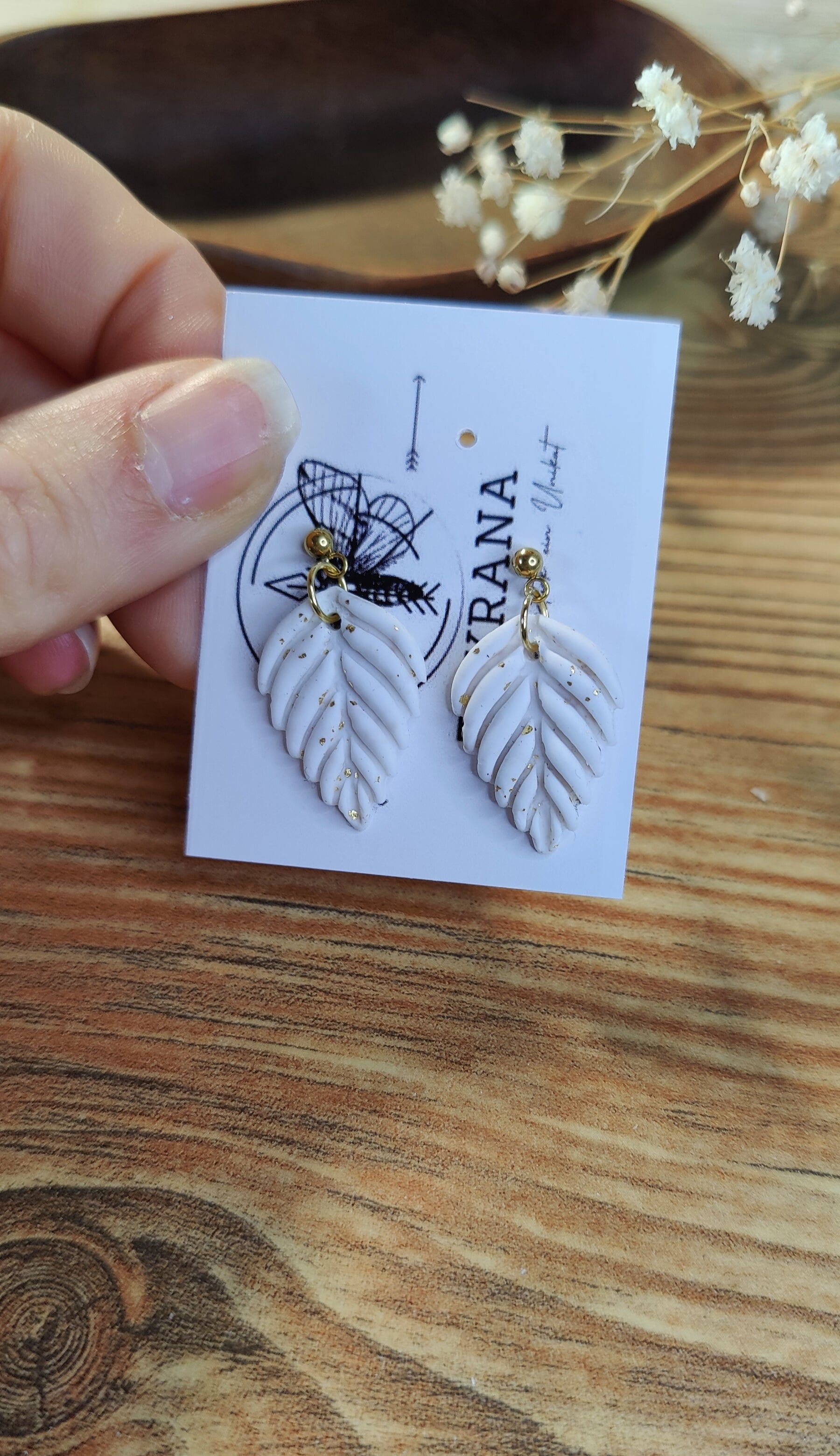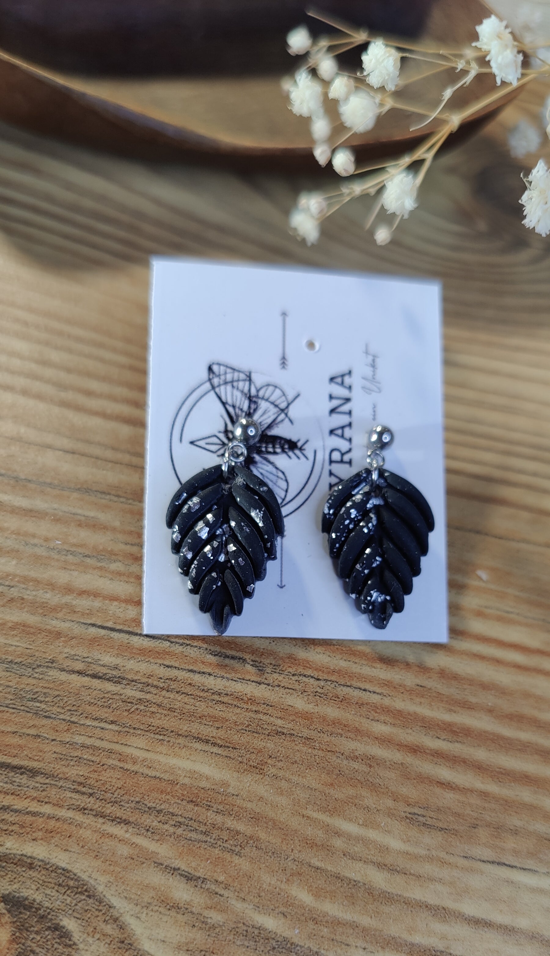 Aus hochwertigem Polymer-Ton in klassischem Schwarz oder Weiß gefertigt, sind sie in feiner Blatt-Optik modelliert – ein minimalistisches, zugleich ausdrucksstarkes Schmuckstück.
