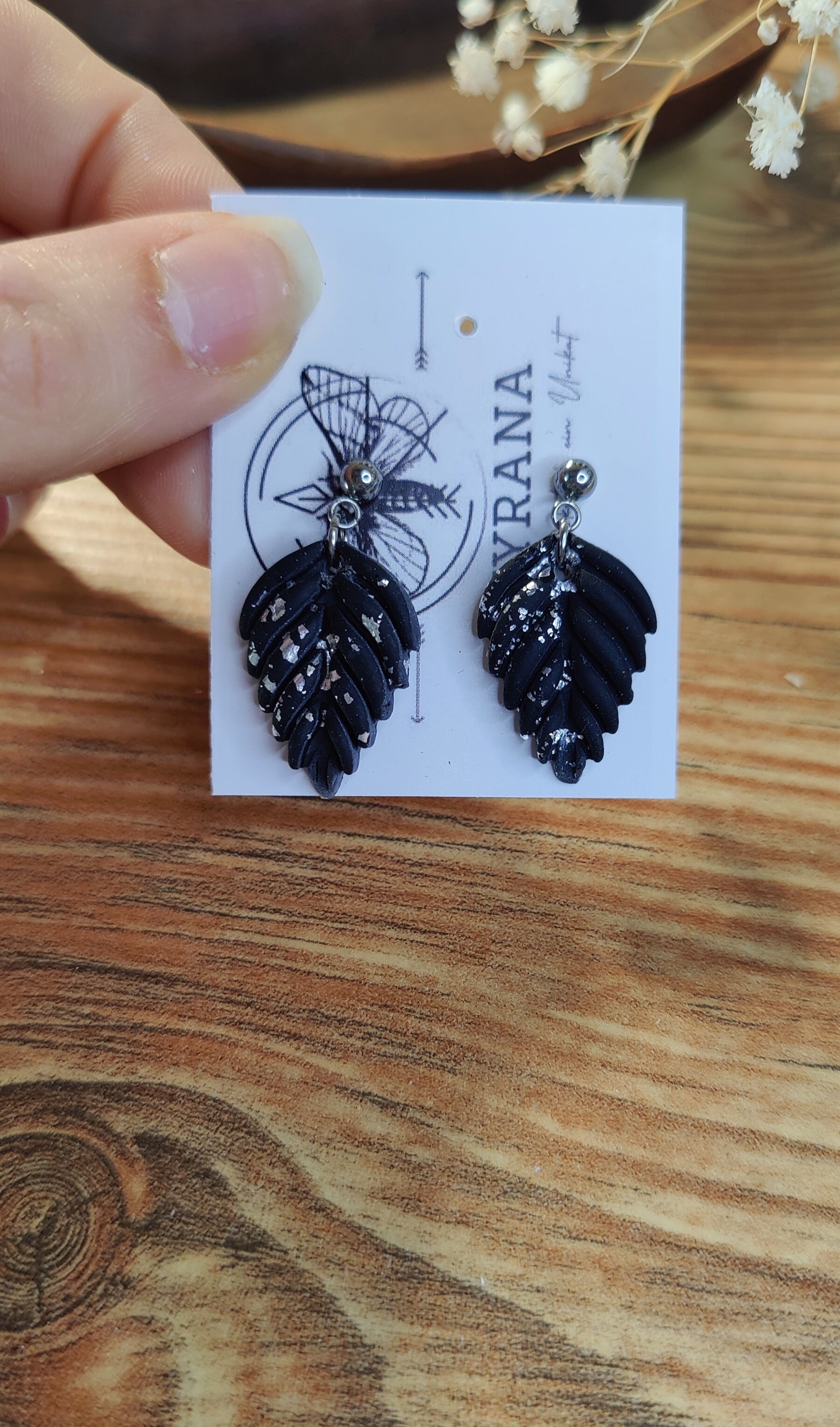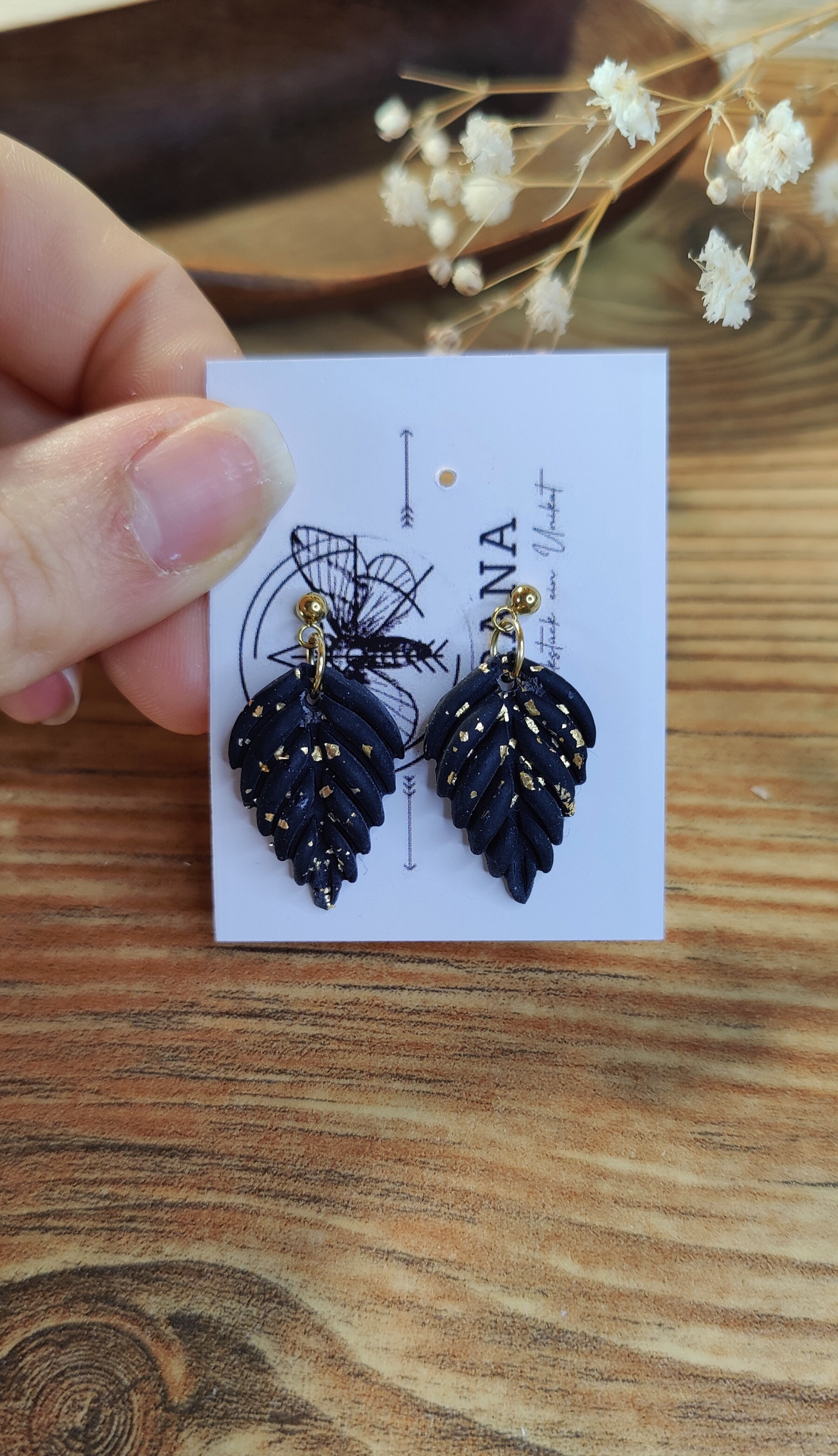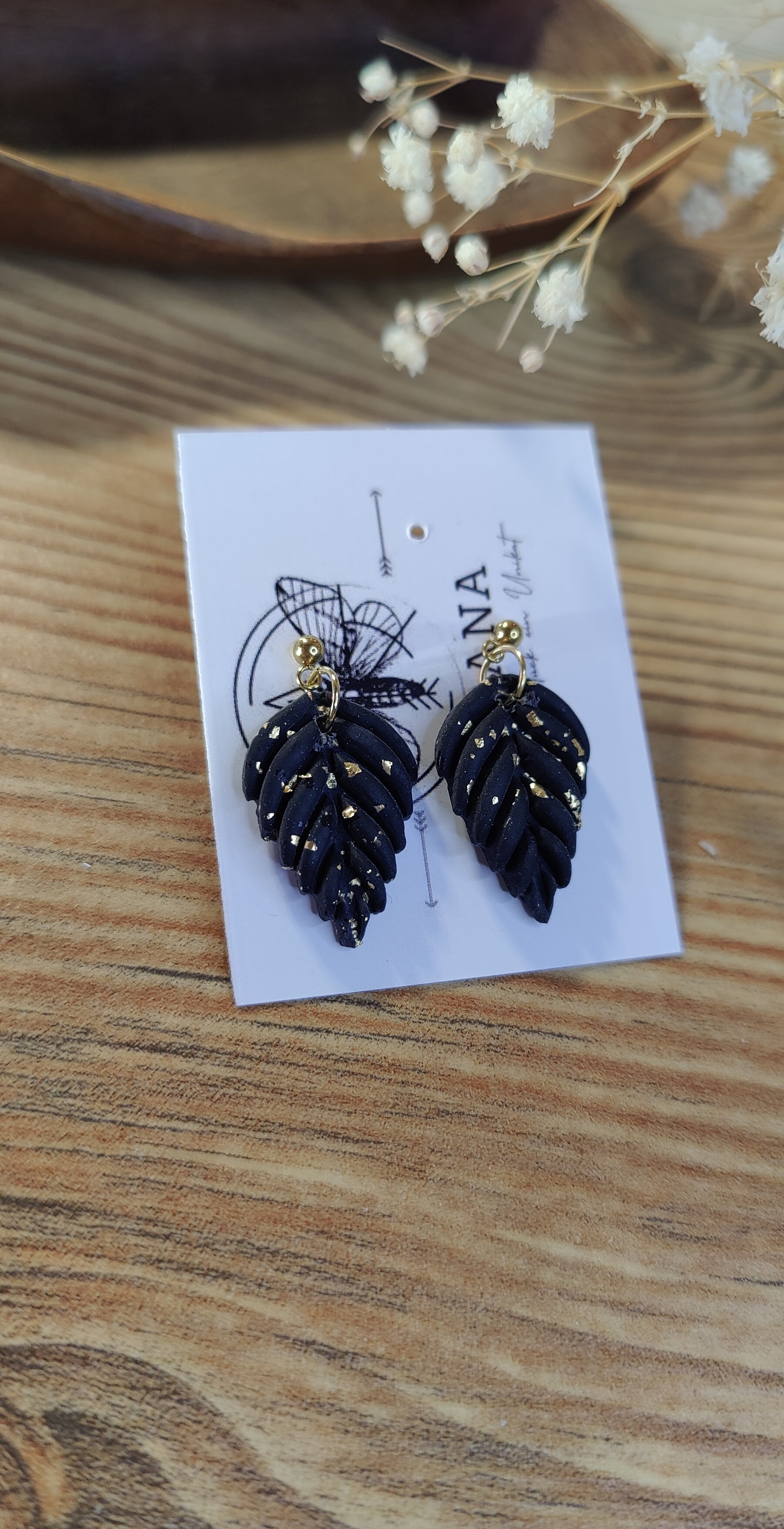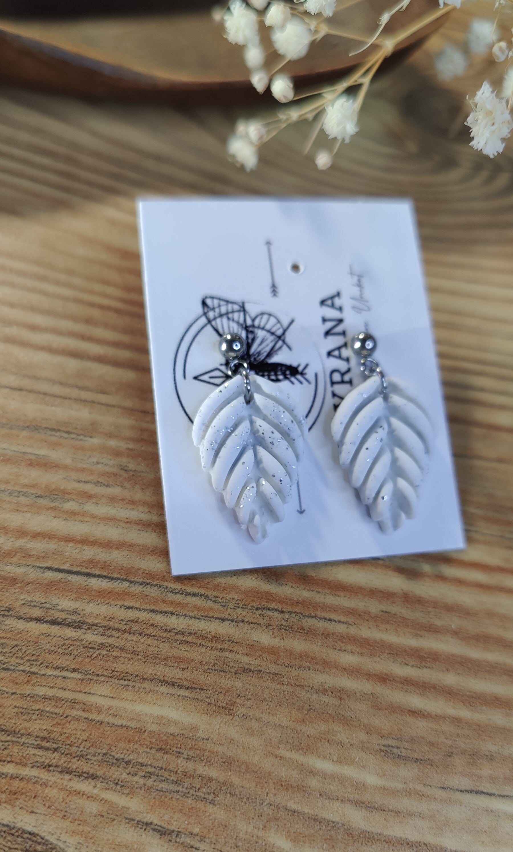 Aus hochwertigem Polymer-Ton in klassischem Schwarz oder Weiß gefertigt, sind sie in feiner Blatt-Optik modelliert – ein minimalistisches, zugleich ausdrucksstarkes Schmuckstück.