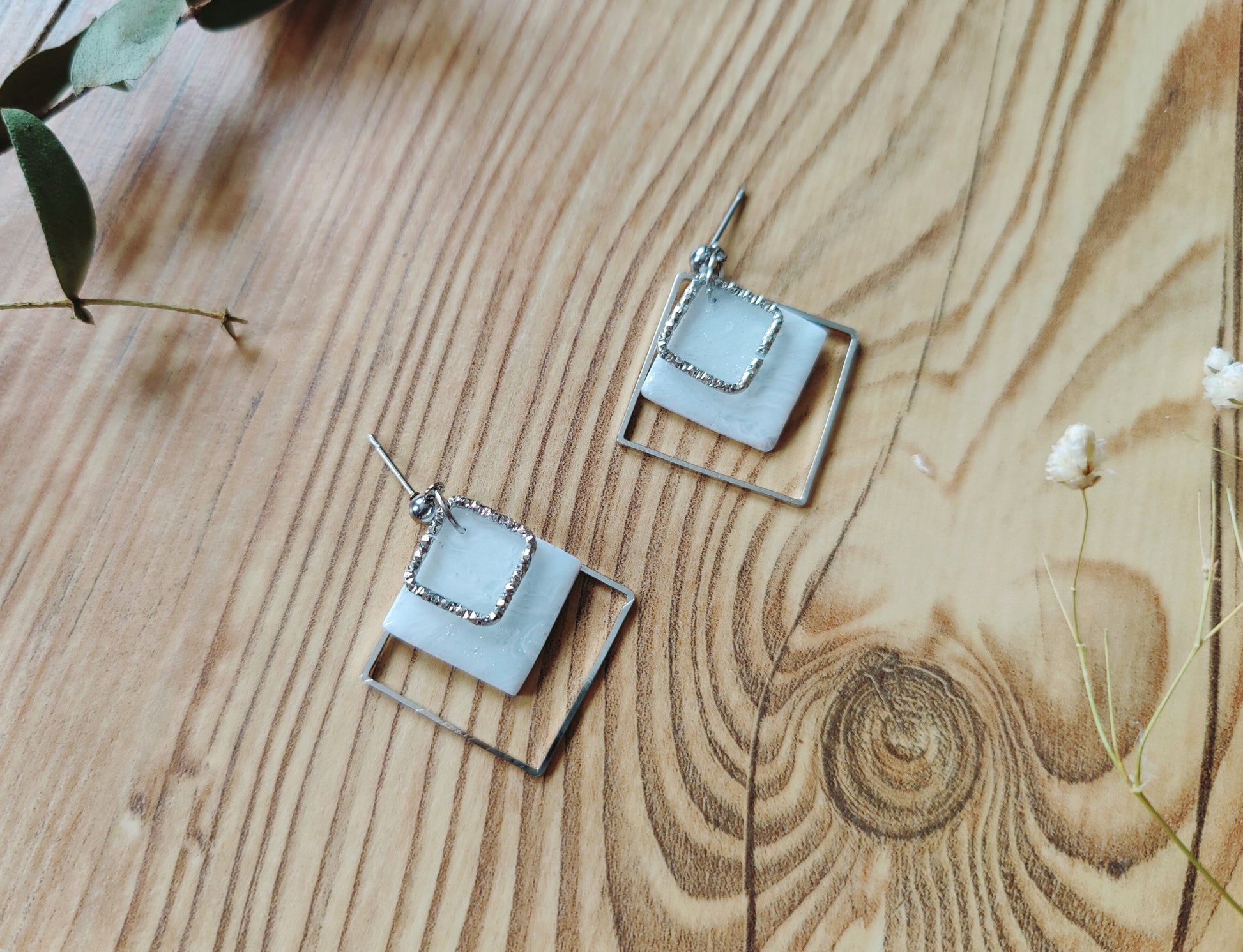 Diese eleganten Ohrstecker überzeugen durch ihr schlichtes, modernes Design. Die viereckige Form aus hochwertigem Polymer-Ton in strahlendem Weiß wird durch feine silberne Details stilvoll ergänzt. Dank ihres minimalistischen Looks passen sie perfekt zu jedem Outfit – ob lässig oder elegant.