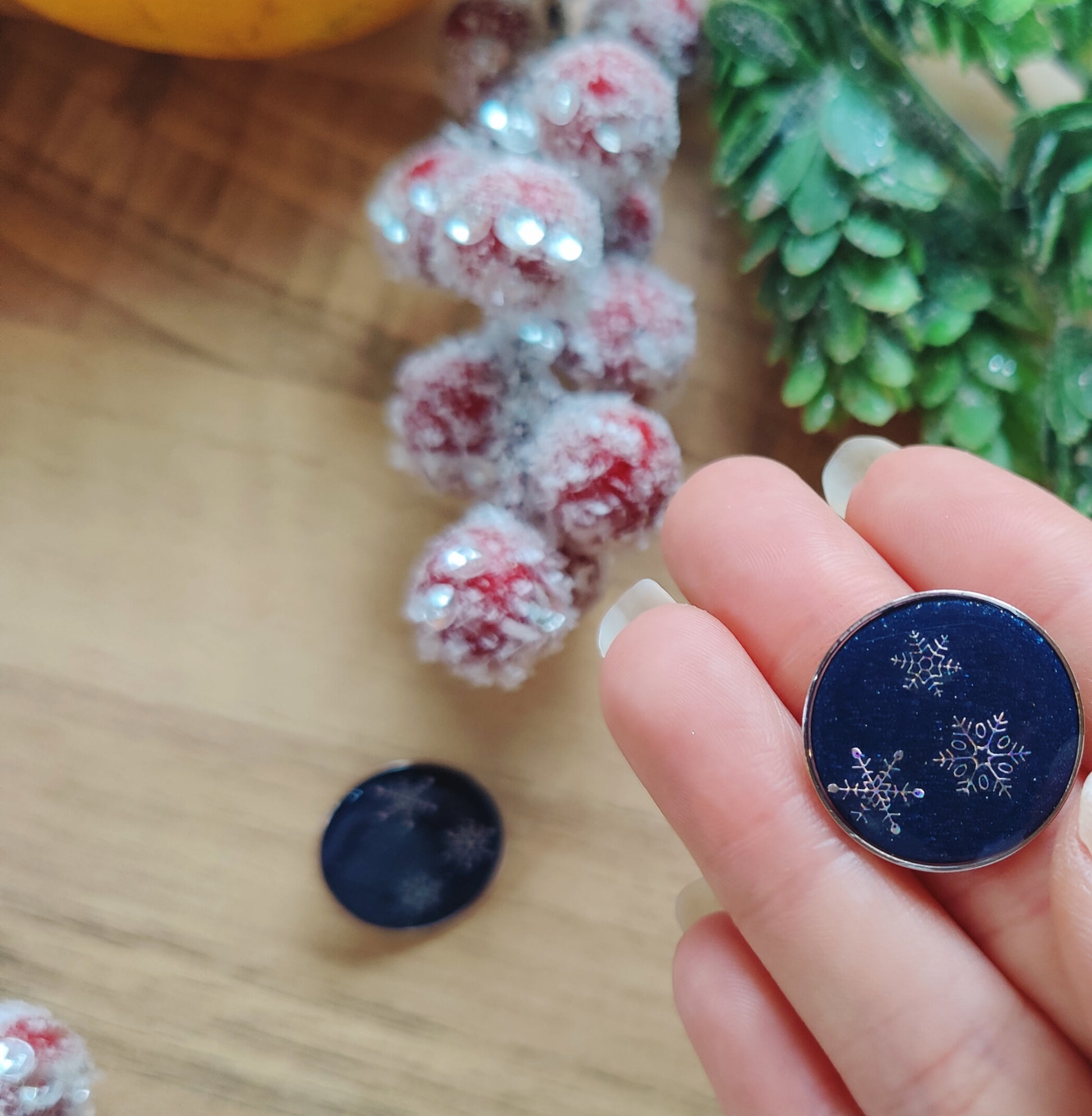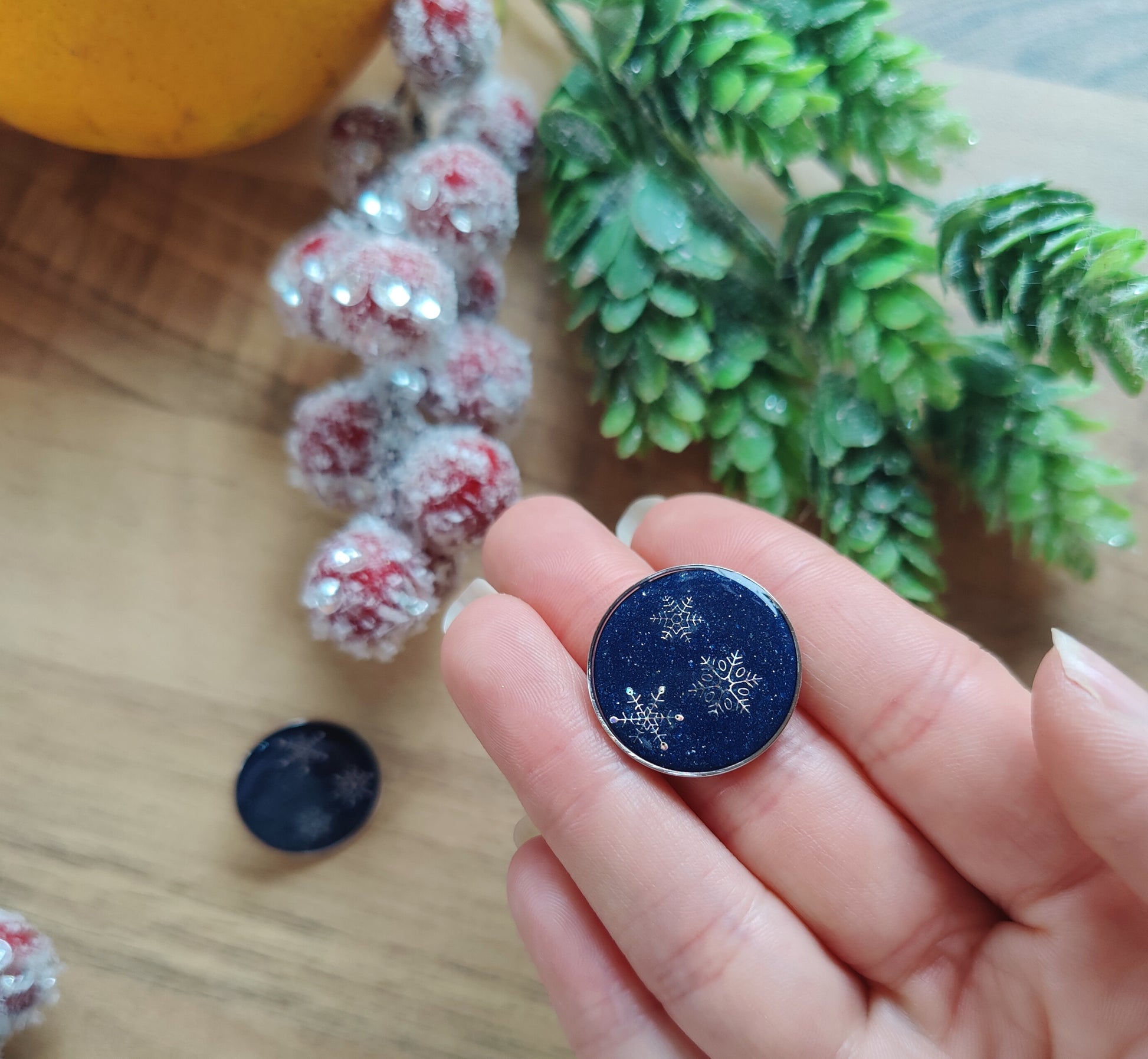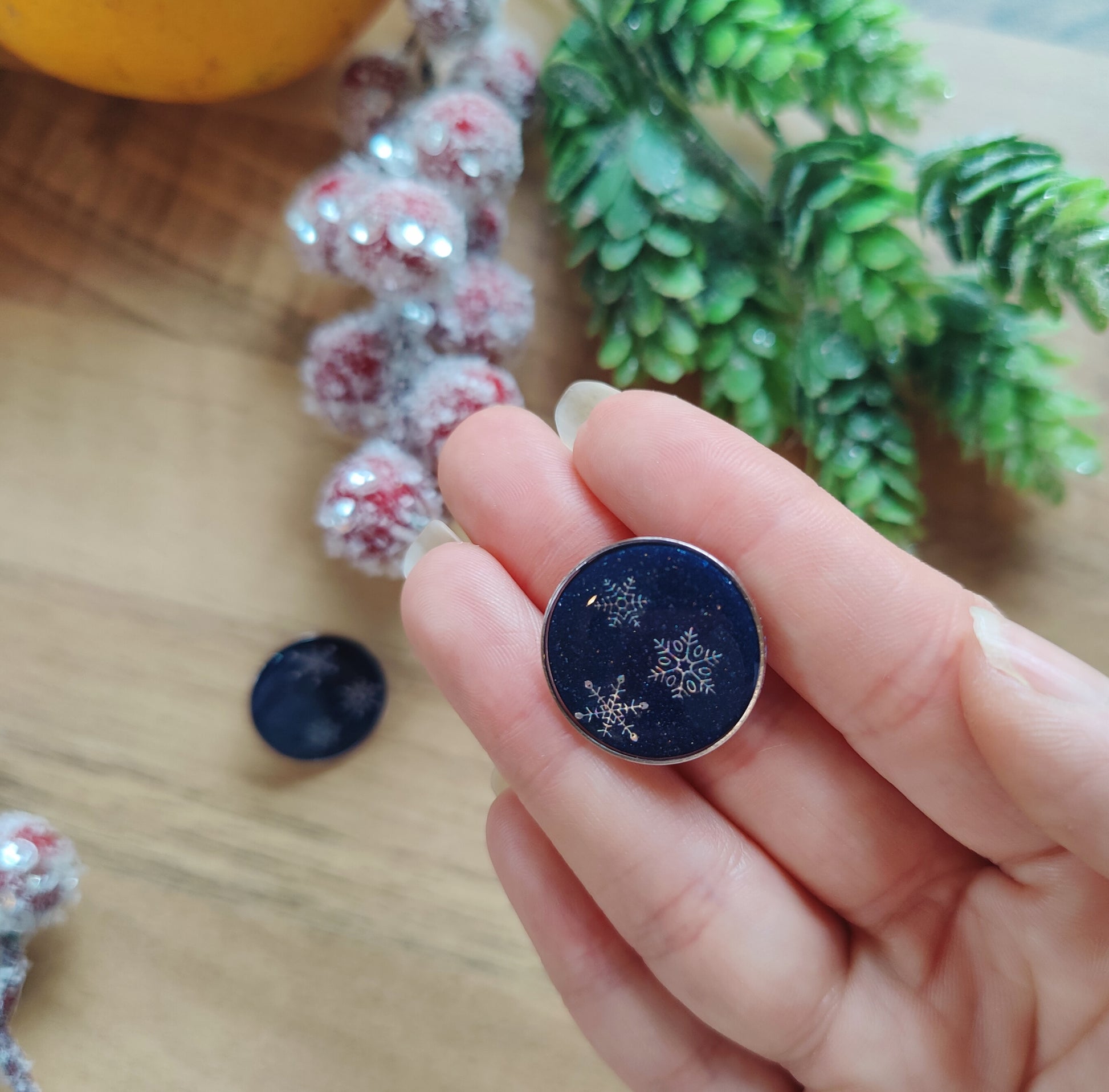 Setze ein Statement mit diesen einzigartigen, handgefertigten Ohrsteckern! Die runden Ohrringe bestehen aus hochwertigem dunkelblauem oder rotem Polymer Clay, das an den klaren Nachthimmel im Winter erinnert. Im Inneren schimmern filigrane Schneeflocken, die in glänzendem Gießharz eingefasst ist und für einen faszinierenden 3D-Effekt sorgt.