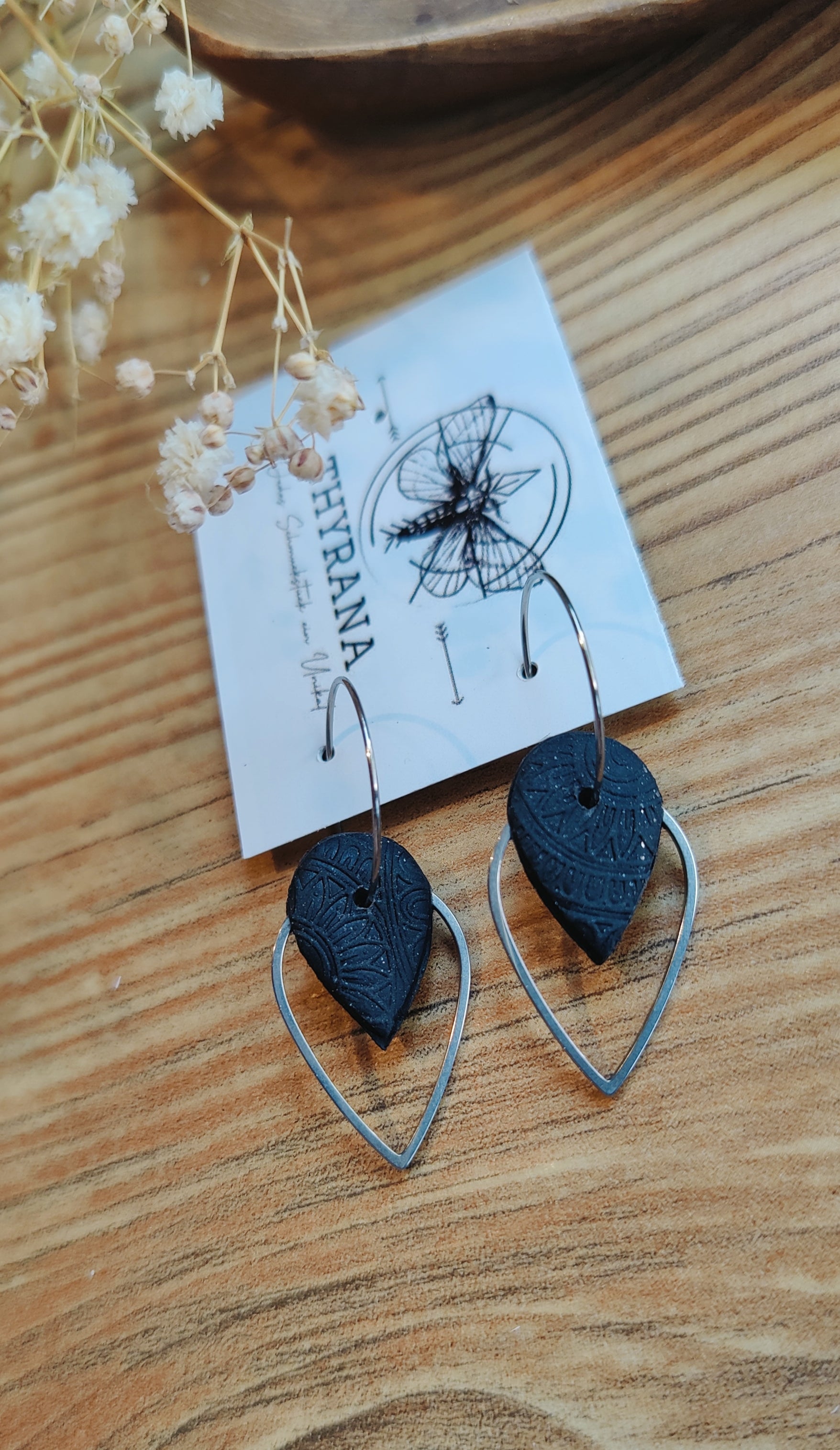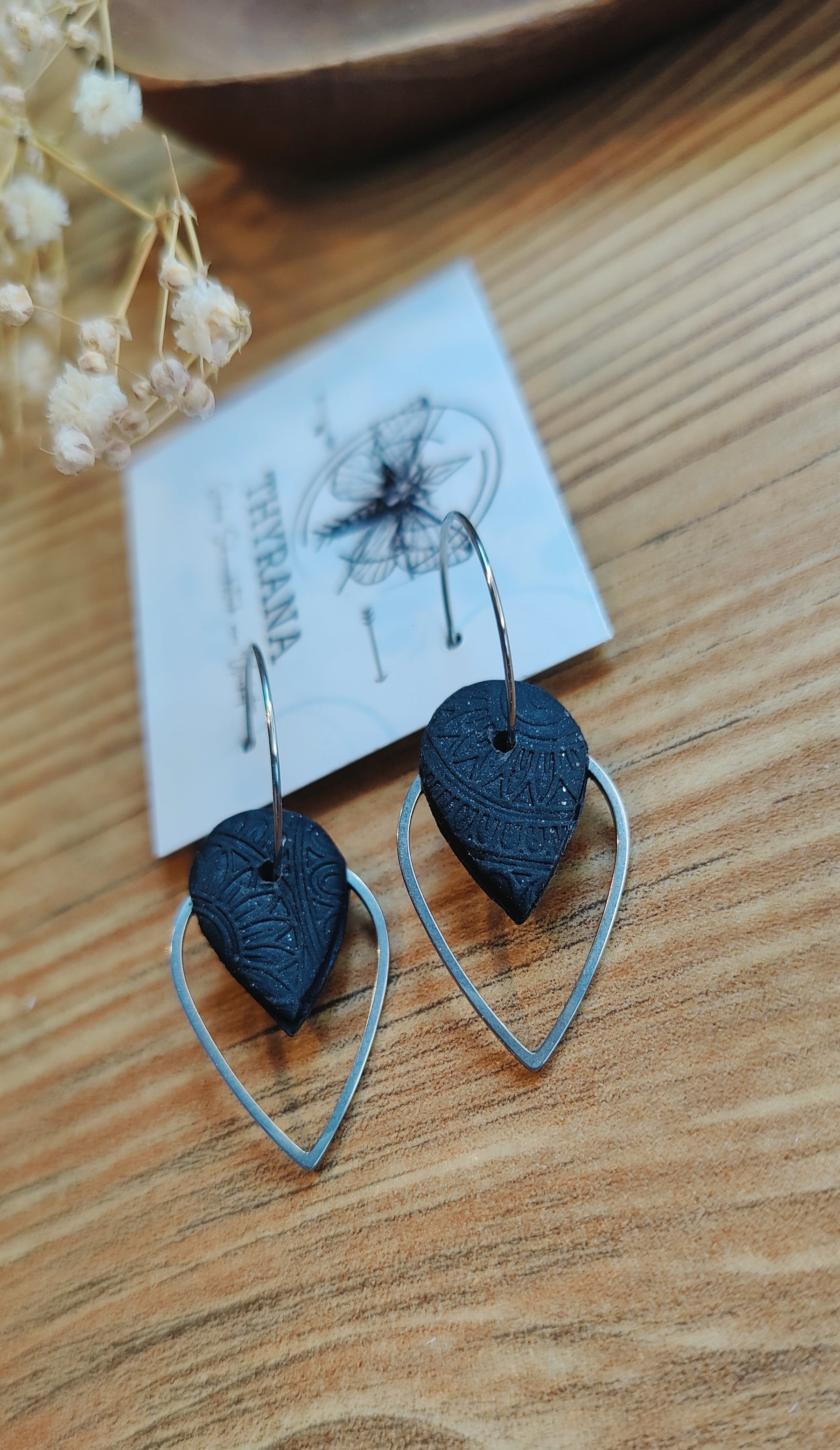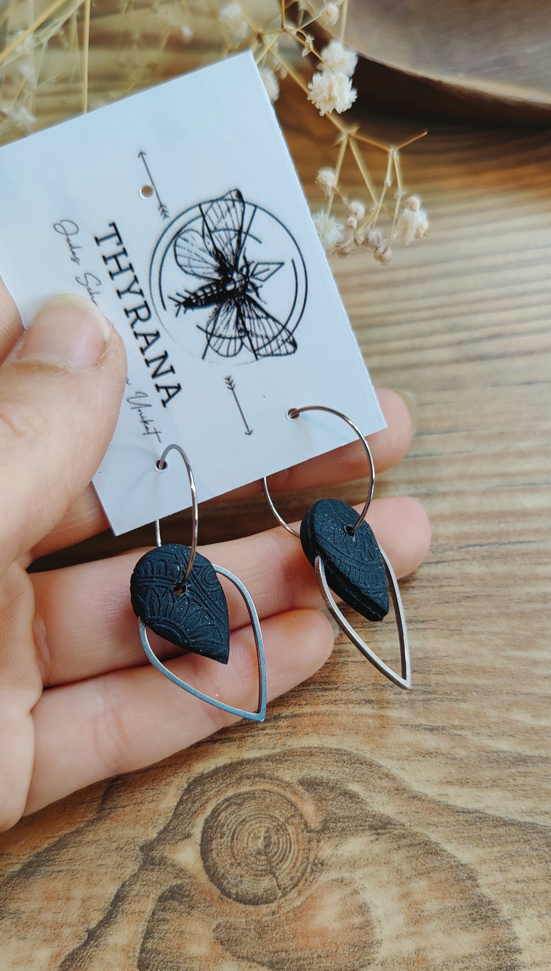 Schlichte Eleganz trifft auf spannende Struktur: Diese handgefertigten Creolen verbinden hochwertigen, nickelfreien Edelstahl mit einem tropfenförmigen Polymer-Ton-Einsatz, dessen dreidimensionales Muster faszinierende Licht- und Schatteneffekte erzeugt. Wähle zwischen tiefem Schwarz oder klassischem Weiß für deinen individuellen Look.