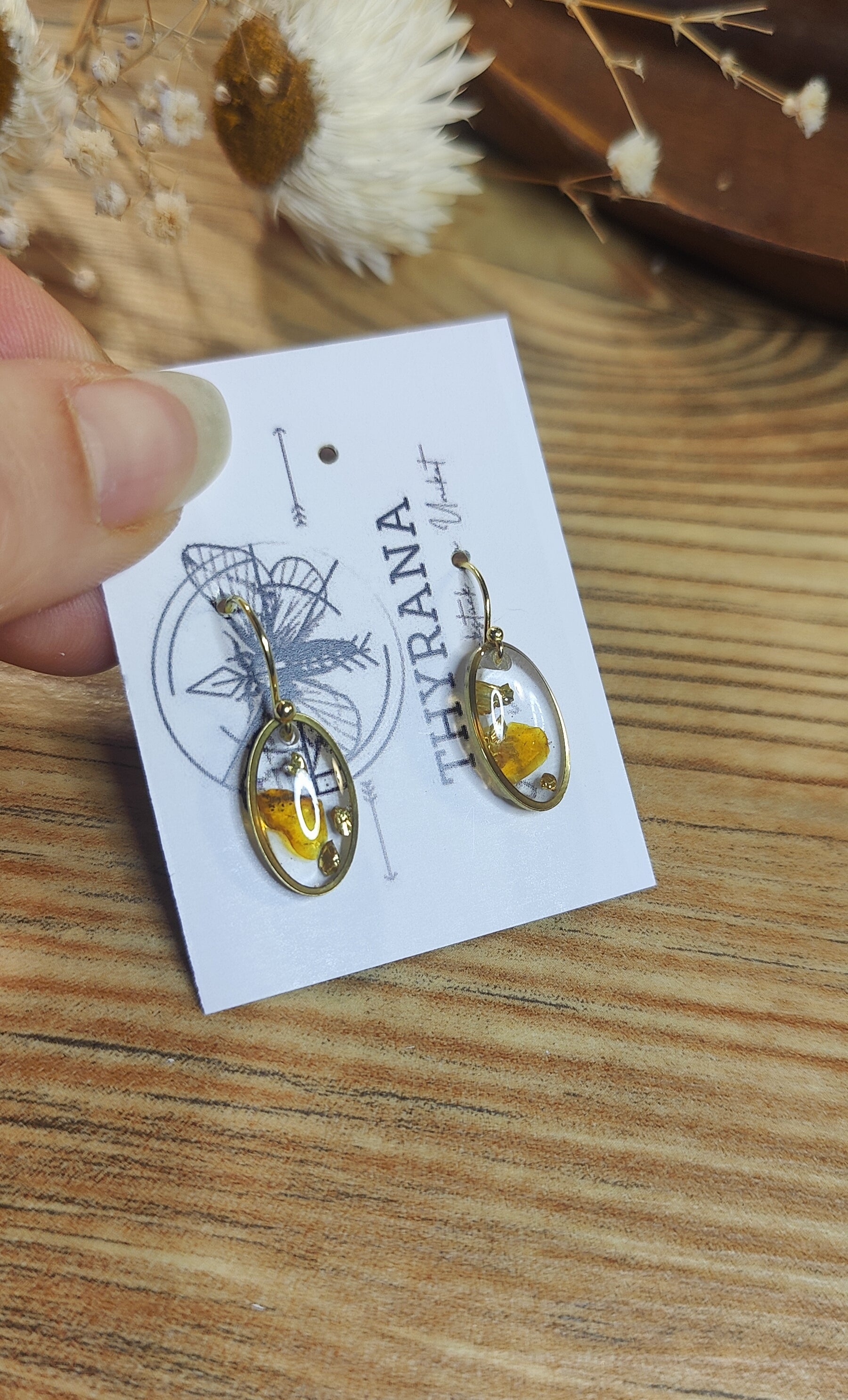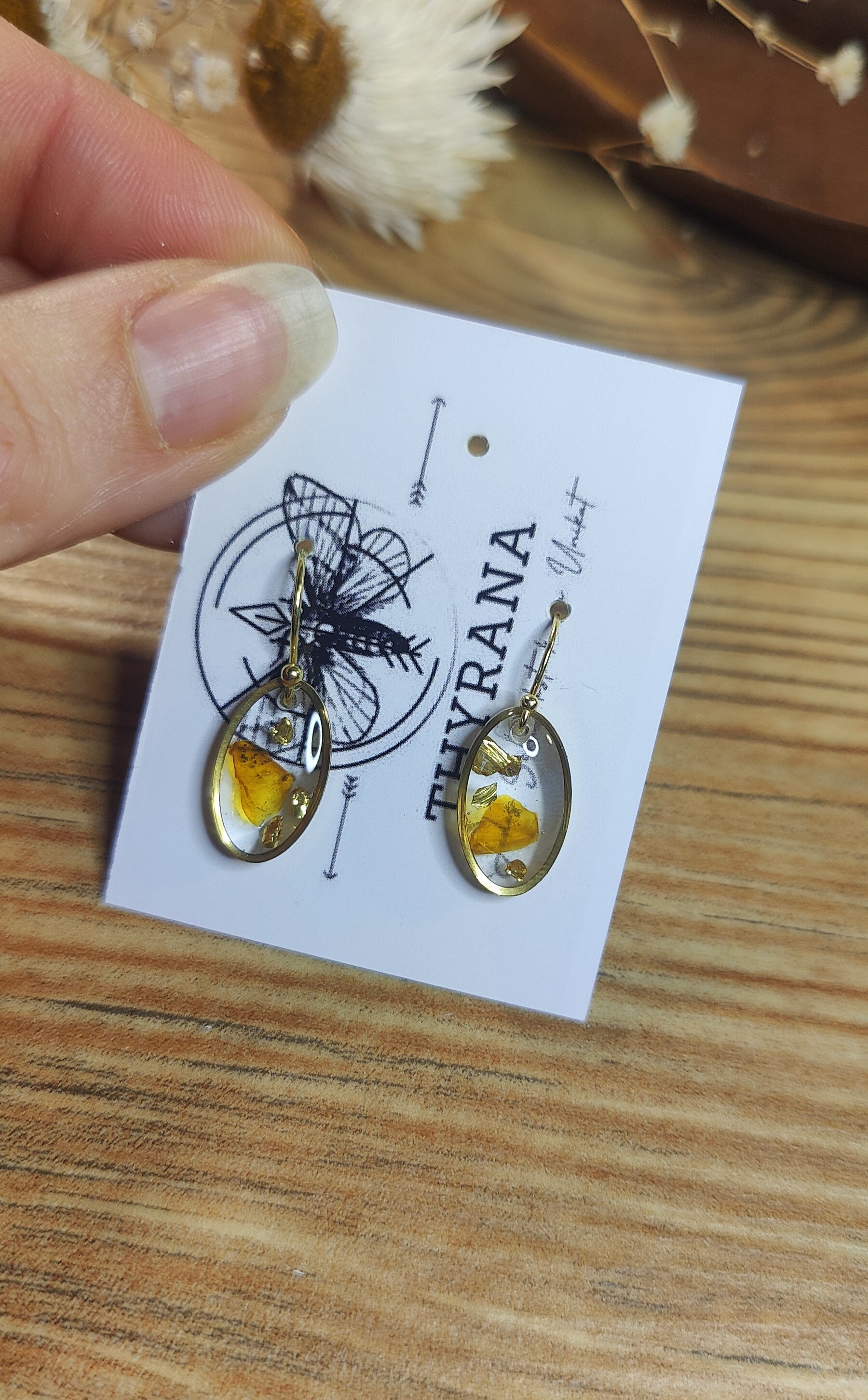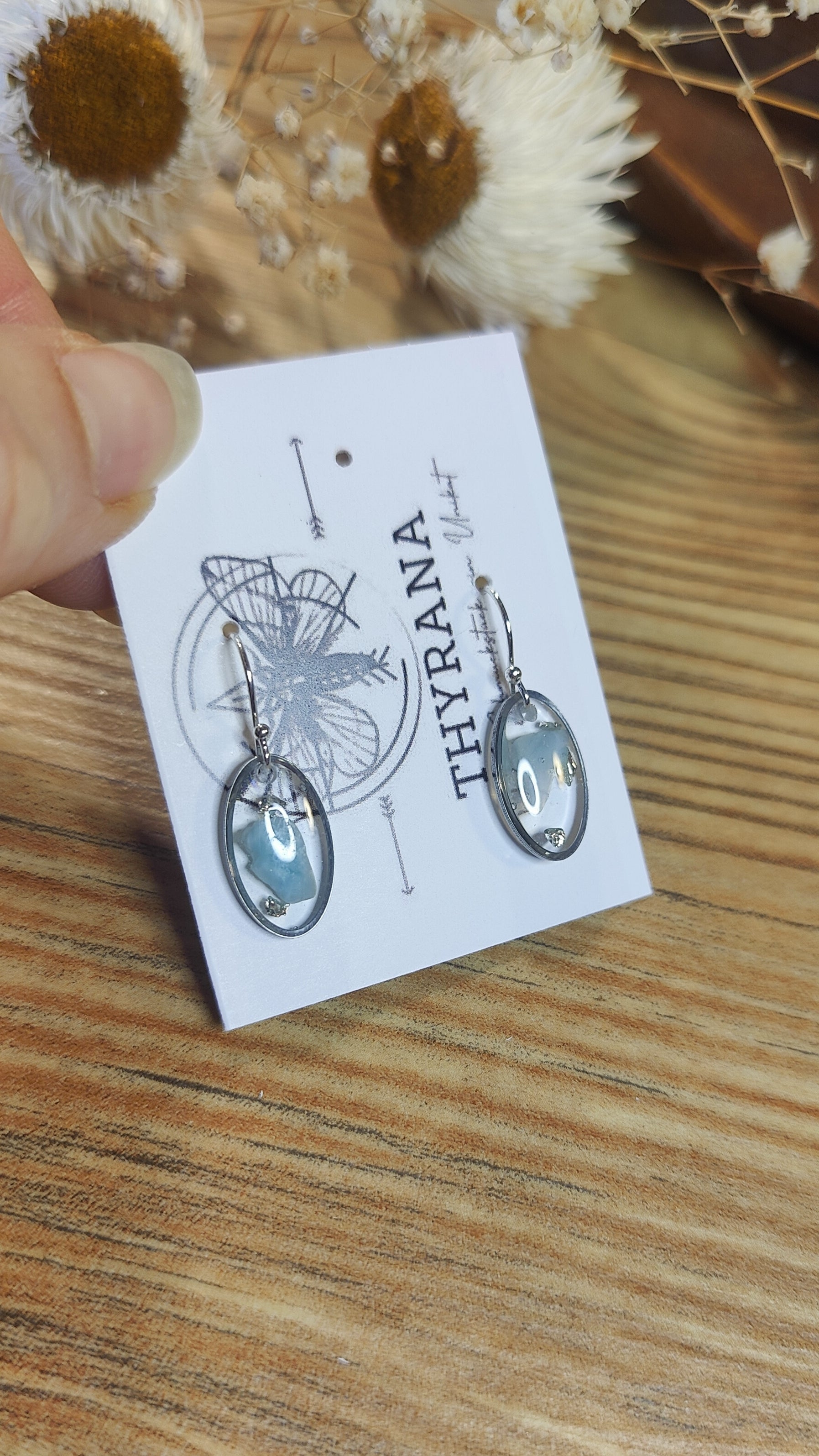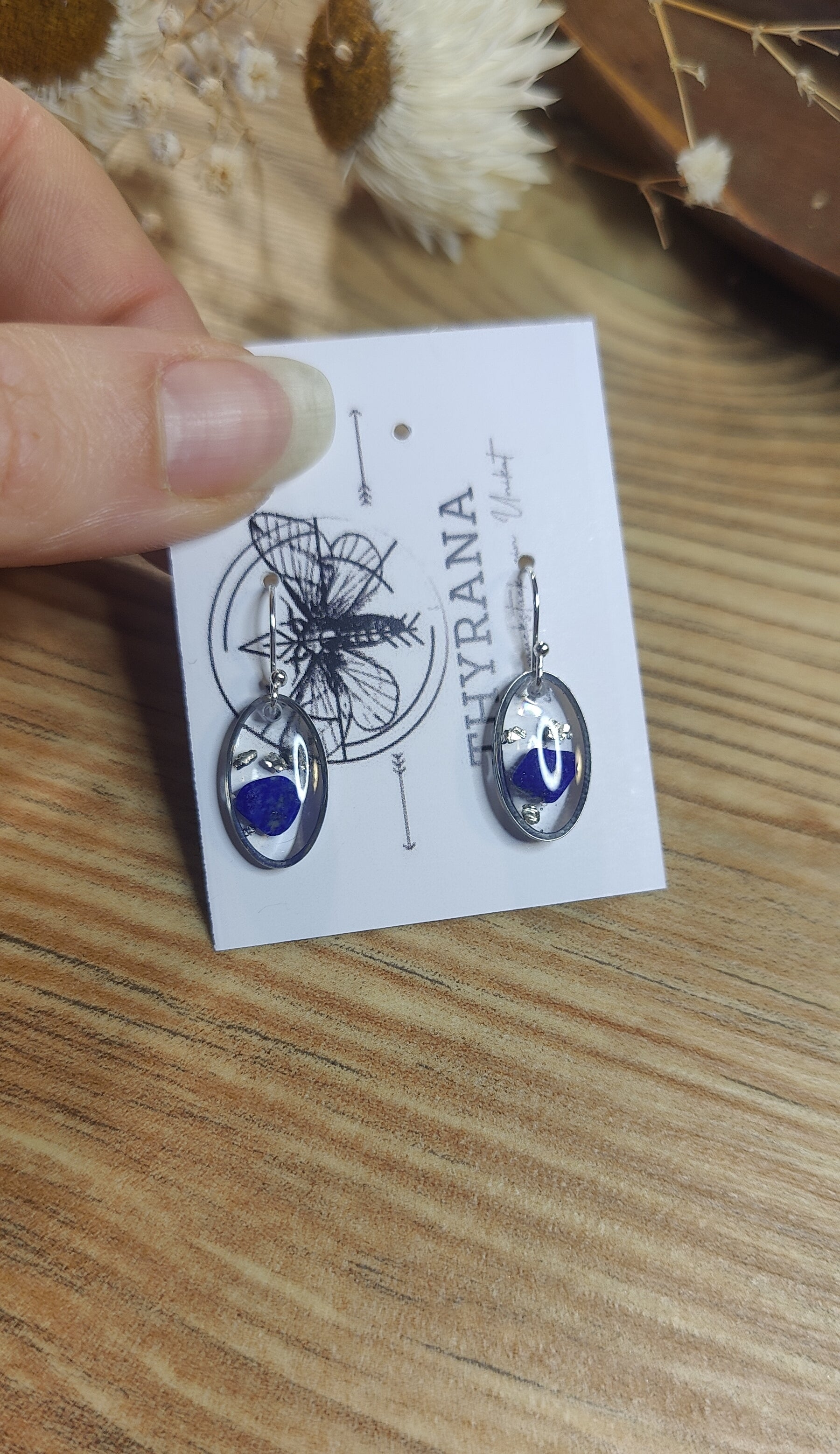 Die hochwertigen 925-Silber-Ohrhaken – chirurgischer Edelstahl– bieten optimalen Tragekomfort, selbst für empfindliche Ohren. Der moderne ovale Edelstahlrahmen umschließt ein kunstvoll gearbeitetes Harz-Inlay, in das sorgfältig ausgewählte Edelsteine eingegossen sind.