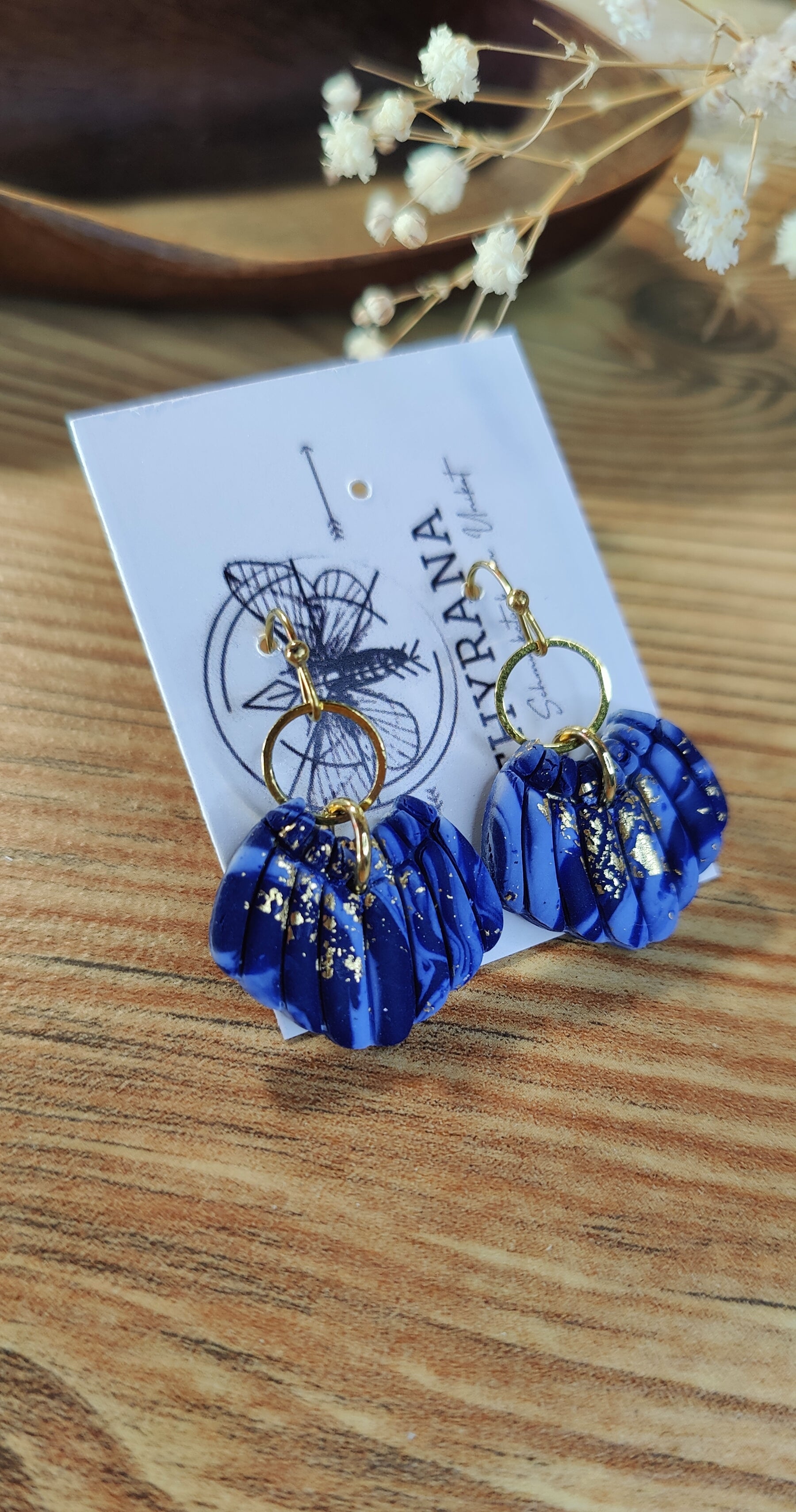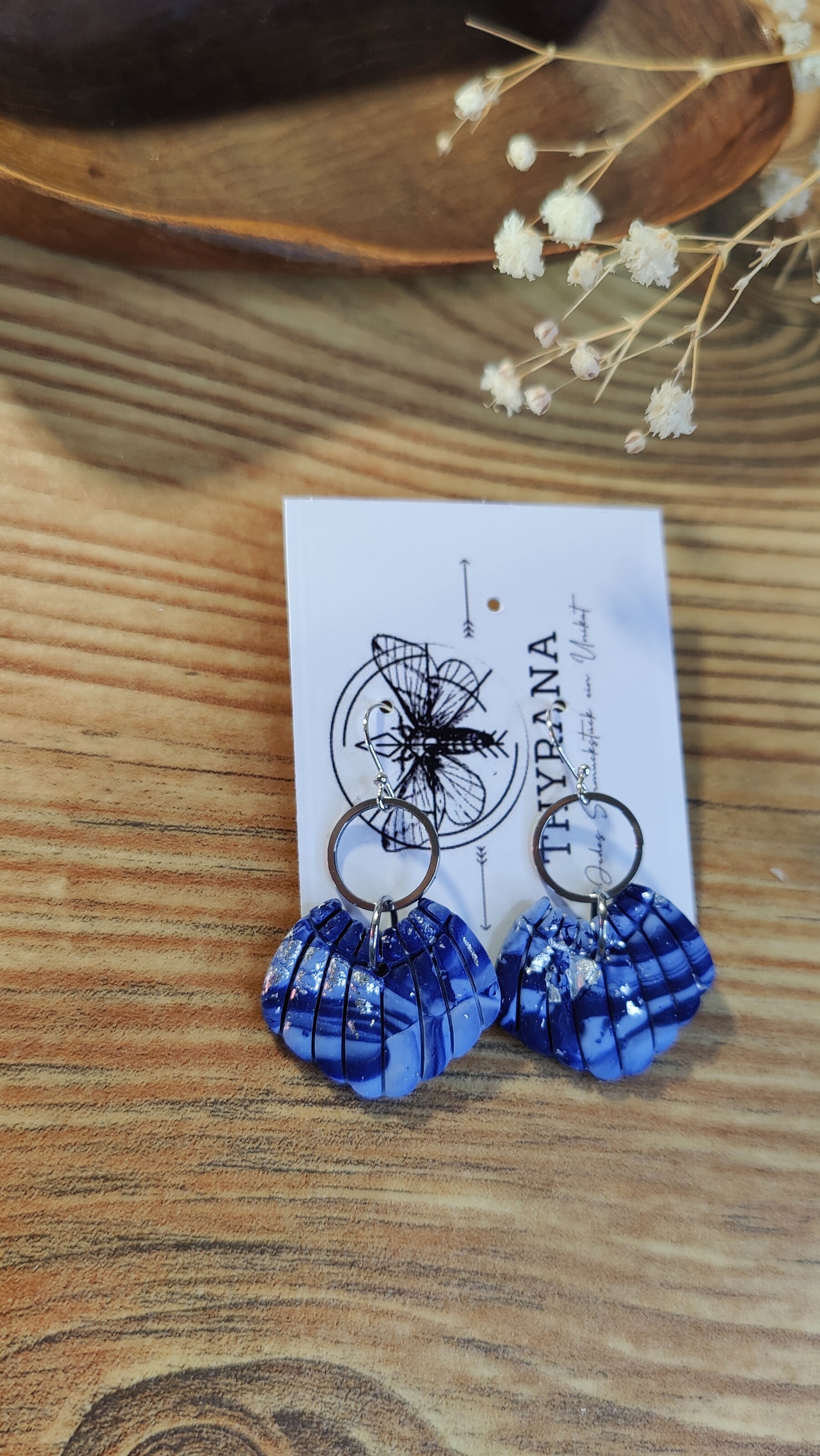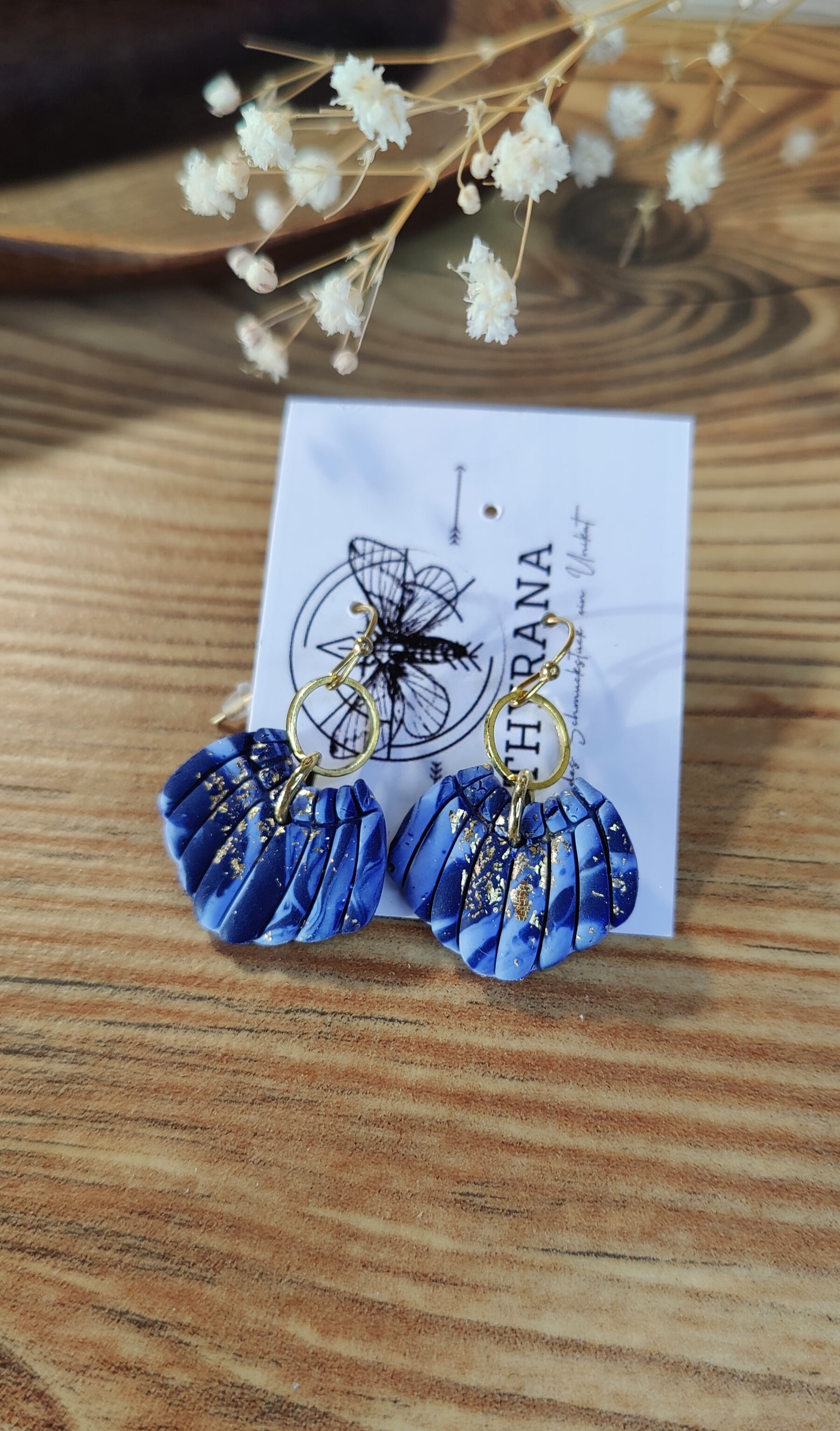 Gefertigt aus mattem blauen Polymer Clay und veredelt mit feinen gold- oder silberfarbenen Partikeln, entsteht ein dezentes, edles Funkeln. Der stabile Ring aus Edelstahl wird ergänzt durch Ohrhaken aus wahlweise 925er Silber oder 316er chirurgischem Edelstahl mit 18k Vergoldung – für hohen Tragekomfort und langlebige Qualität.
