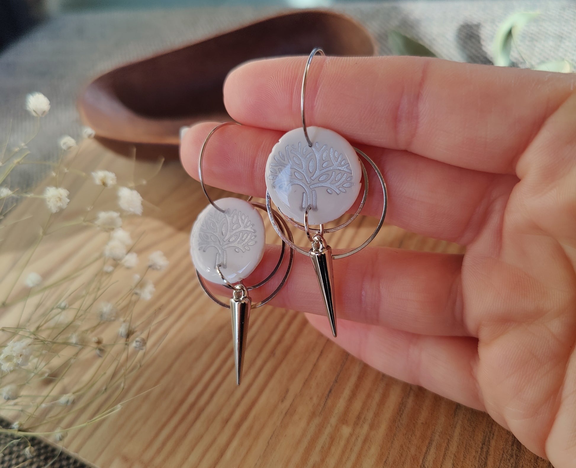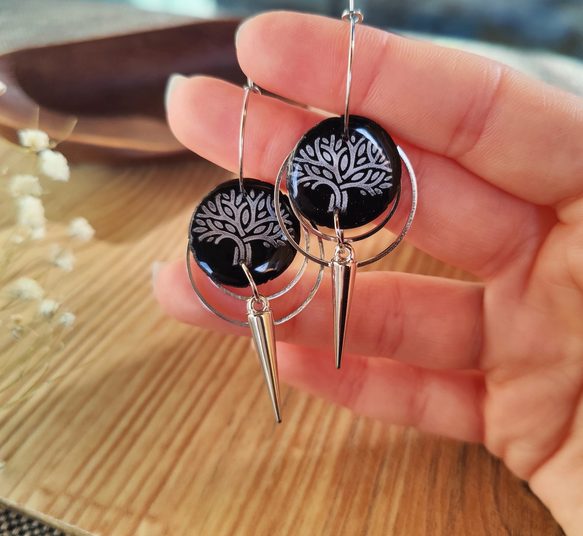 Diese einzigartigen Creolen sind ein echter Blickfang und ein Symbol für Wachstum, Kraft und Verbundenheit. In liebevoller Handarbeit gefertigt, zeigt jedes Paar das filigrane Motiv des Lebensbaums, kunstvoll eingebettet und mit hochwertigem Gießharz versiegelt.