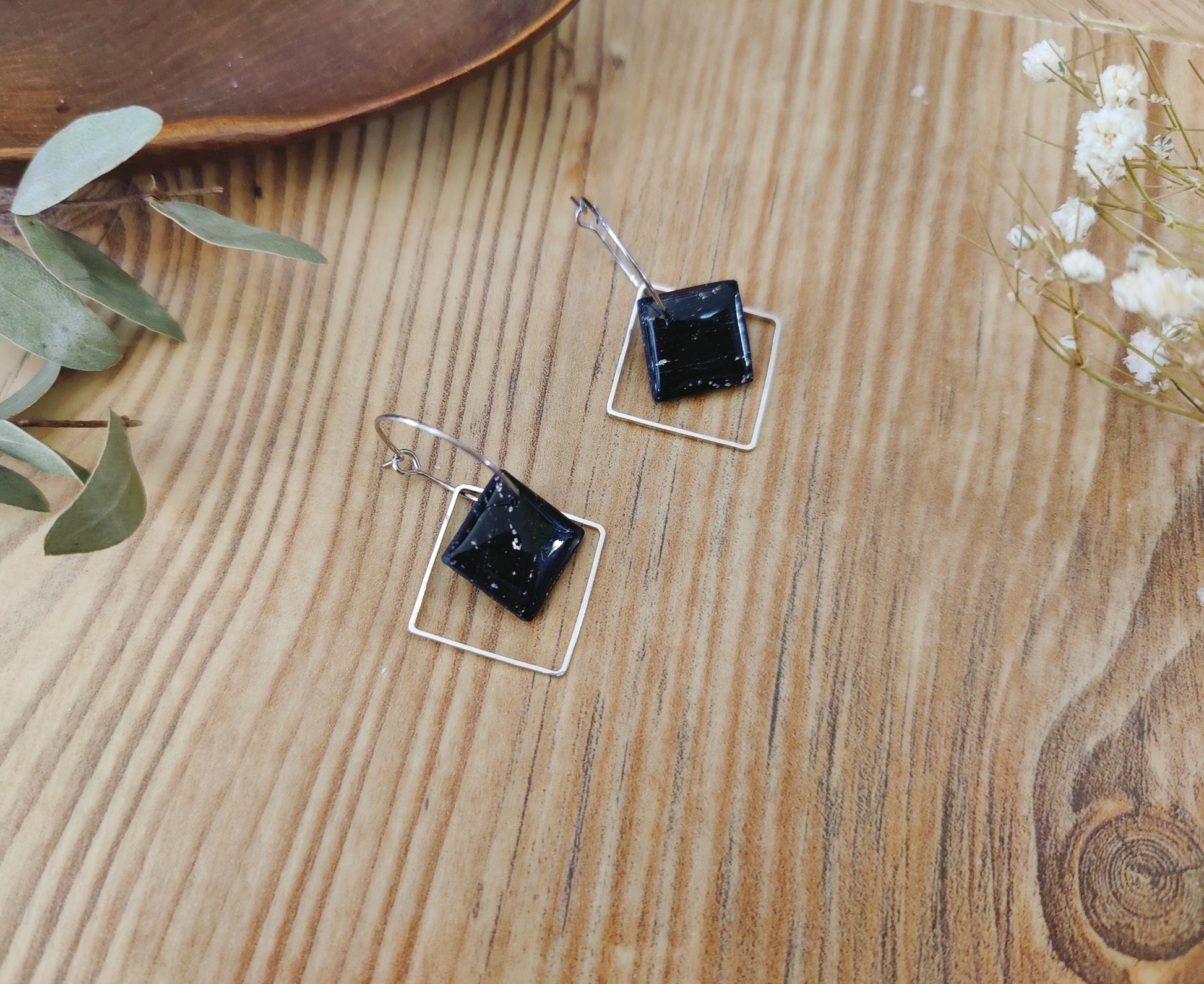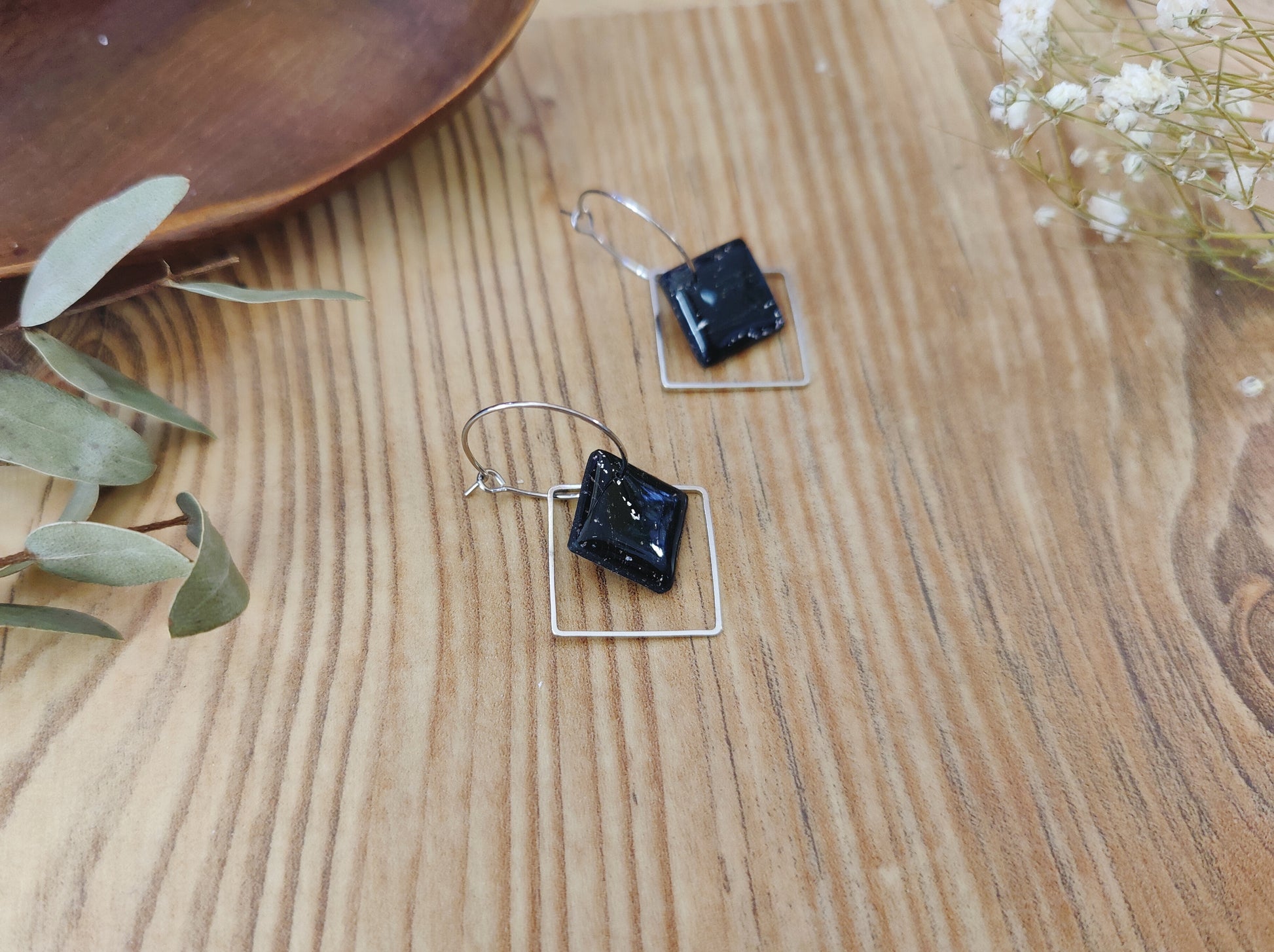 Diese eleganten Creolen aus hochwertigem Polymer-Ton sind ein stilvolles Accessoire für jeden Anlass. Die Kombination aus tiefem Schwarz und edlen silber Akzenten verleiht ihnen eine moderne und dennoch zeitlose Optik. Die weißgolden Creolen erinnern an einen Edelstein und und wirken dadurch schlicht und sehr edel.