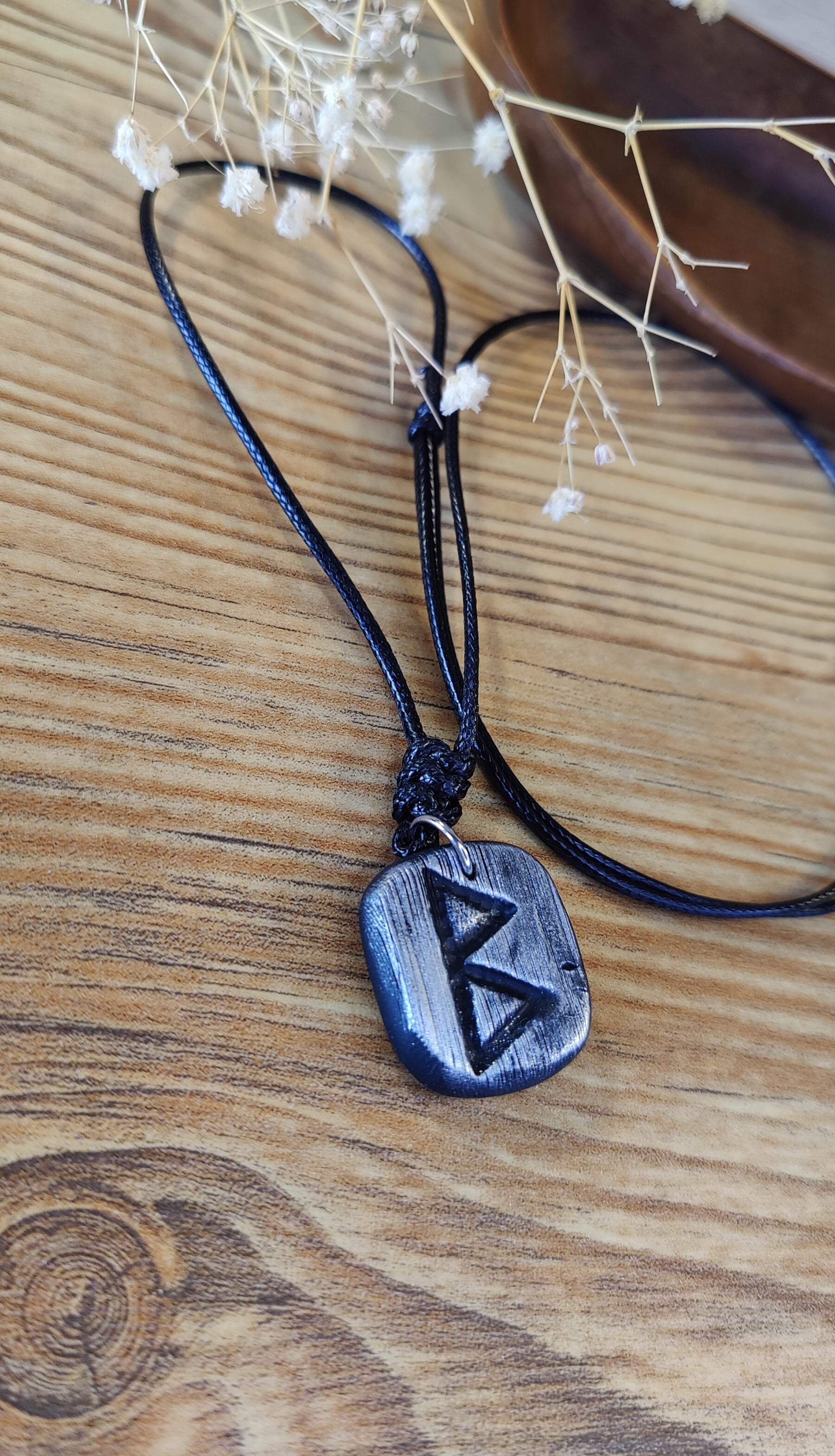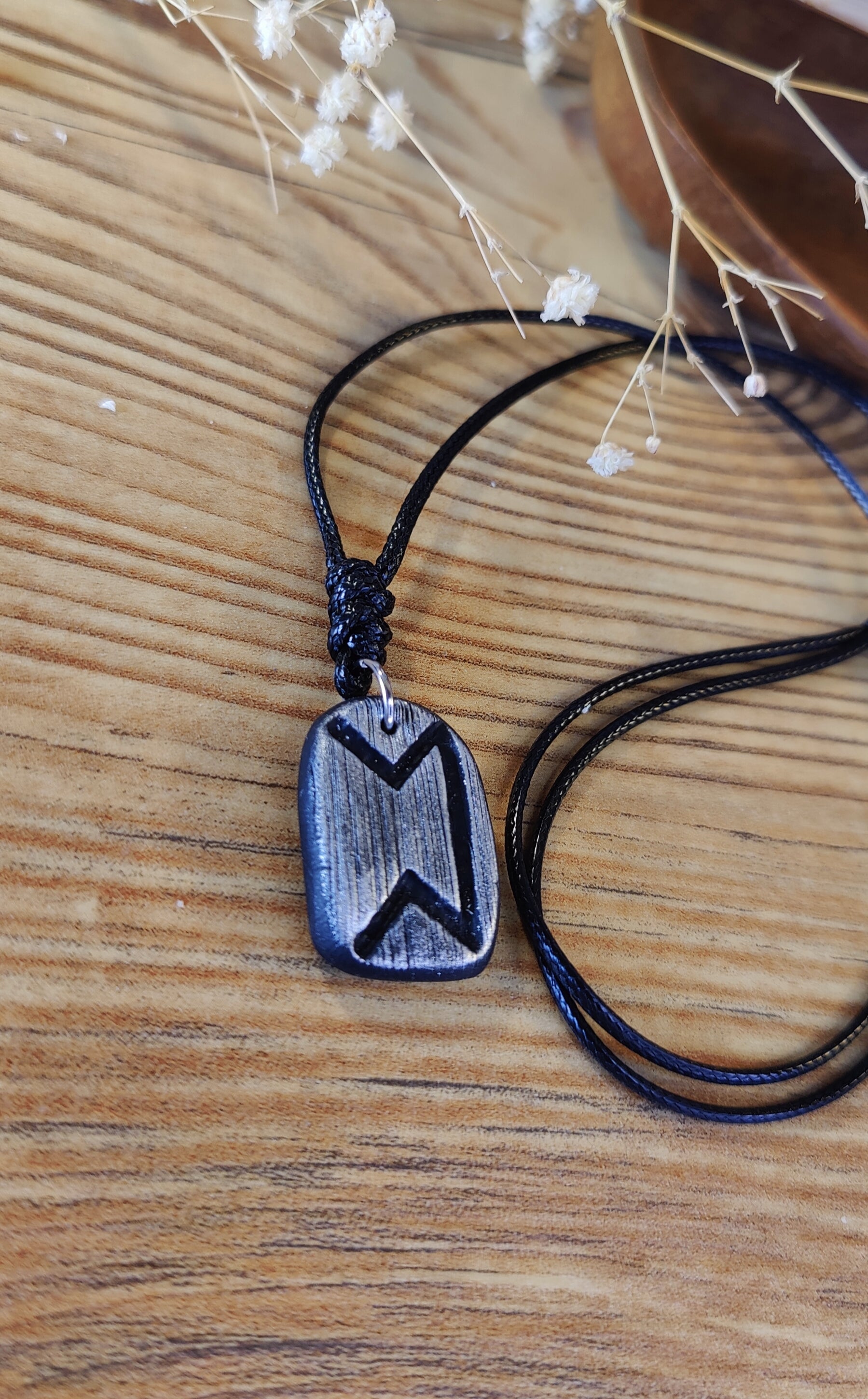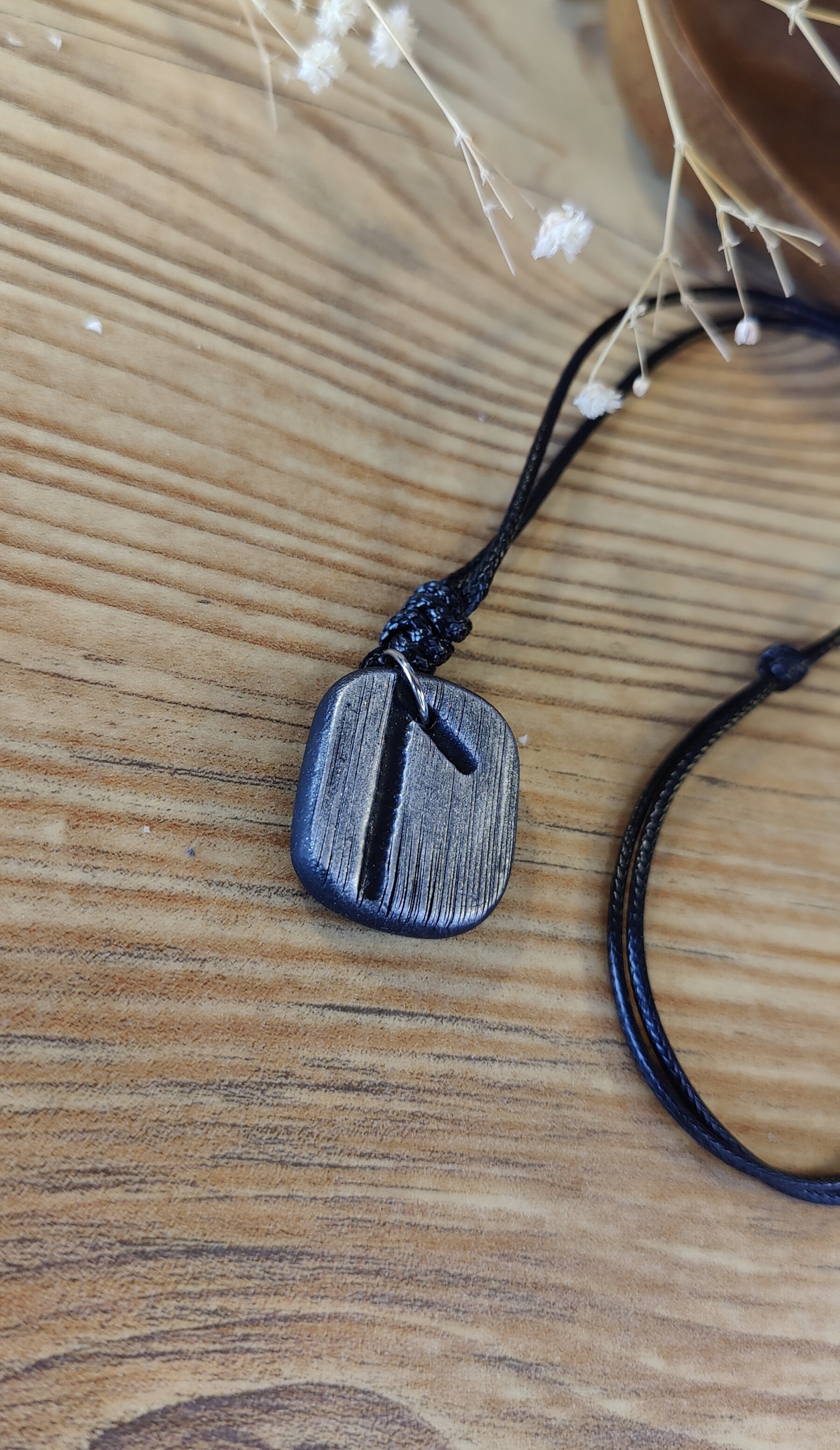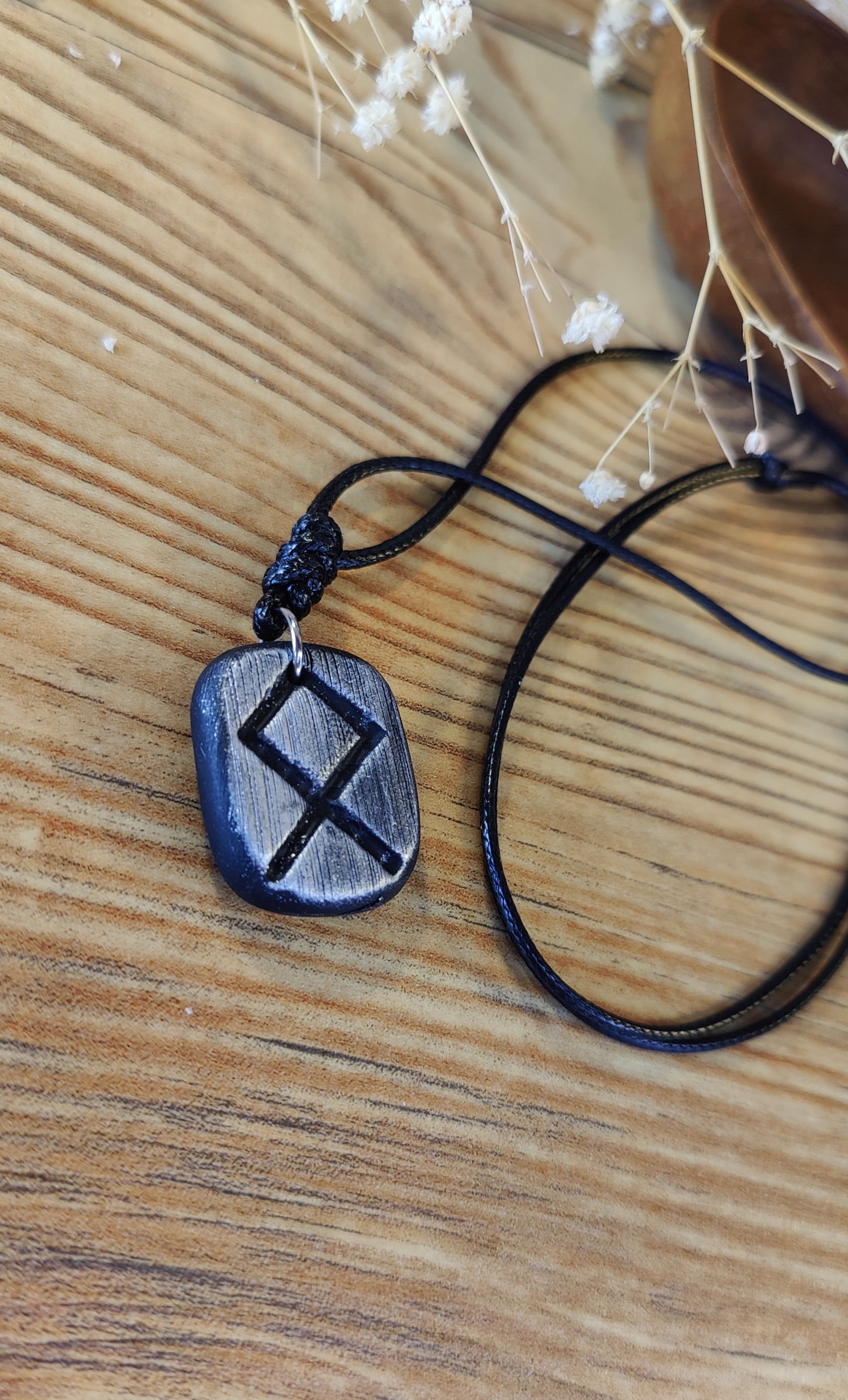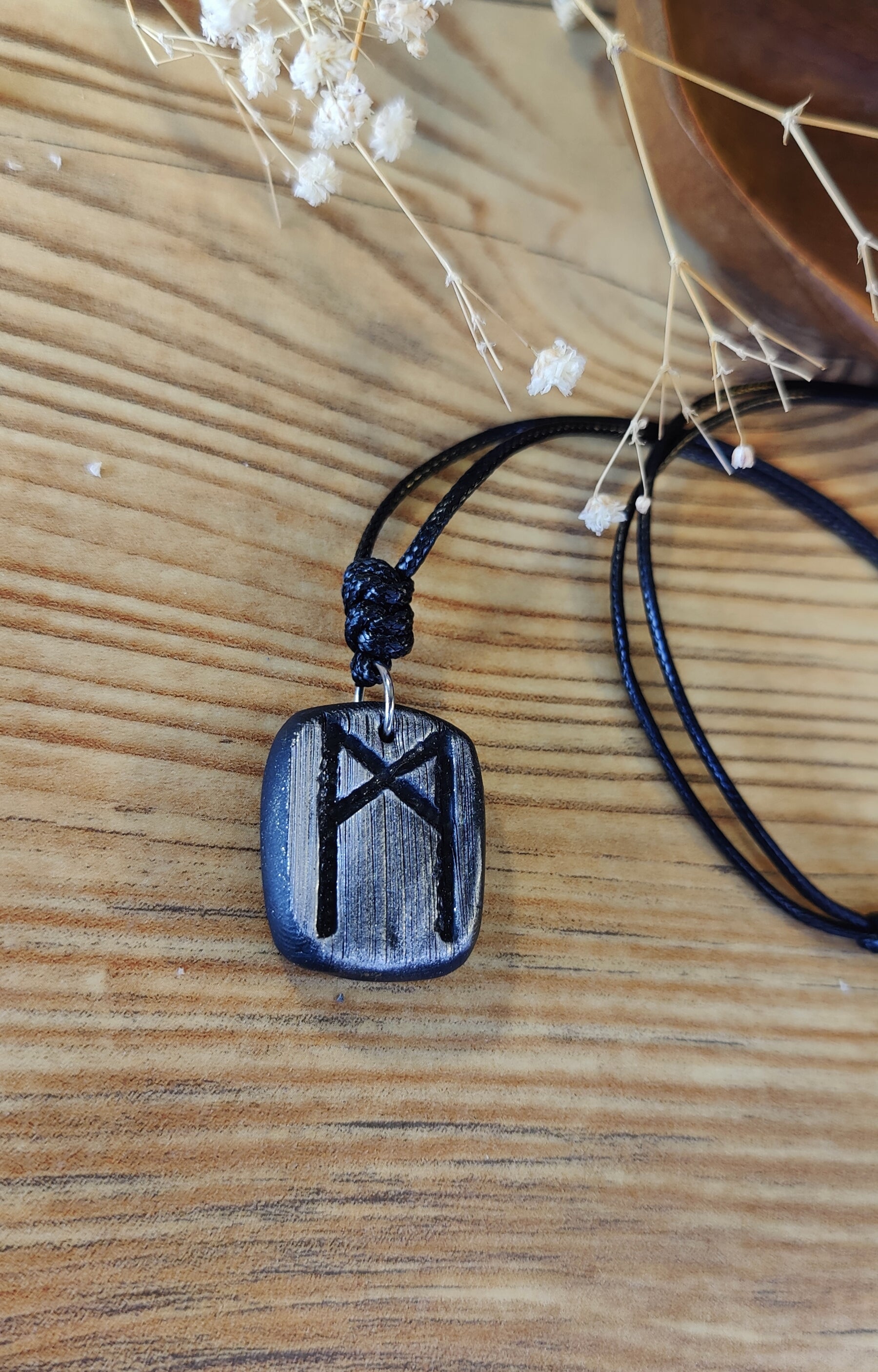 Diese einzigartige Runen-Kette verbindet traditionelle Symbolkraft mit moderner Handwerkskunst. Jeder Anhänger wird in liebevoller Handarbeit aus hochwertigem Polymer-Ton modelliert und ist in Schwarz, Silber oder Gold erhältlich. Durch sorgfältiges Formen und Gestalten erhält jedes Stück seine individuelle, leicht organische Struktur – ein echtes Unikat.