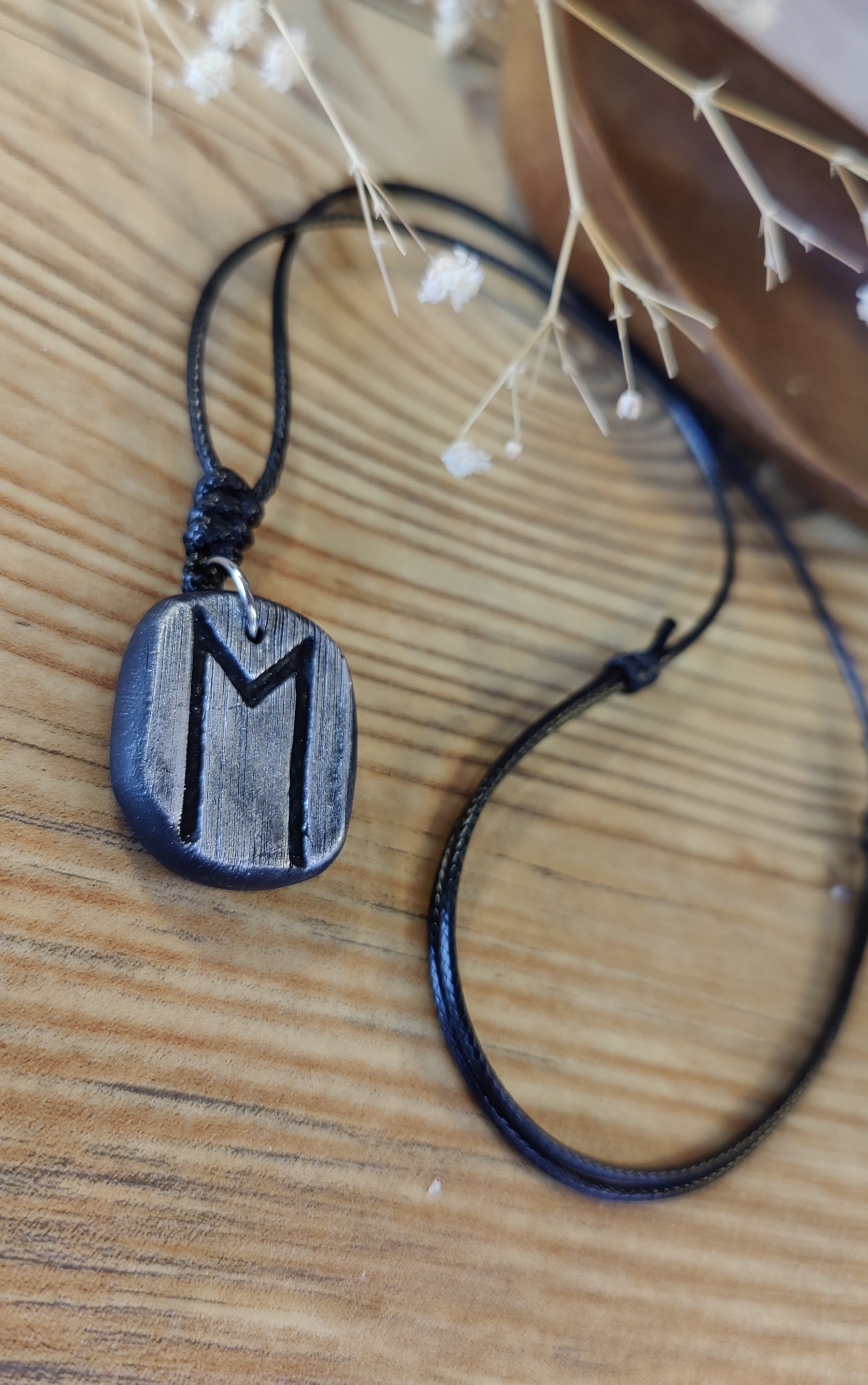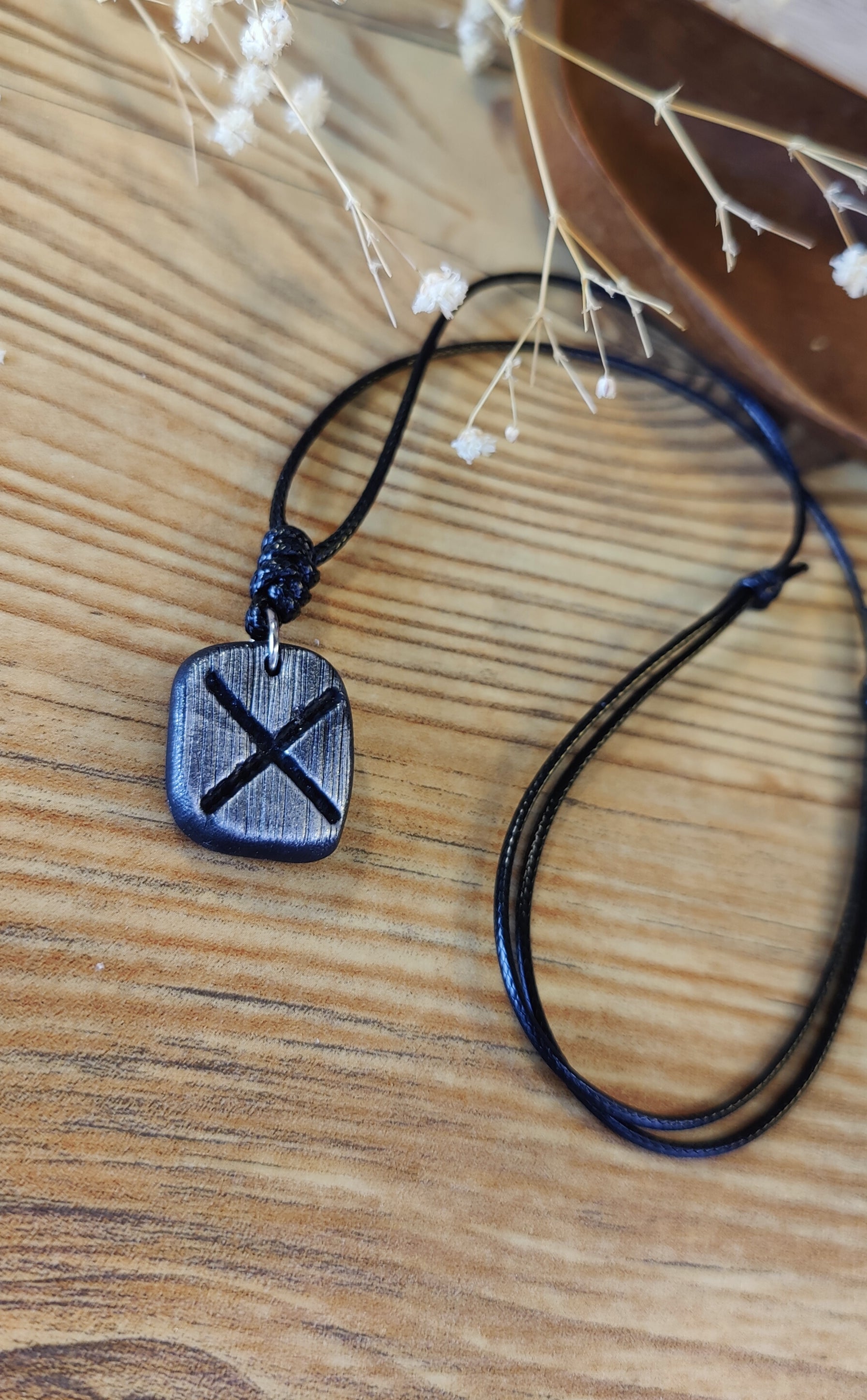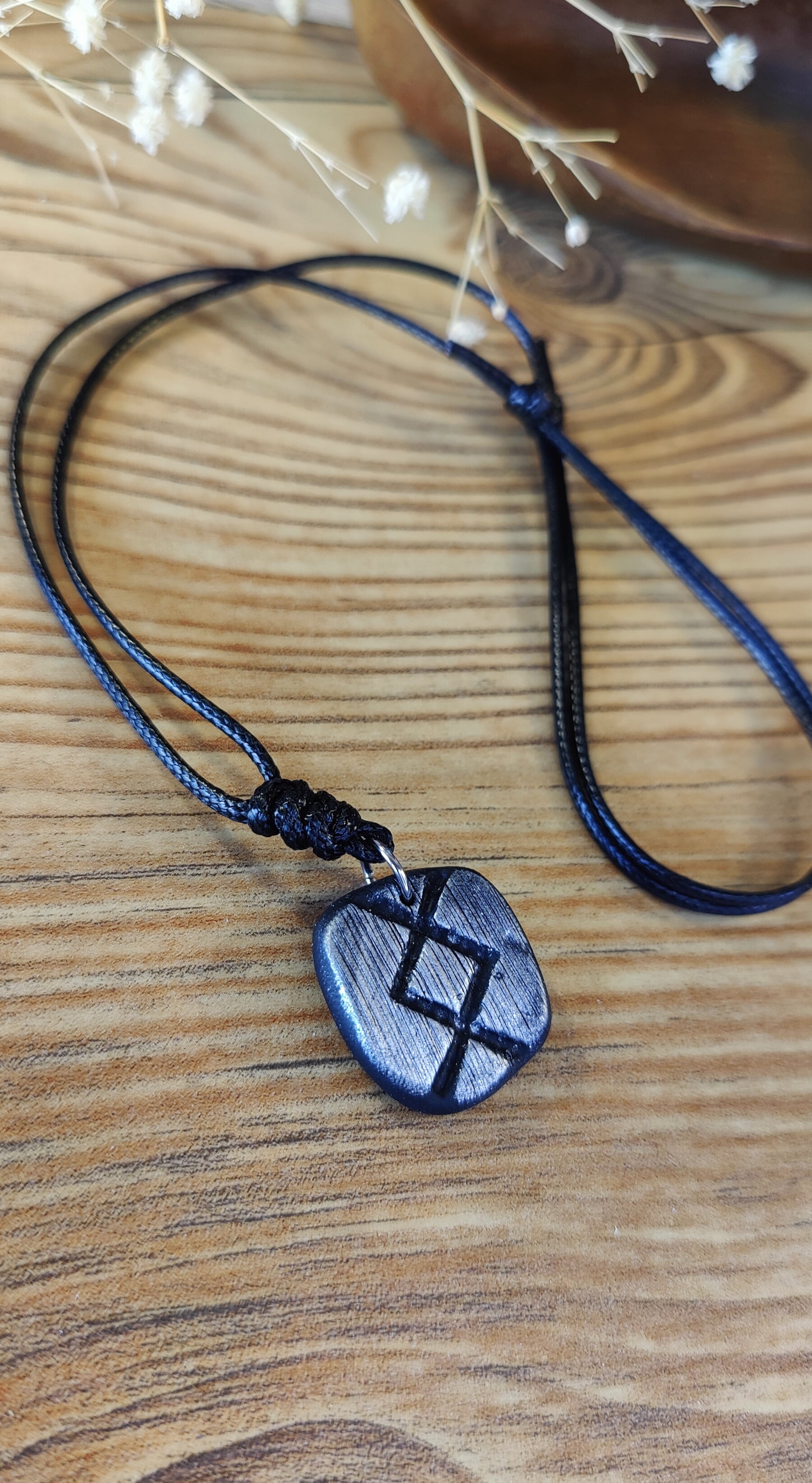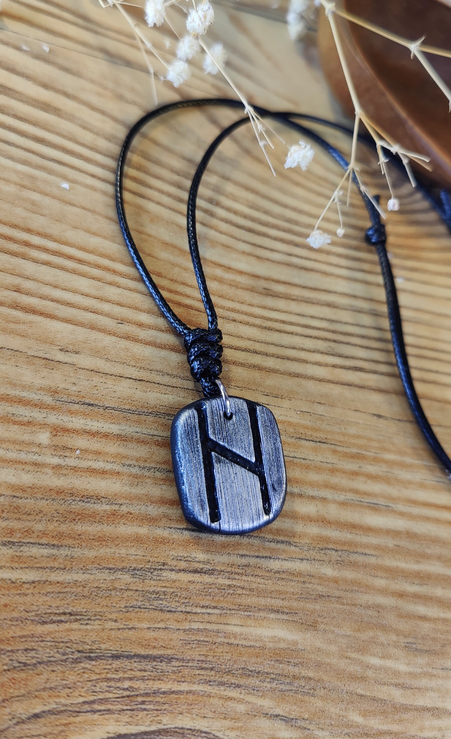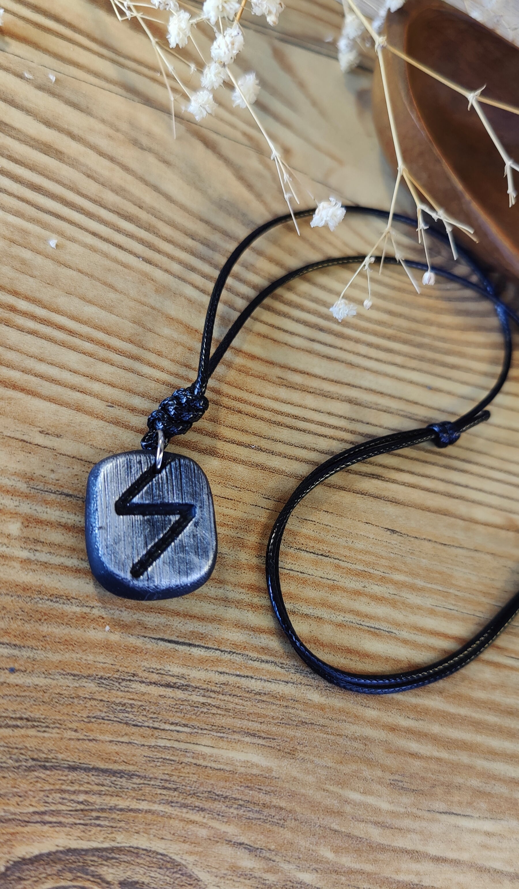 Diese einzigartige Runen-Kette verbindet traditionelle Symbolkraft mit moderner Handwerkskunst. Jeder Anhänger wird in liebevoller Handarbeit aus hochwertigem Polymer-Ton modelliert und ist in Schwarz, Silber oder Gold erhältlich. Durch sorgfältiges Formen und Gestalten erhält jedes Stück seine individuelle, leicht organische Struktur – ein echtes Unikat.