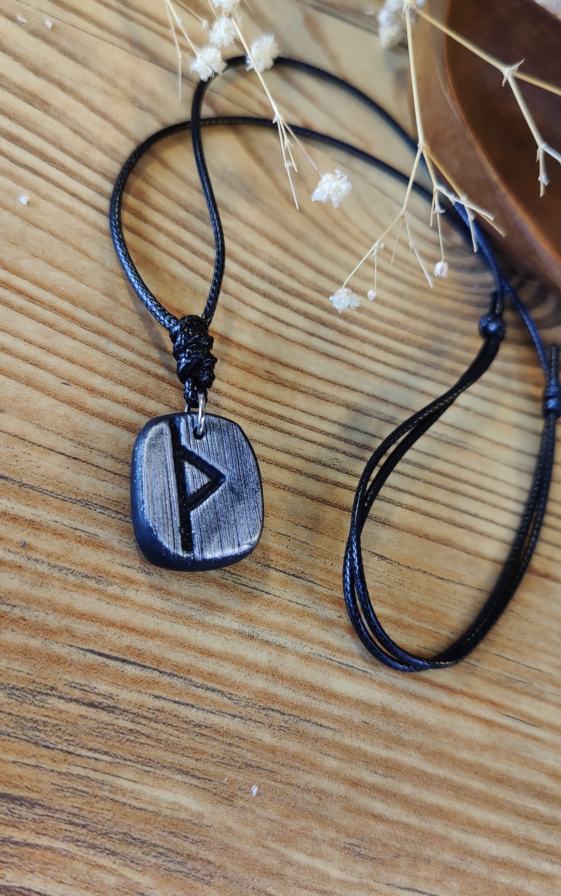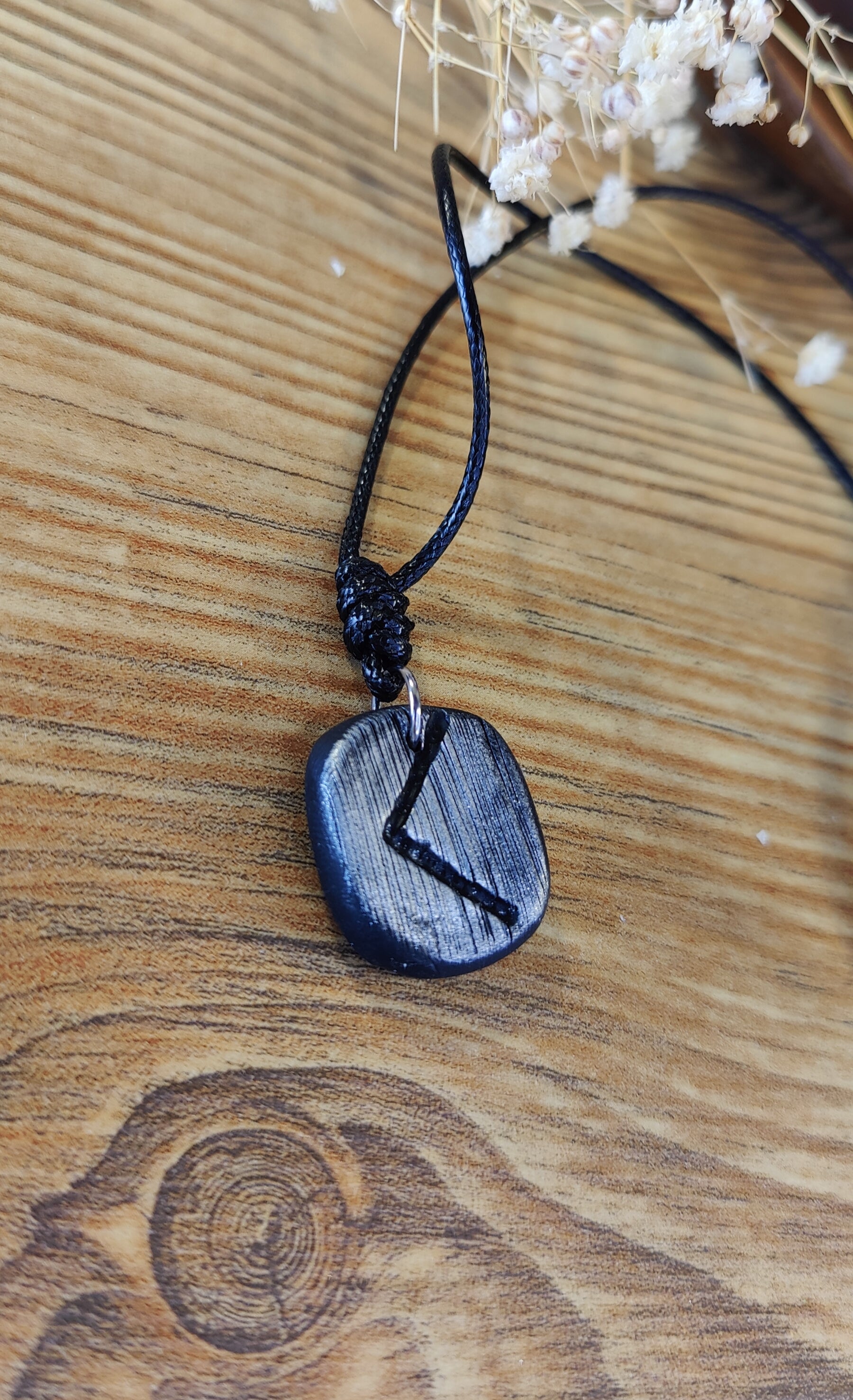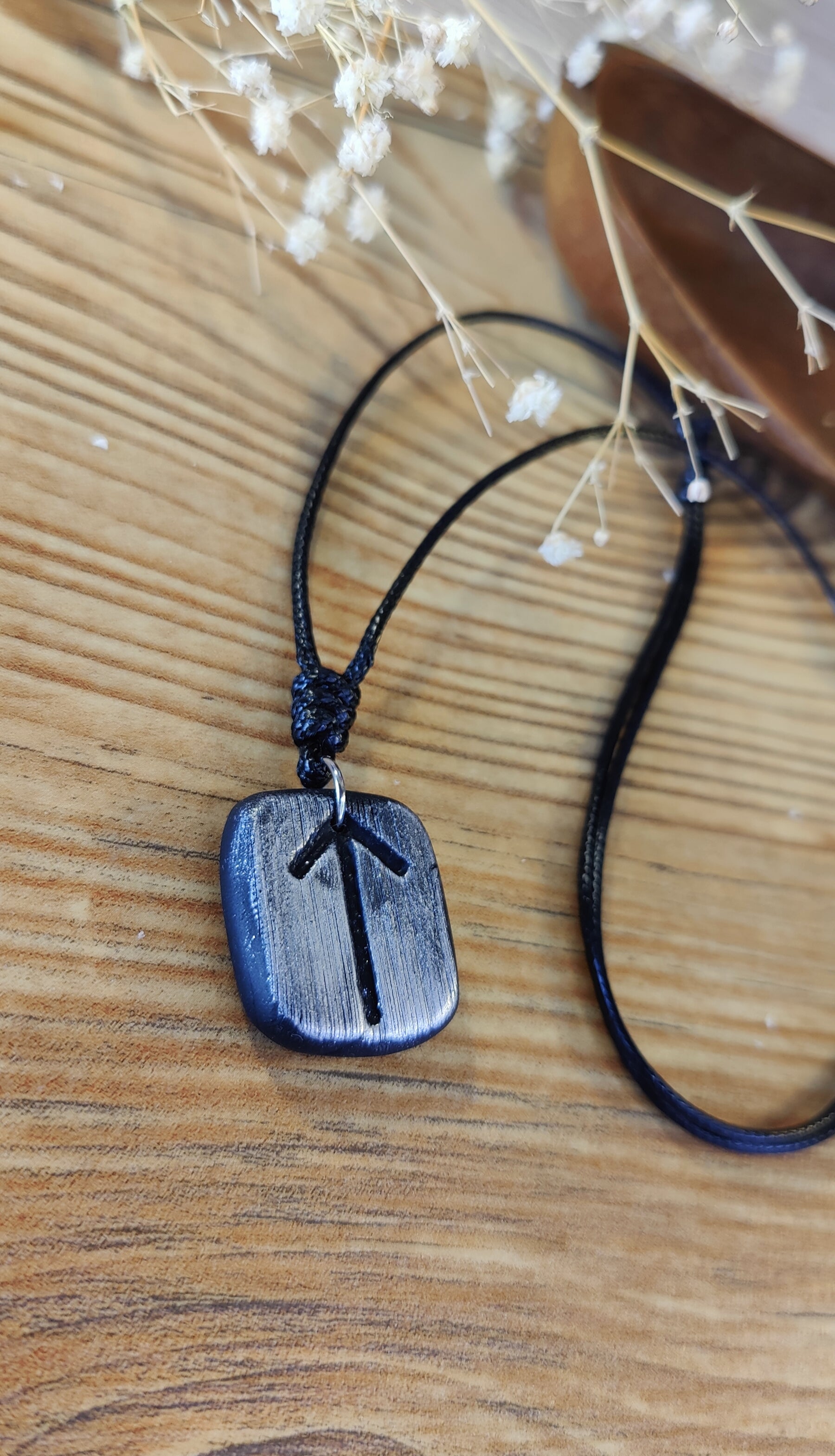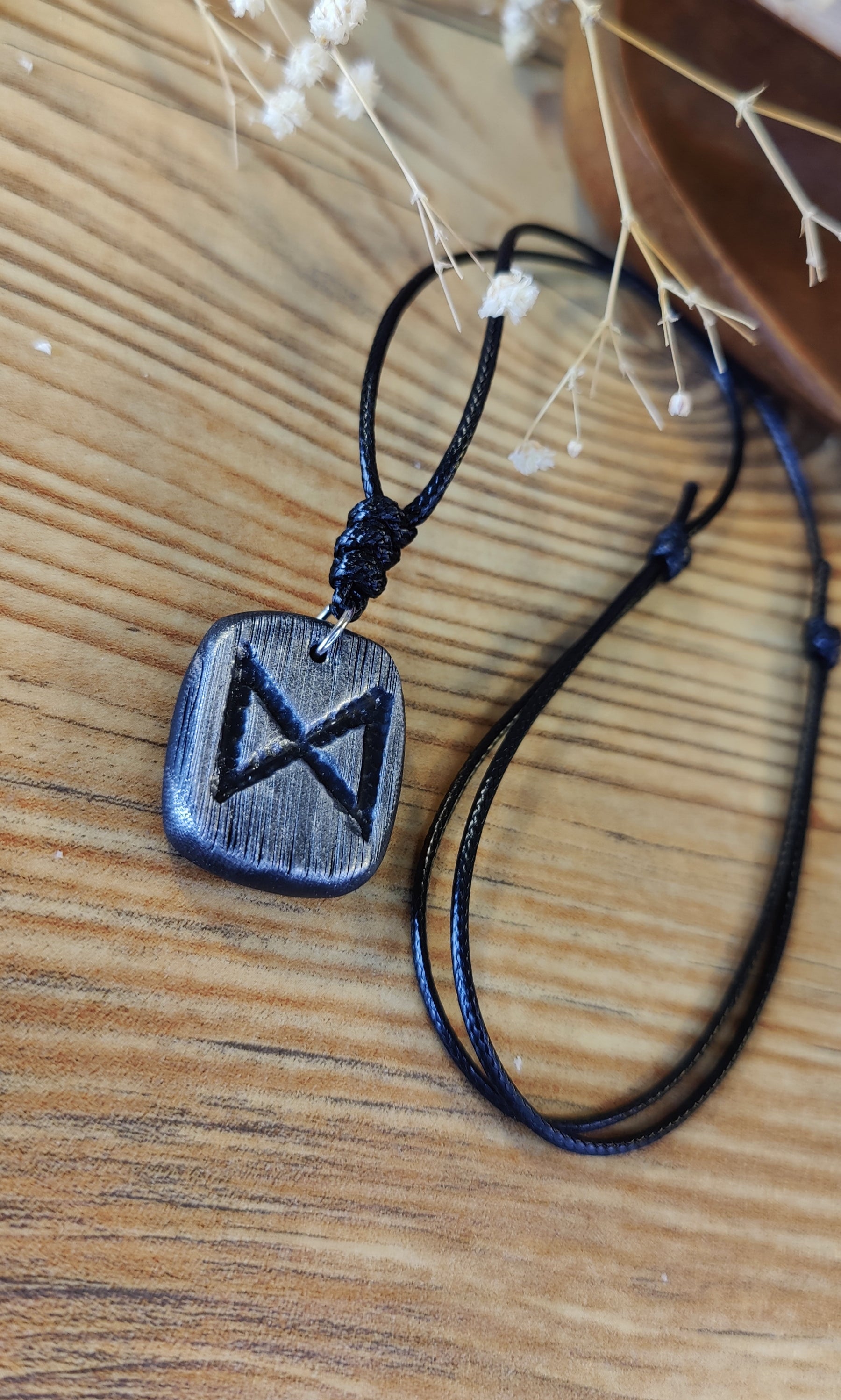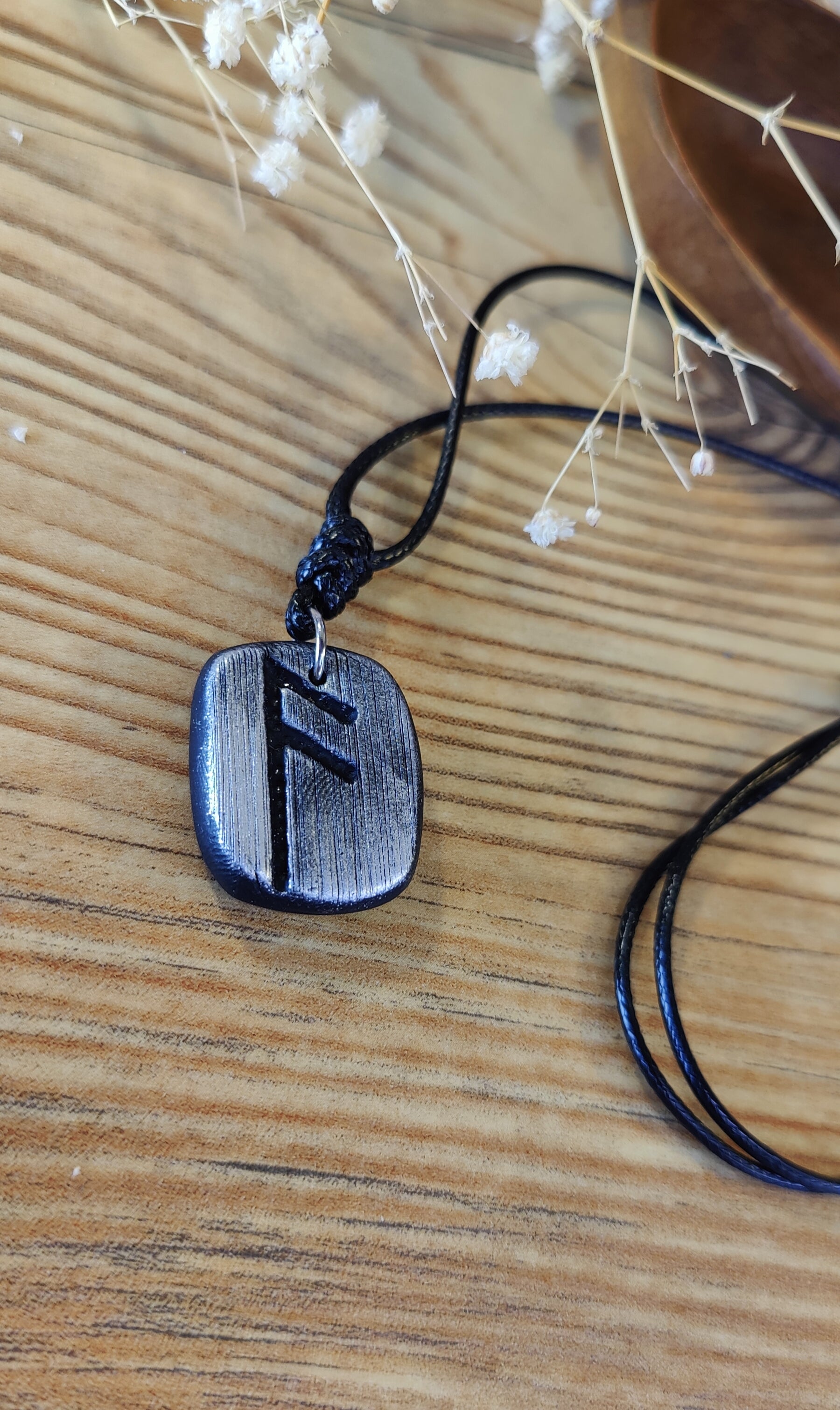 Diese einzigartige Runen-Kette verbindet traditionelle Symbolkraft mit moderner Handwerkskunst. Jeder Anhänger wird in liebevoller Handarbeit aus hochwertigem Polymer-Ton modelliert und ist in Schwarz, Silber oder Gold erhältlich. Durch sorgfältiges Formen und Gestalten erhält jedes Stück seine individuelle, leicht organische Struktur – ein echtes Unikat.