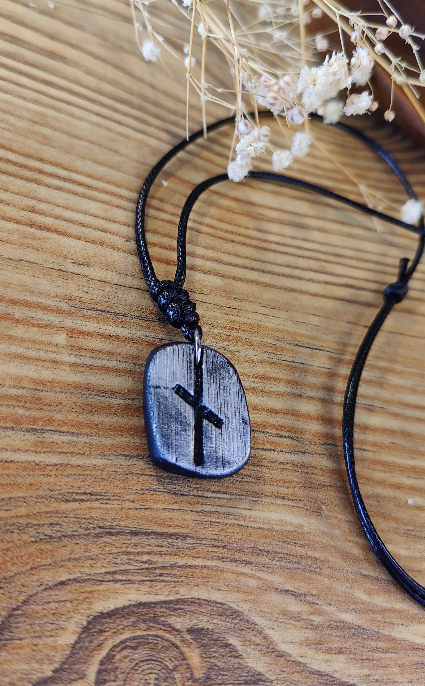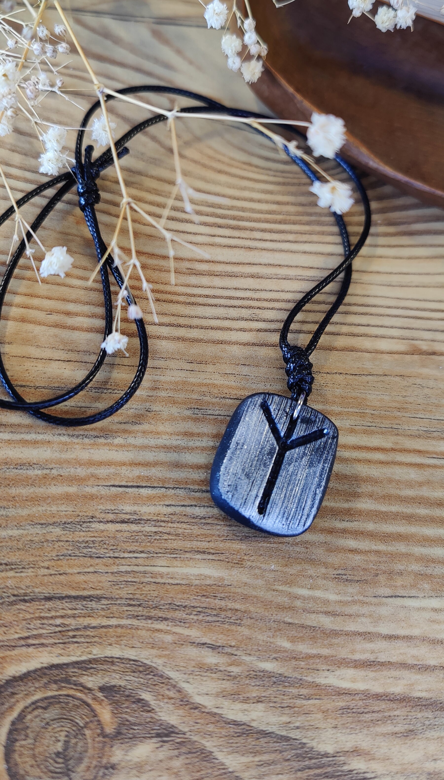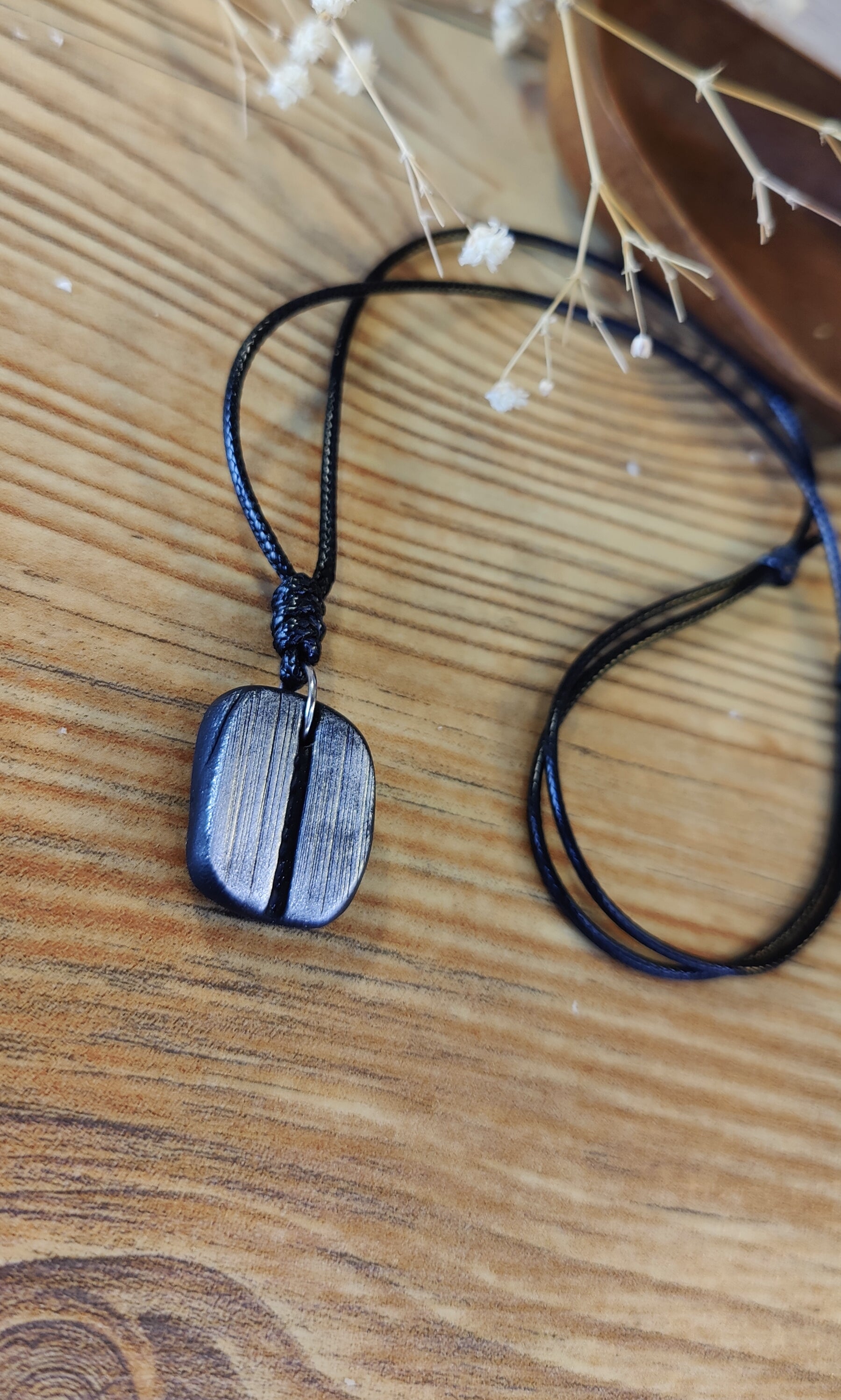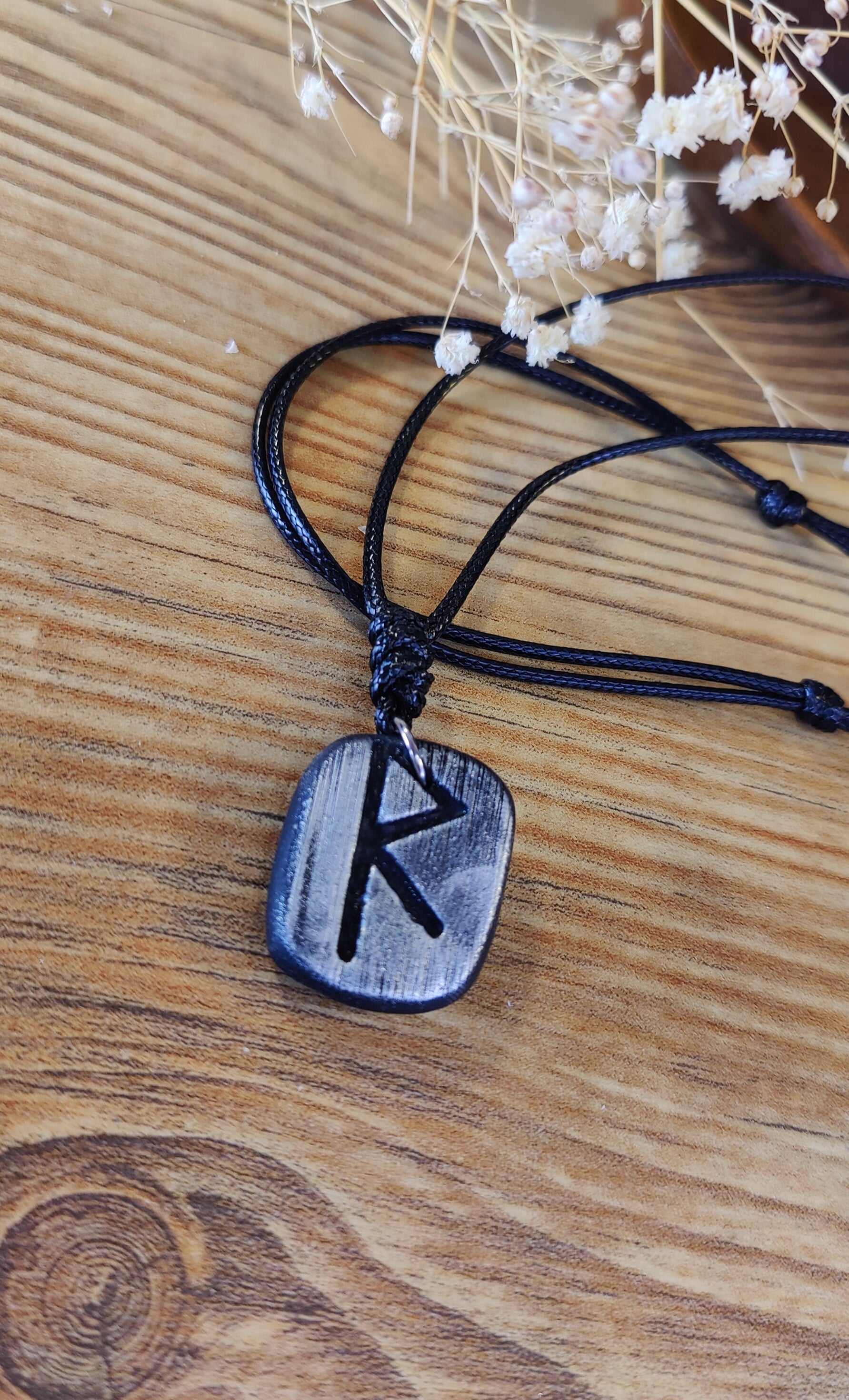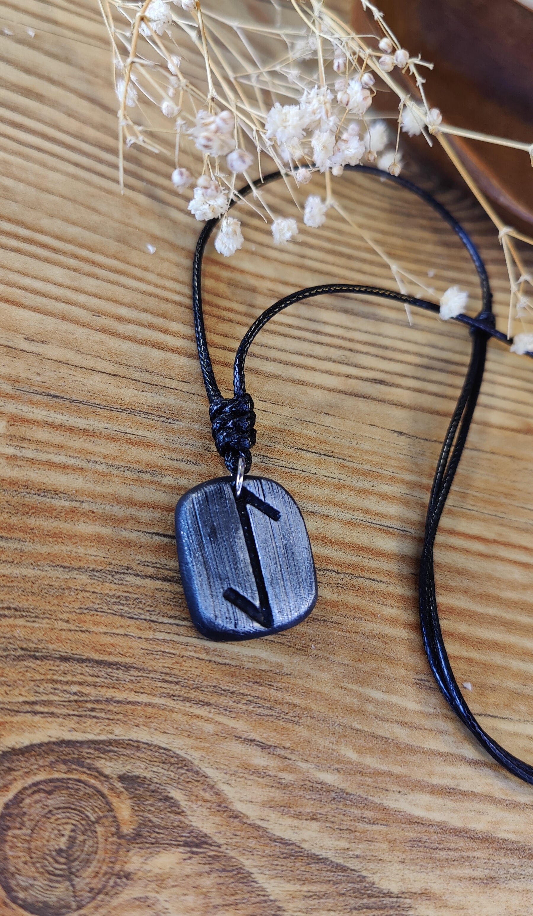 Diese einzigartige Runen-Kette verbindet traditionelle Symbolkraft mit moderner Handwerkskunst. Jeder Anhänger wird in liebevoller Handarbeit aus hochwertigem Polymer-Ton modelliert und ist in Schwarz, Silber oder Gold erhältlich. Durch sorgfältiges Formen und Gestalten erhält jedes Stück seine individuelle, leicht organische Struktur – ein echtes Unikat.