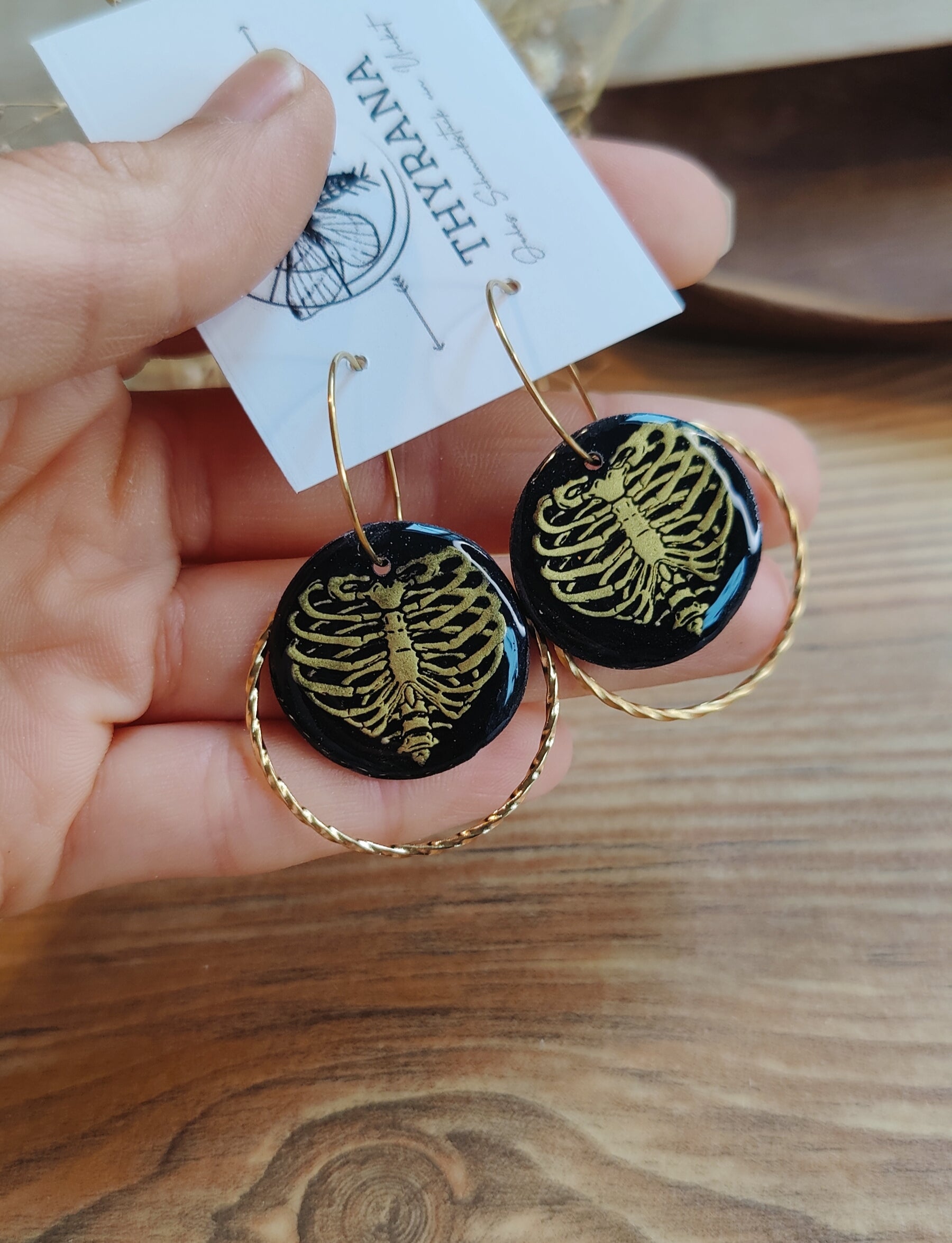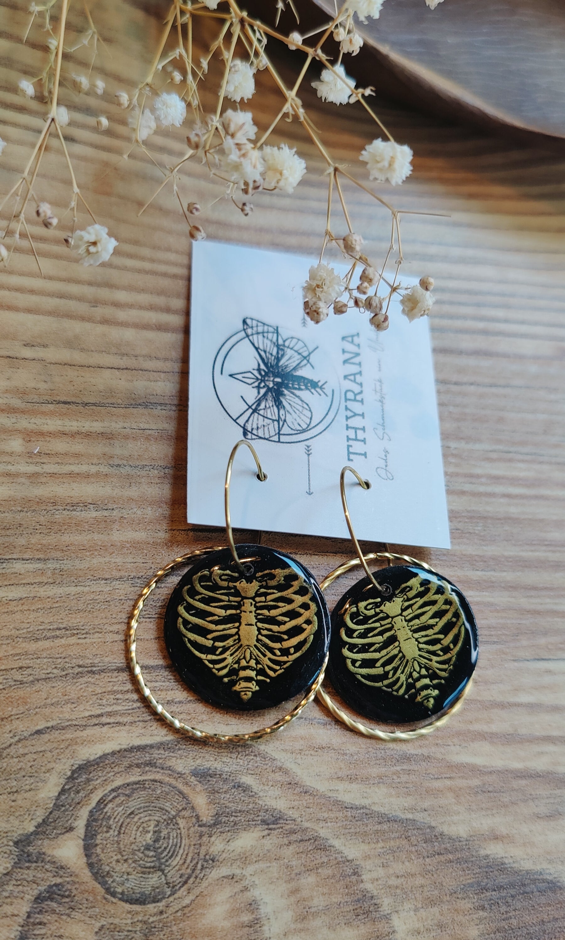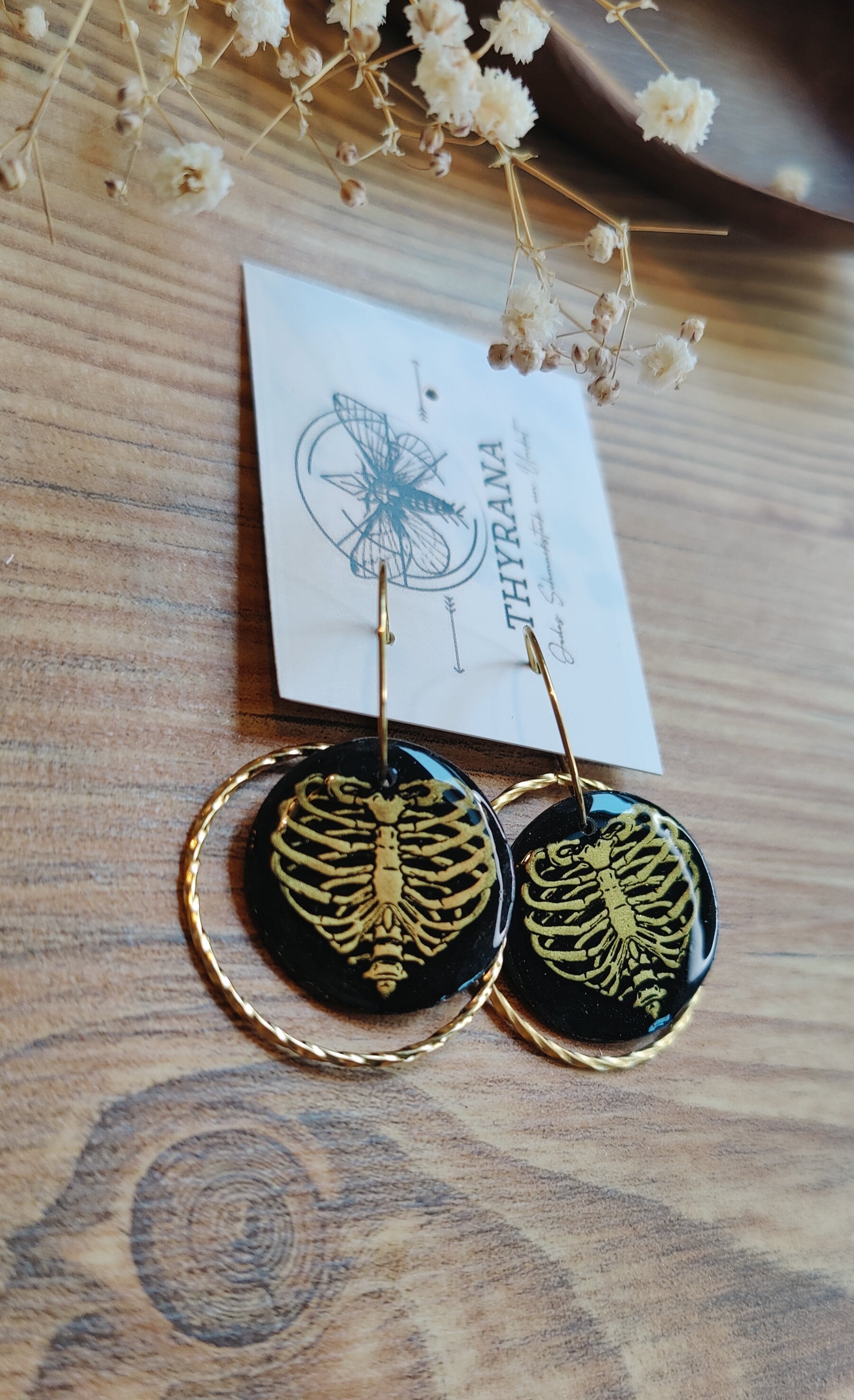 Setze ein stylisches Statement zu Halloween: Diese liebevoll handgefertigten Creolen kombinieren hochwertigen Edelstahl mit detailreichem Polymer-Ton. Das besondere Highlight ist das Herz-Rippen-Motiv, das gekonnt den Mix aus romantischem Herz und gruseligem Skelett-Look einfängt – perfekt für alle, die es verspielt-düster mögen.