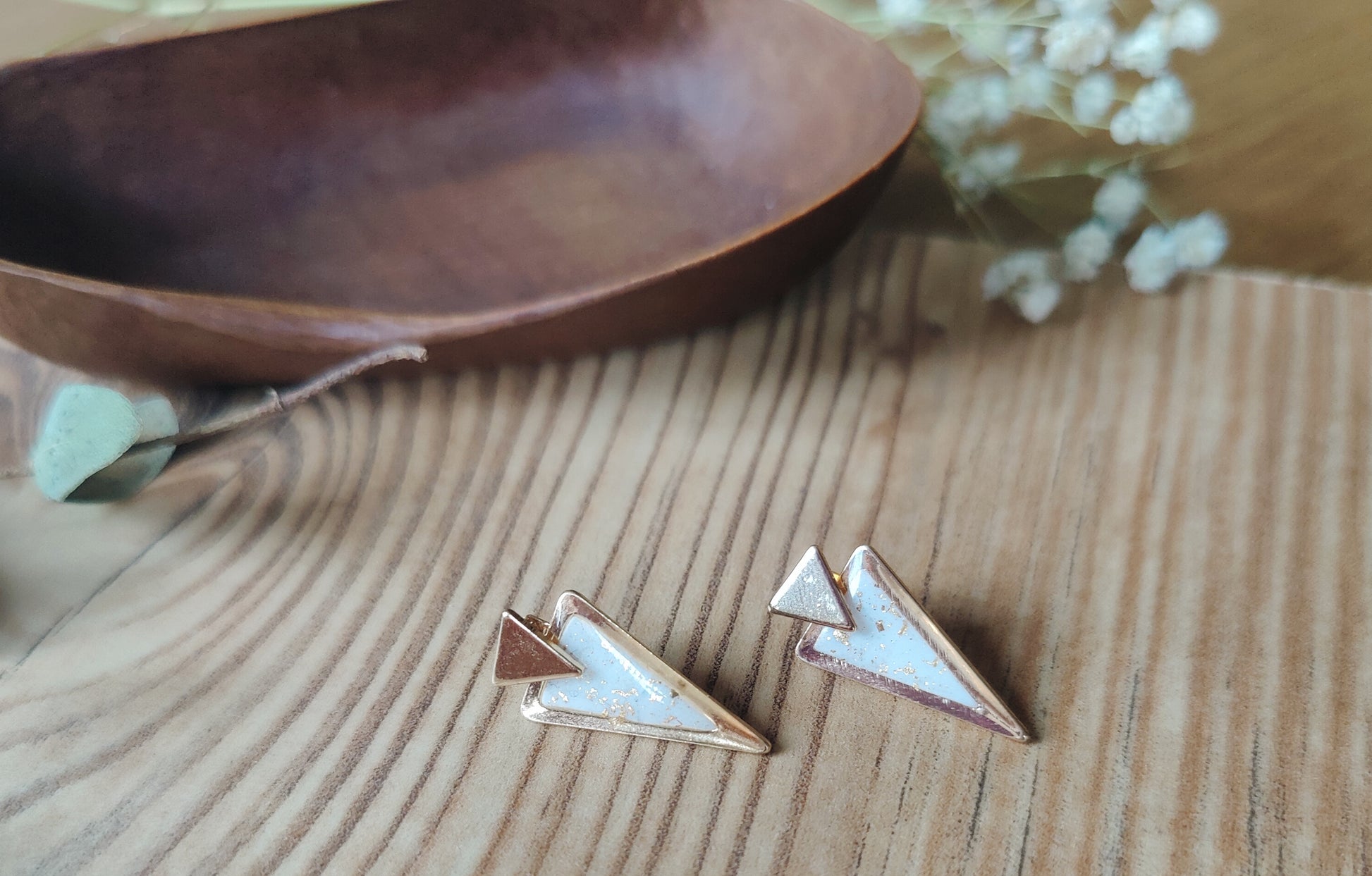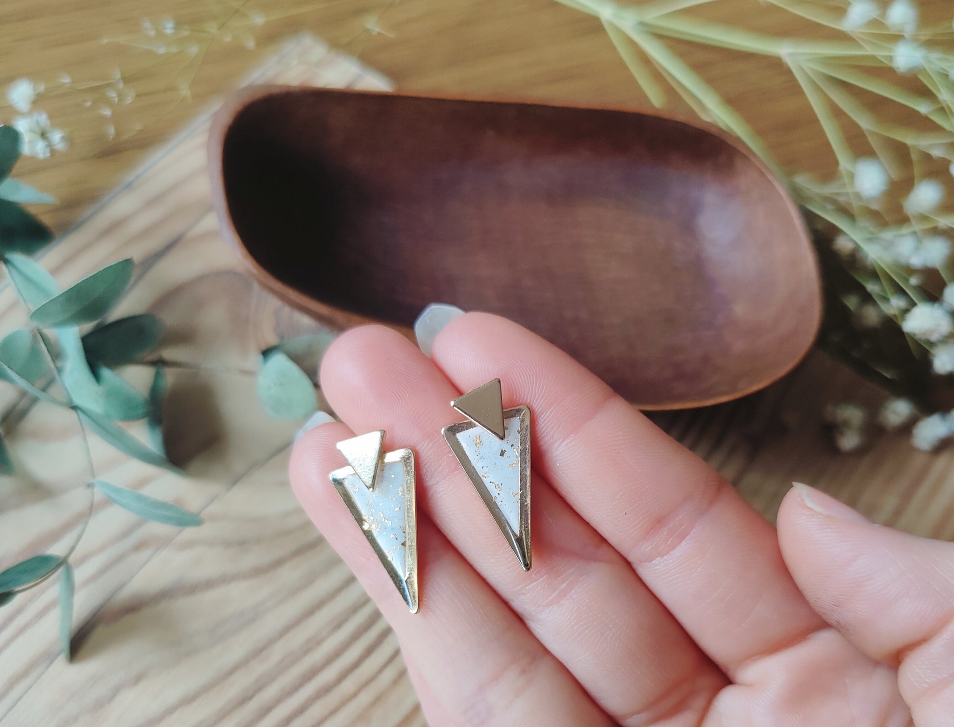 Unsere geometrischen Ohrstecker aus Polymer Clay überzeugen mit ihrem einzigartigen, modernen Look. Die stilvollen Formen und die Kombination aus edlen Gold- oder Silberdetails machen sie zu einem absoluten Hingucker.