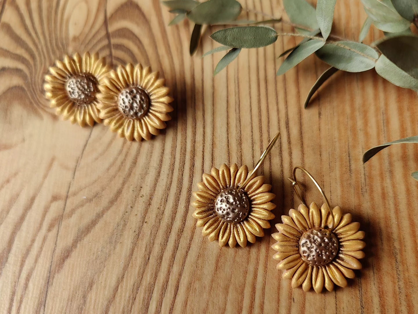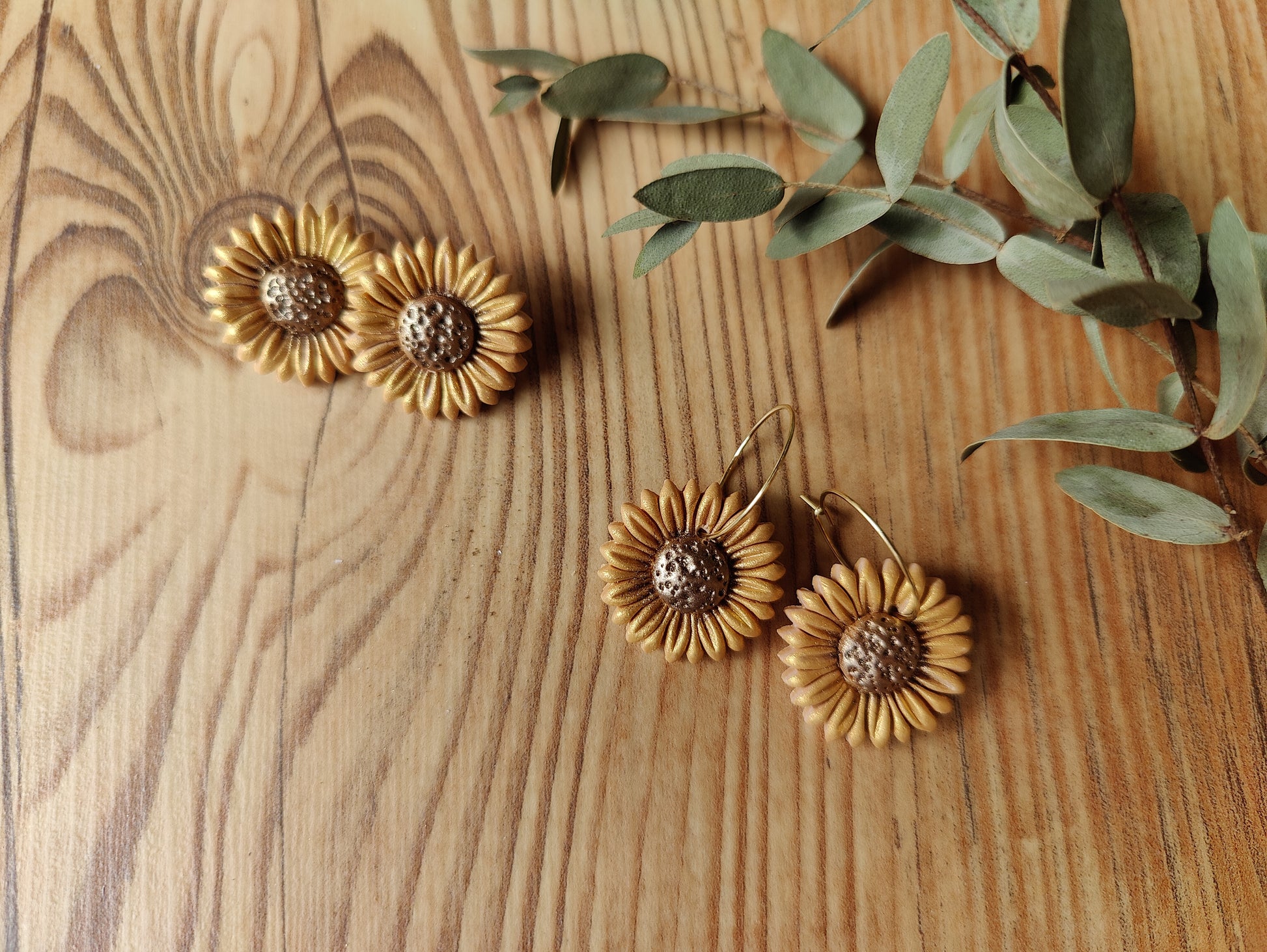 Handgefertigte Sonnenblumen-Ohrringe aus Polymer Clay