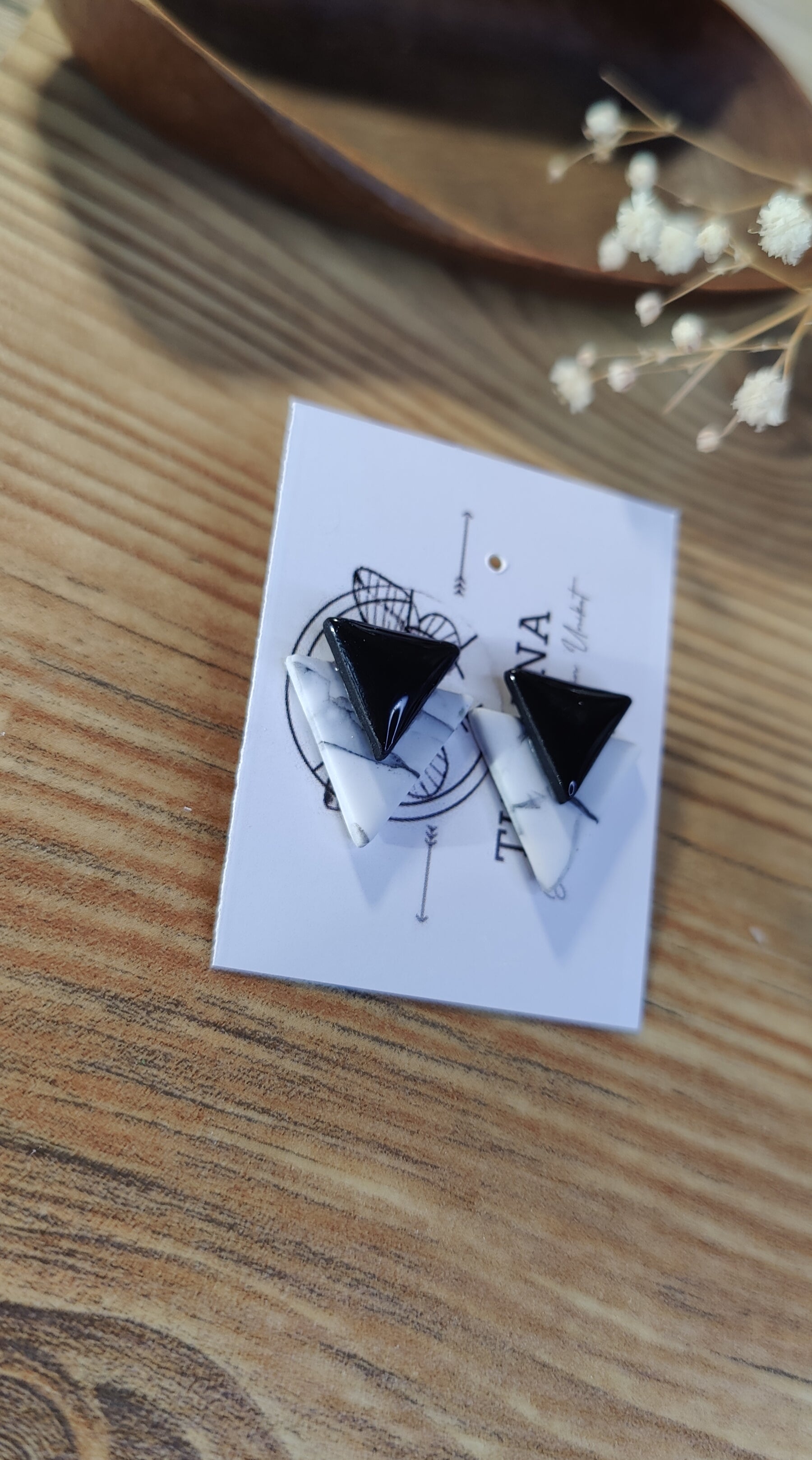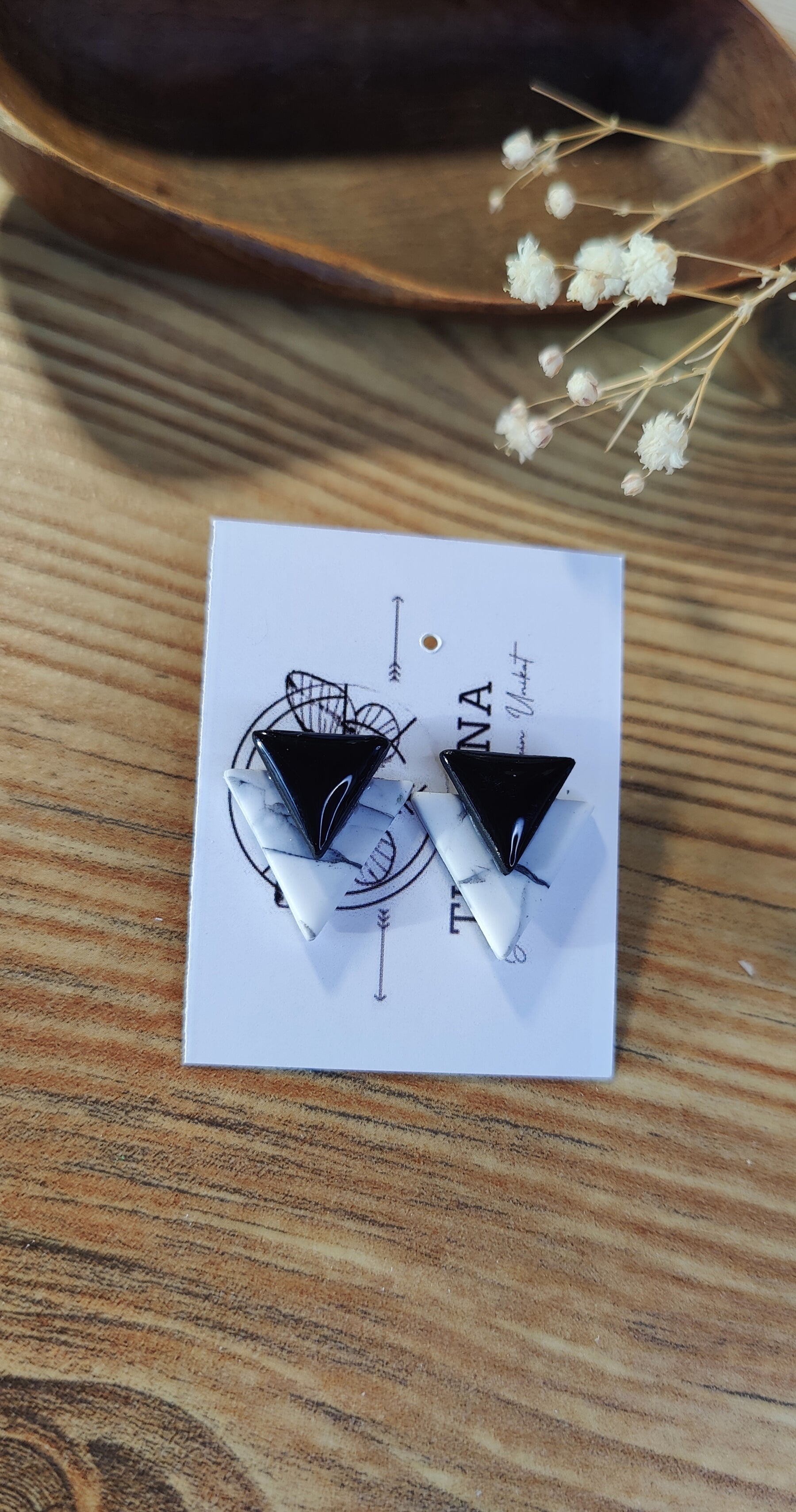 Aus hochwertigem Polymer-Ton in Dreiecksform gefertigt, entstehen elegante Schmuckstücke, die sich vielseitig kombinieren lassen. Die Edelstahl-Stecker sorgen für sicheren Halt und hohen Tragekomfort.