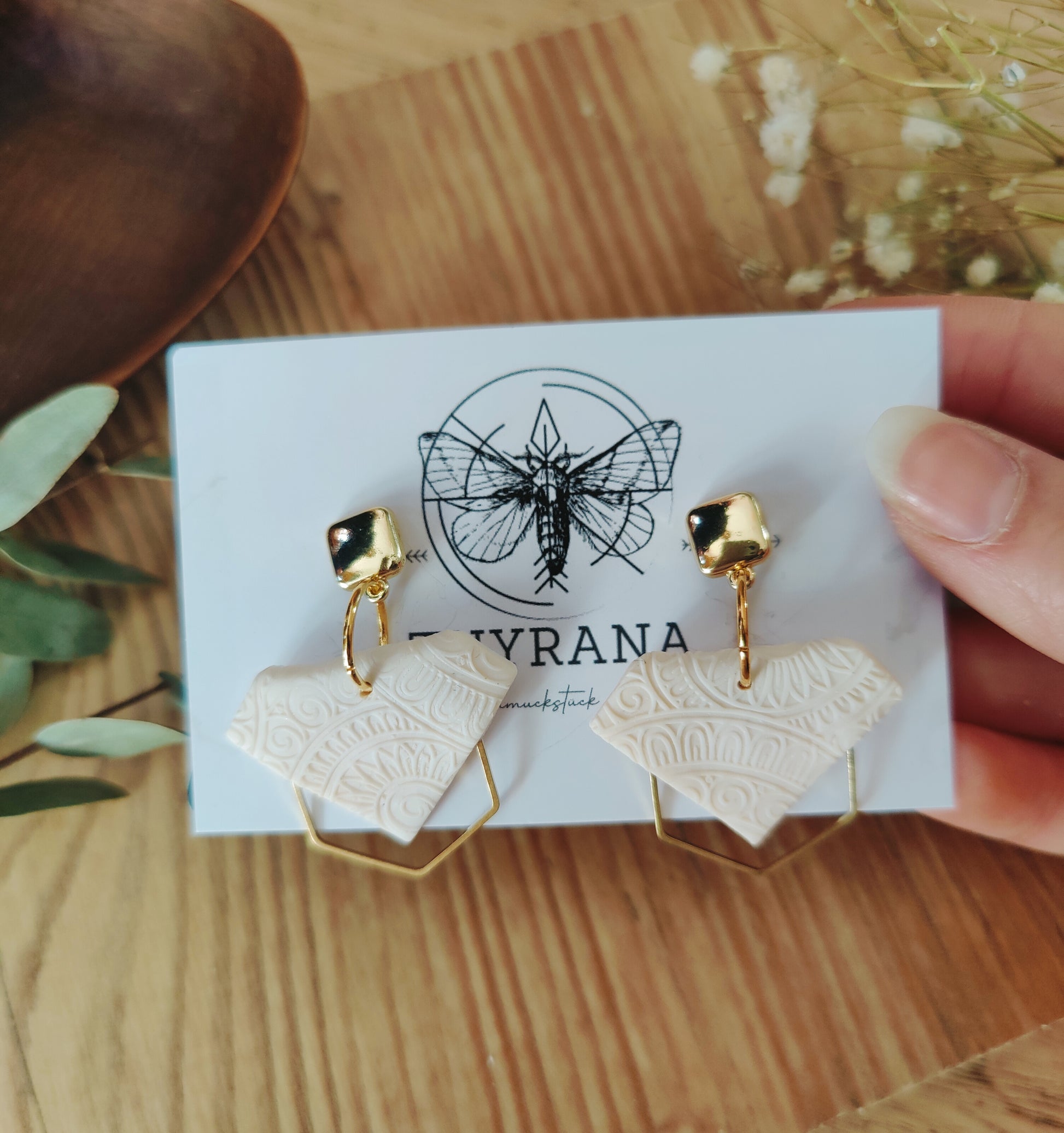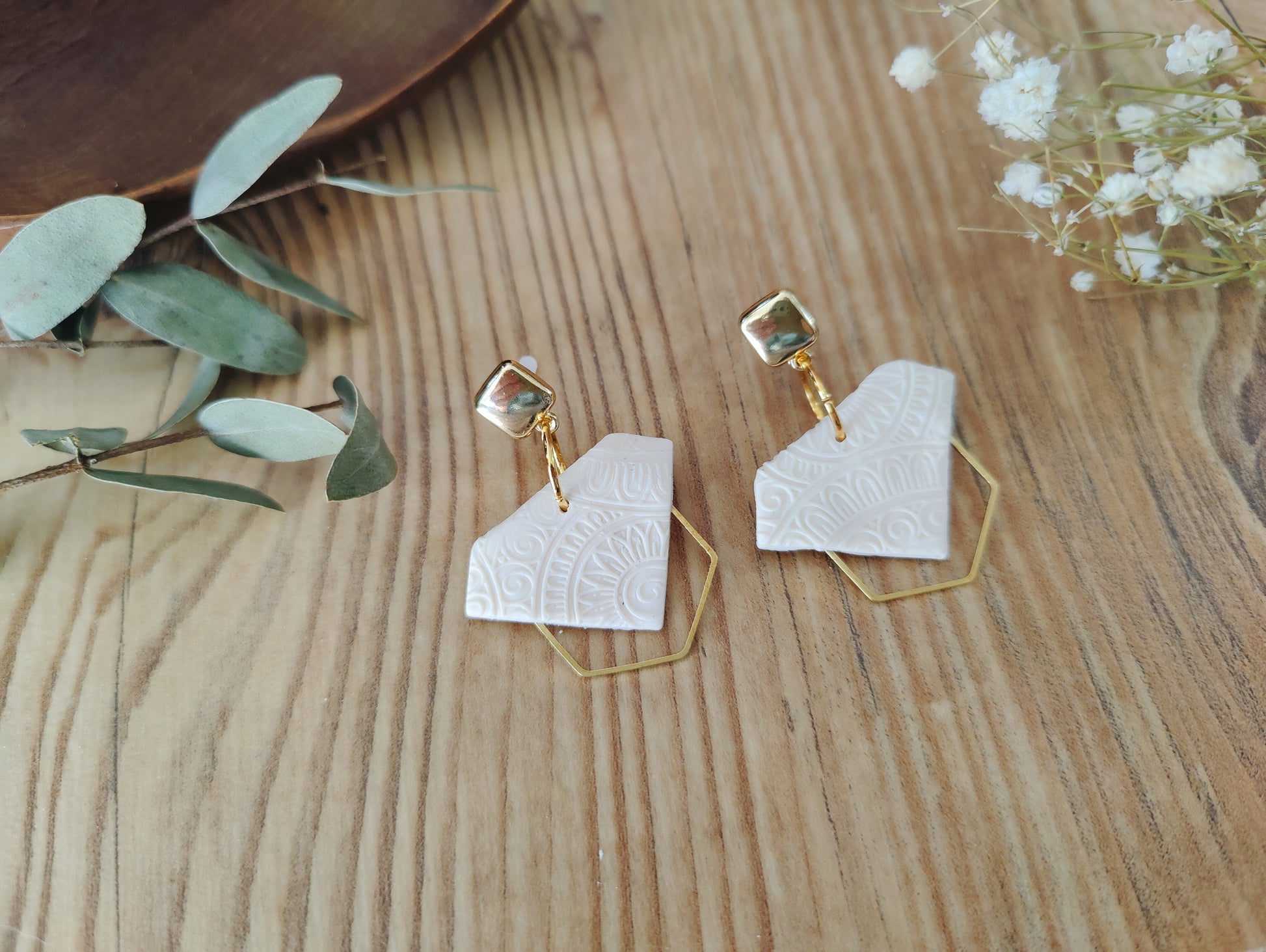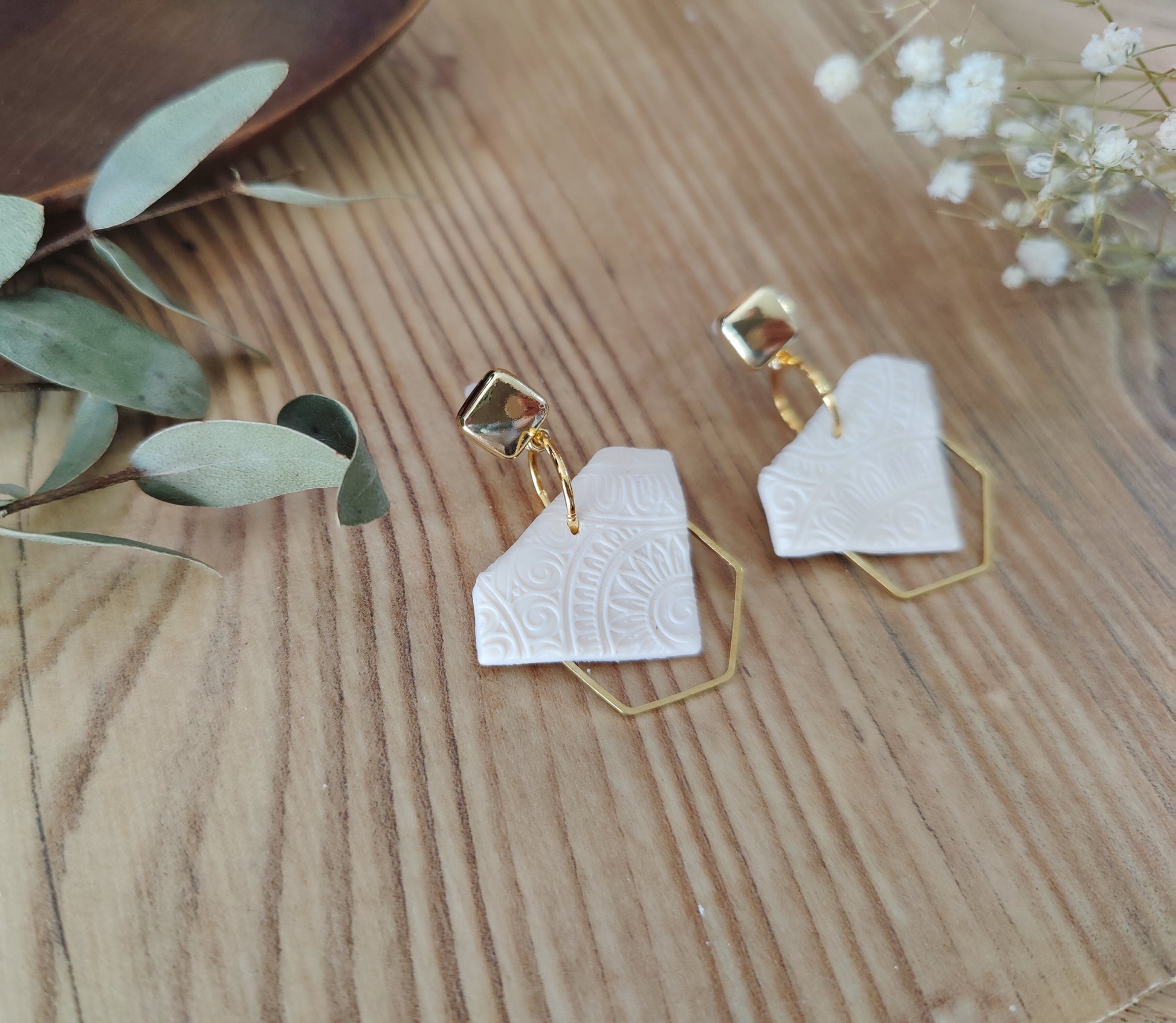 Diese stilvollen Ohrstecker vereinen schlichte Eleganz mit kunstvoller Textur. Der cremig-weiße Polymer-Ton wird durch ein einzigartiges 3D-Muster veredelt, das für eine besondere Tiefe und Struktur sorgt. Dank ihres zeitlosen Designs lassen sich die Ohrringe vielseitig kombinieren – perfekt für den Alltag oder besondere Anlässe.