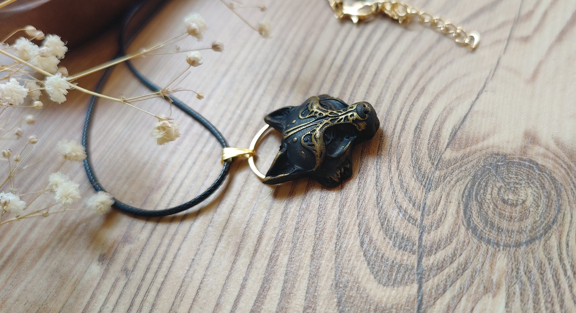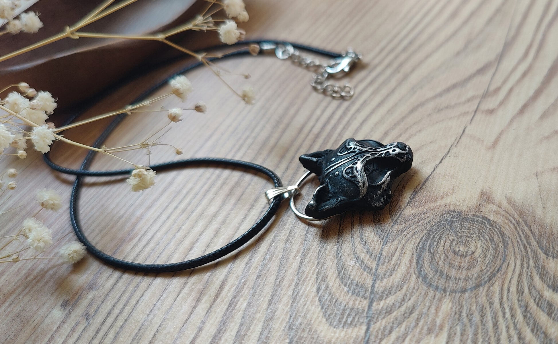 Diese einzigartige Kette vereint handwerkliche Präzision mit künstlerischem Ausdruck. Der Anhänger wird aus hochwertigem Polymer-Ton in liebevoller Handarbeit modelliert und detailreich in Form eines majestätischen Wolfes gestaltet. Anschließend wird er mit einer edlen Schicht aus silber- oder goldfarbener Farbe veredelt, die dem Design einen edlen Glanz verleiht.