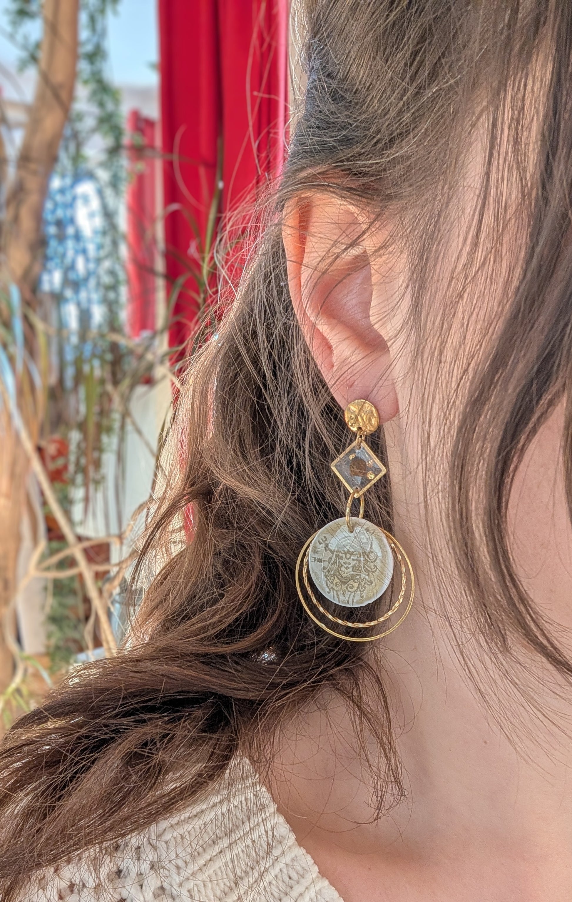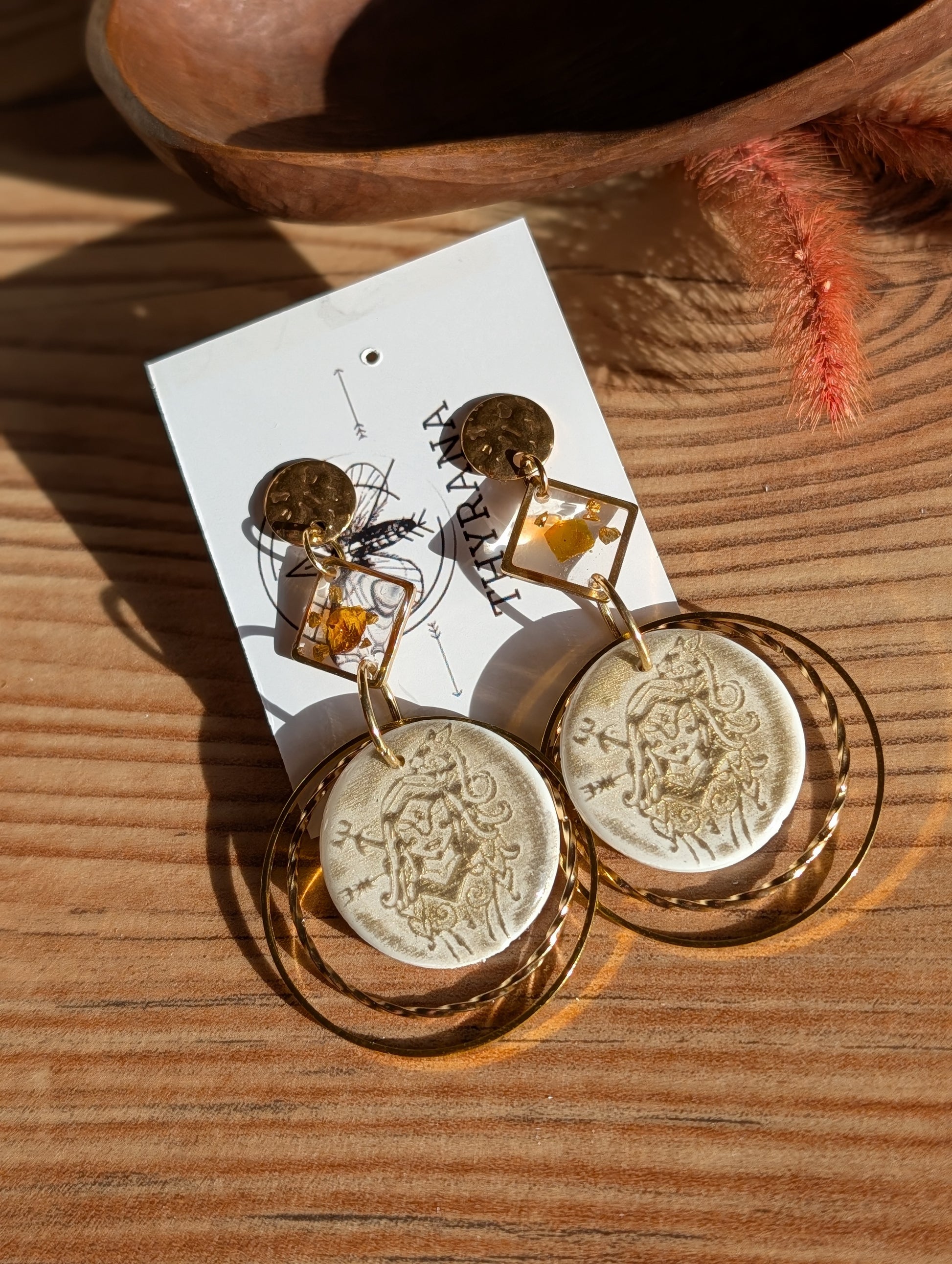 Diese besonderen Ohrringe tragen die Kraft der nordischen Göttin Freya in sich – Göttin der Liebe, der Magie und der Stärke. Das detailreiche Motiv wird sorgfältig von Hand auf Polymer Ton gearbeitet, wodurch jedes Paar zu einem kleinen Kunstwerk und echten Unikat wird.