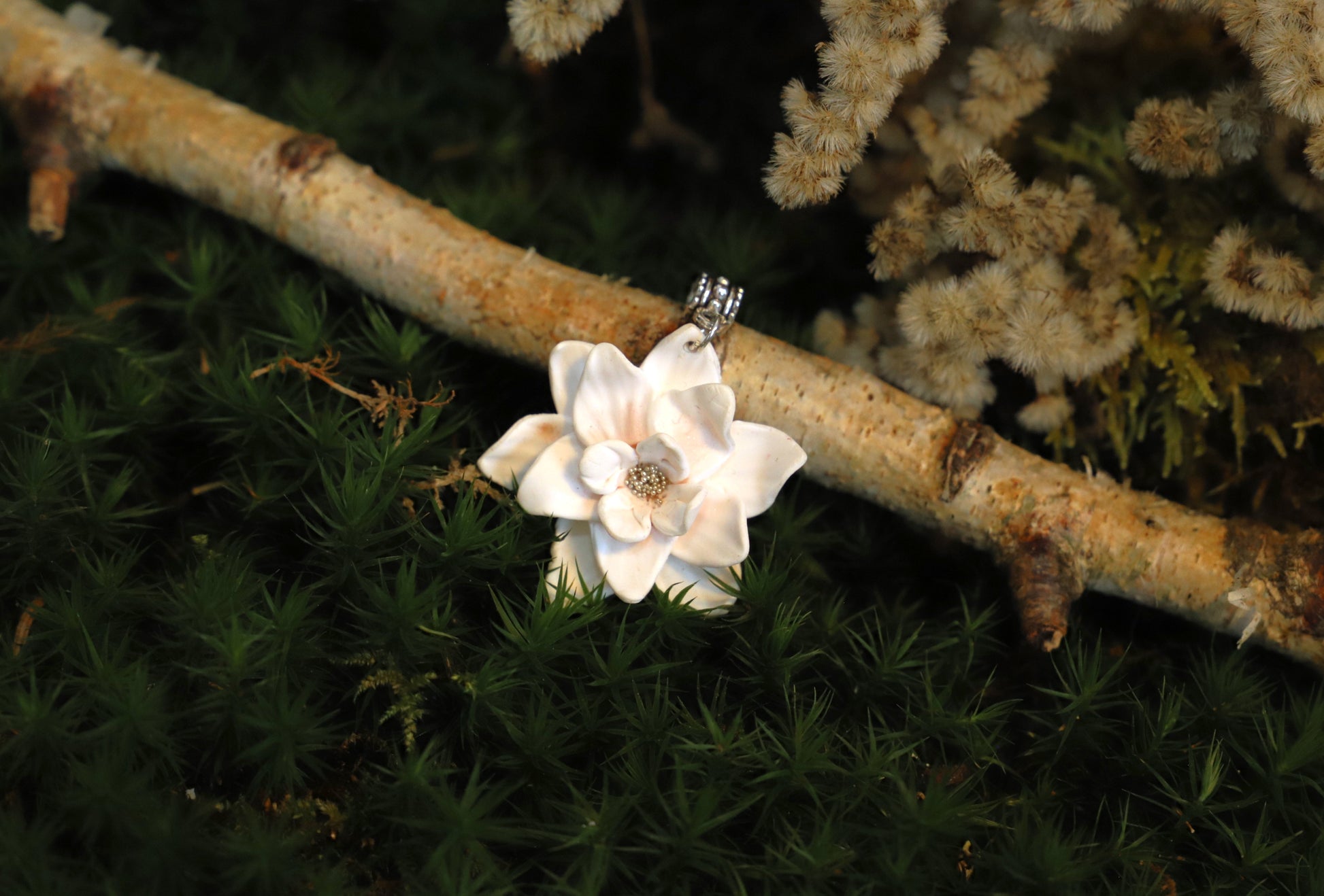 Genieße schlichte Eleganz mit diesem weißen Blumenanhänger. Handgefertigt für zeitlose Raffinesse, verleiht dieses Schmuckstück jedem Outfit eine subtile aber beeindruckende Note. 🌼💫